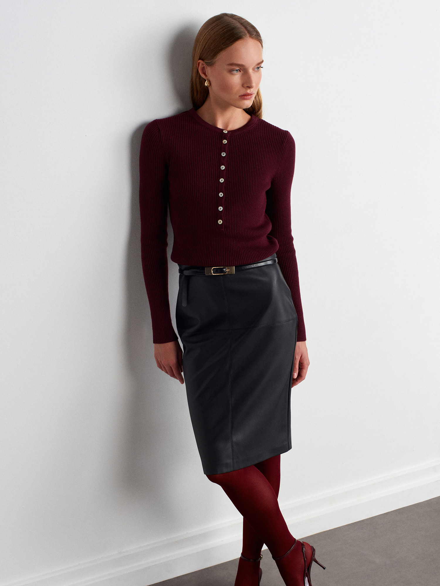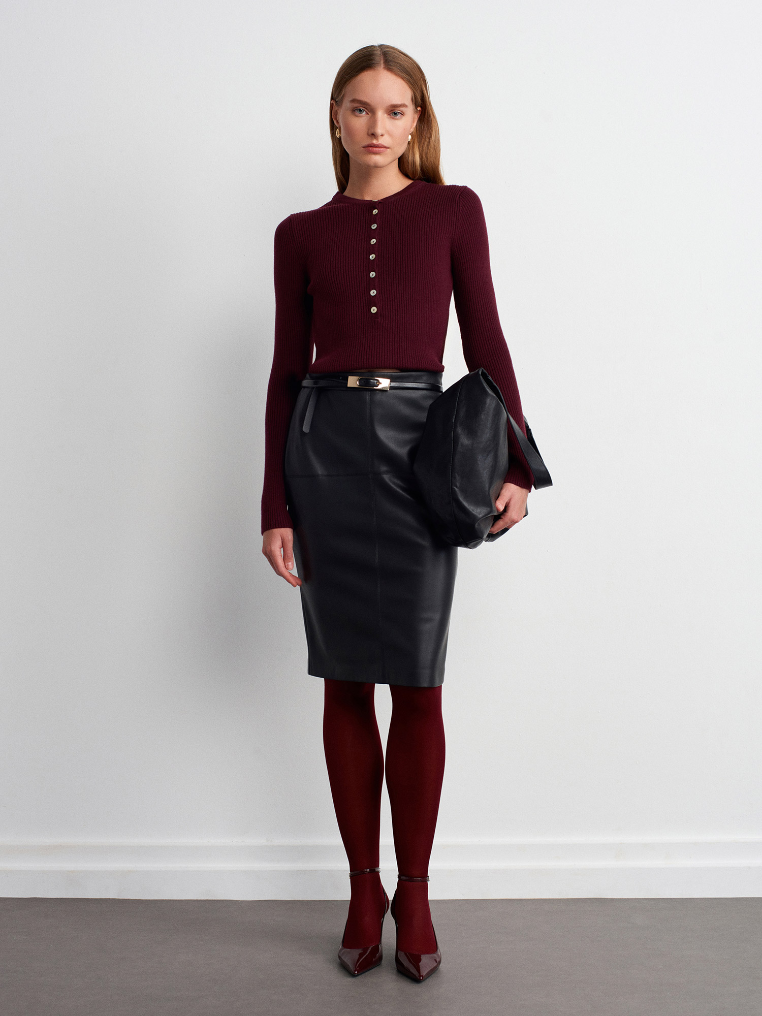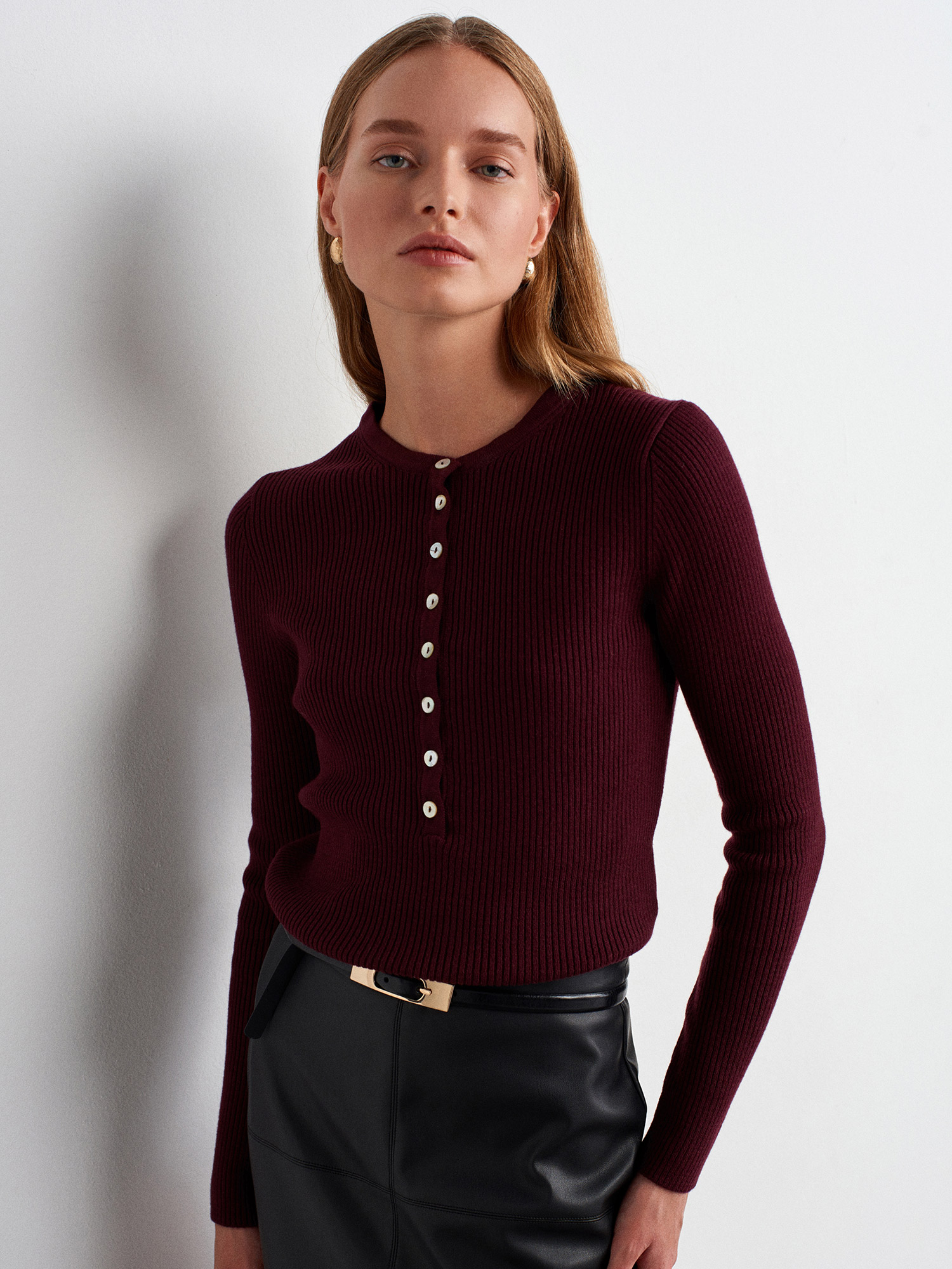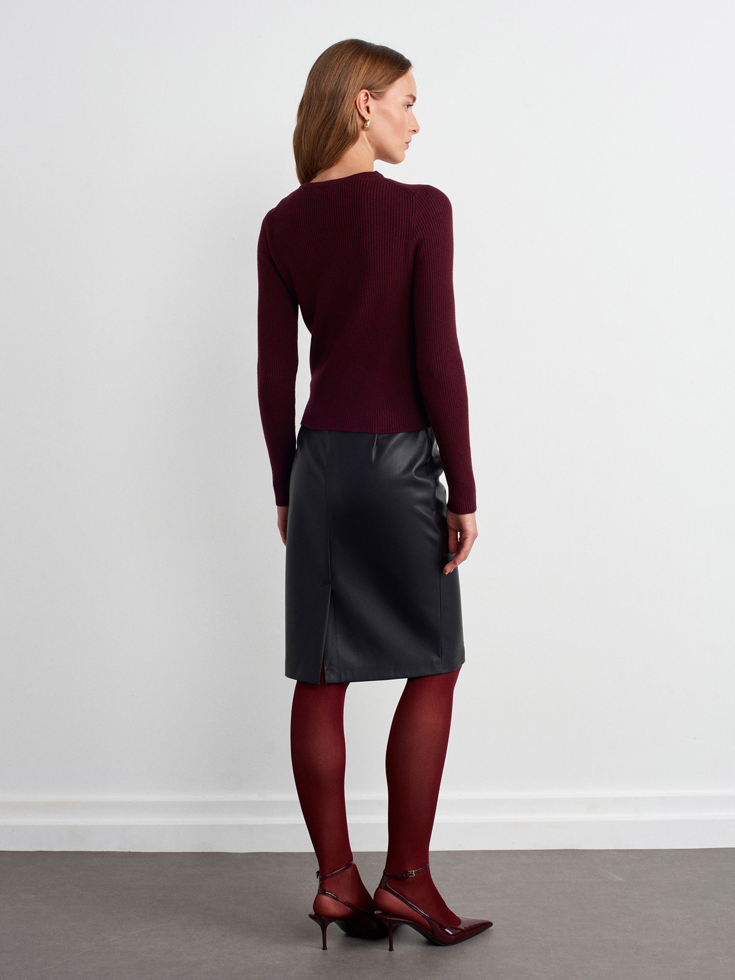 10819 Yün Karışımlı İnce Triko-Bordo M.