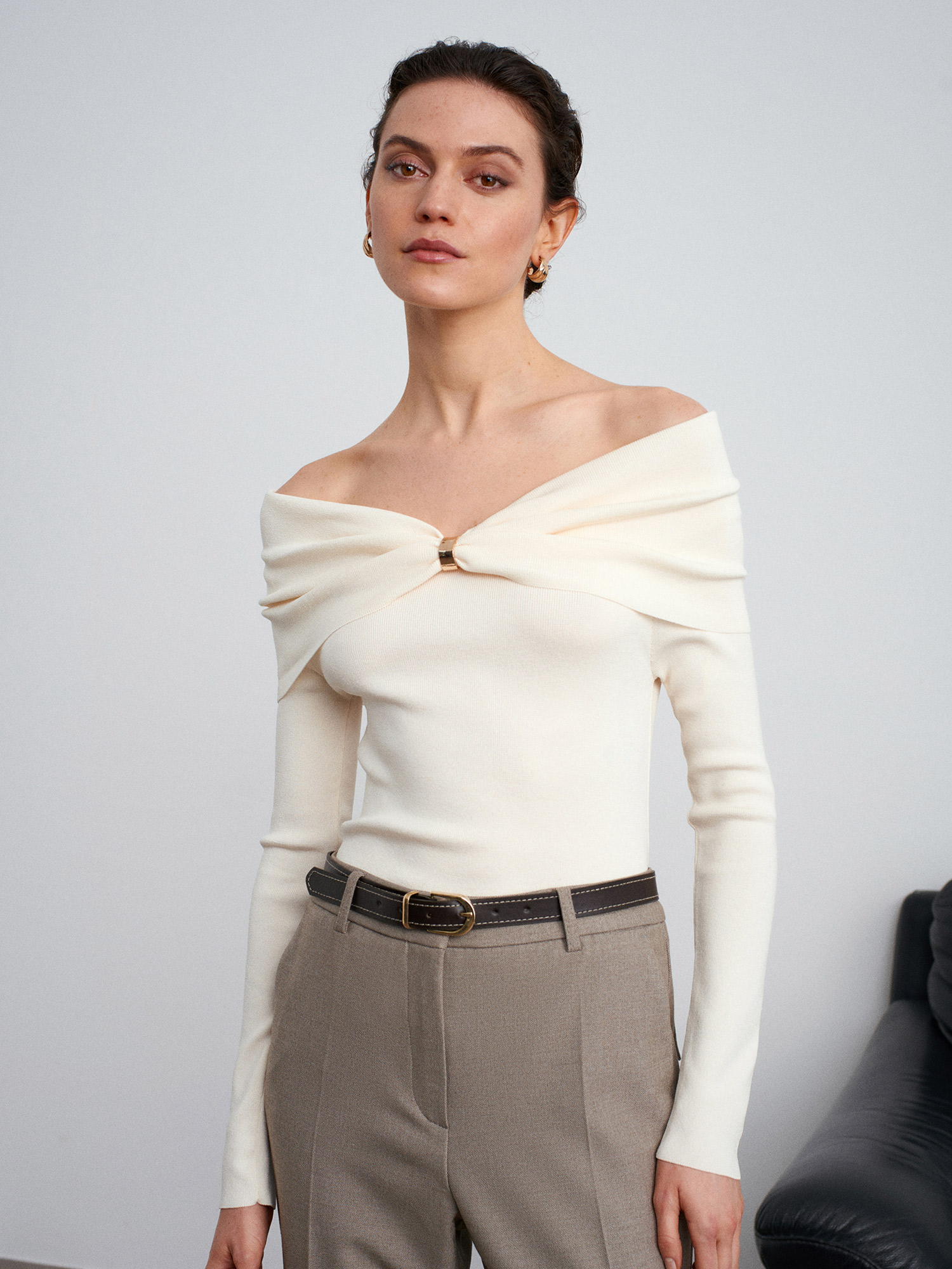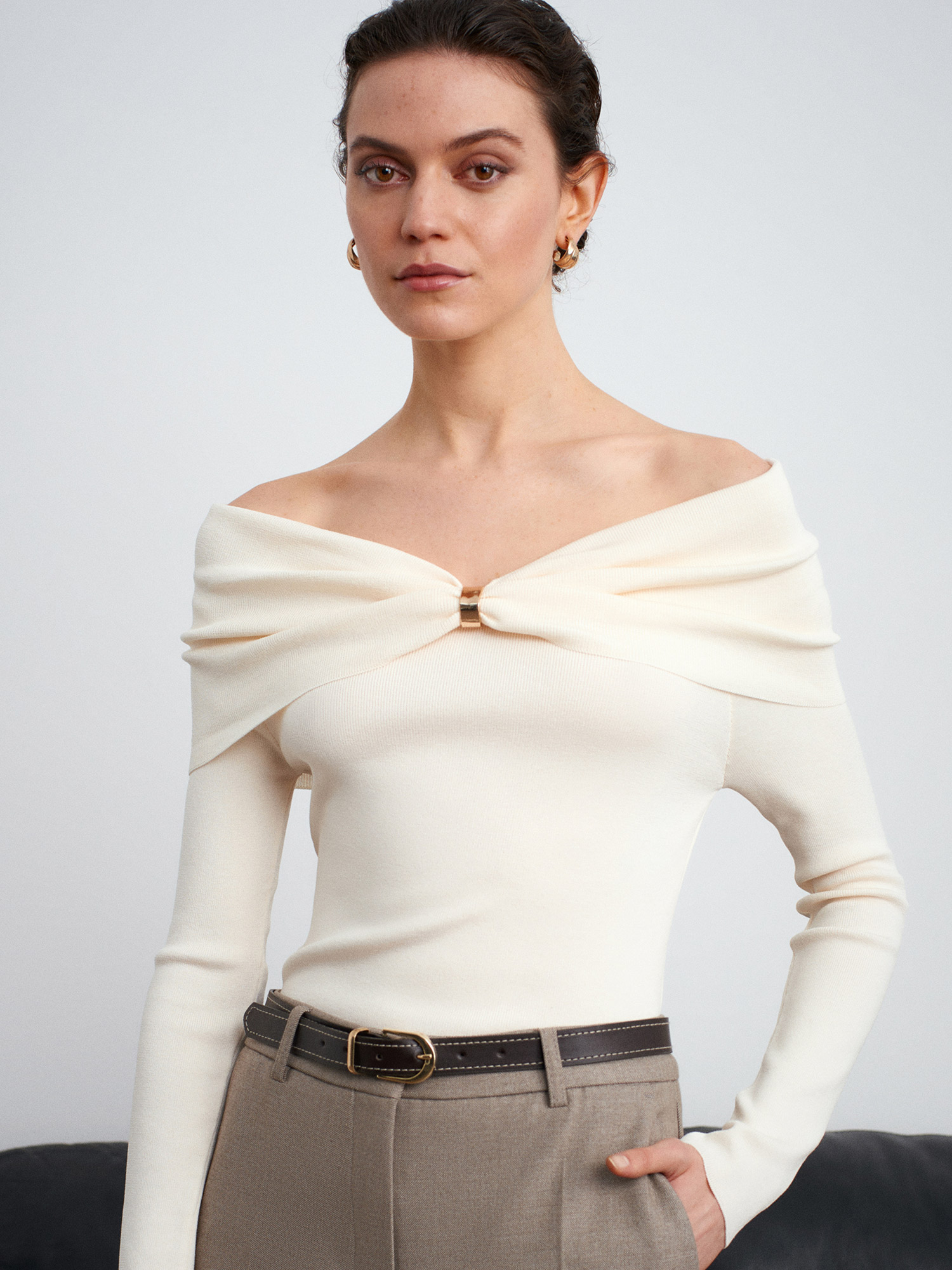 10820 Omzu Açık Fiyonk Detaylı Top-Ekru