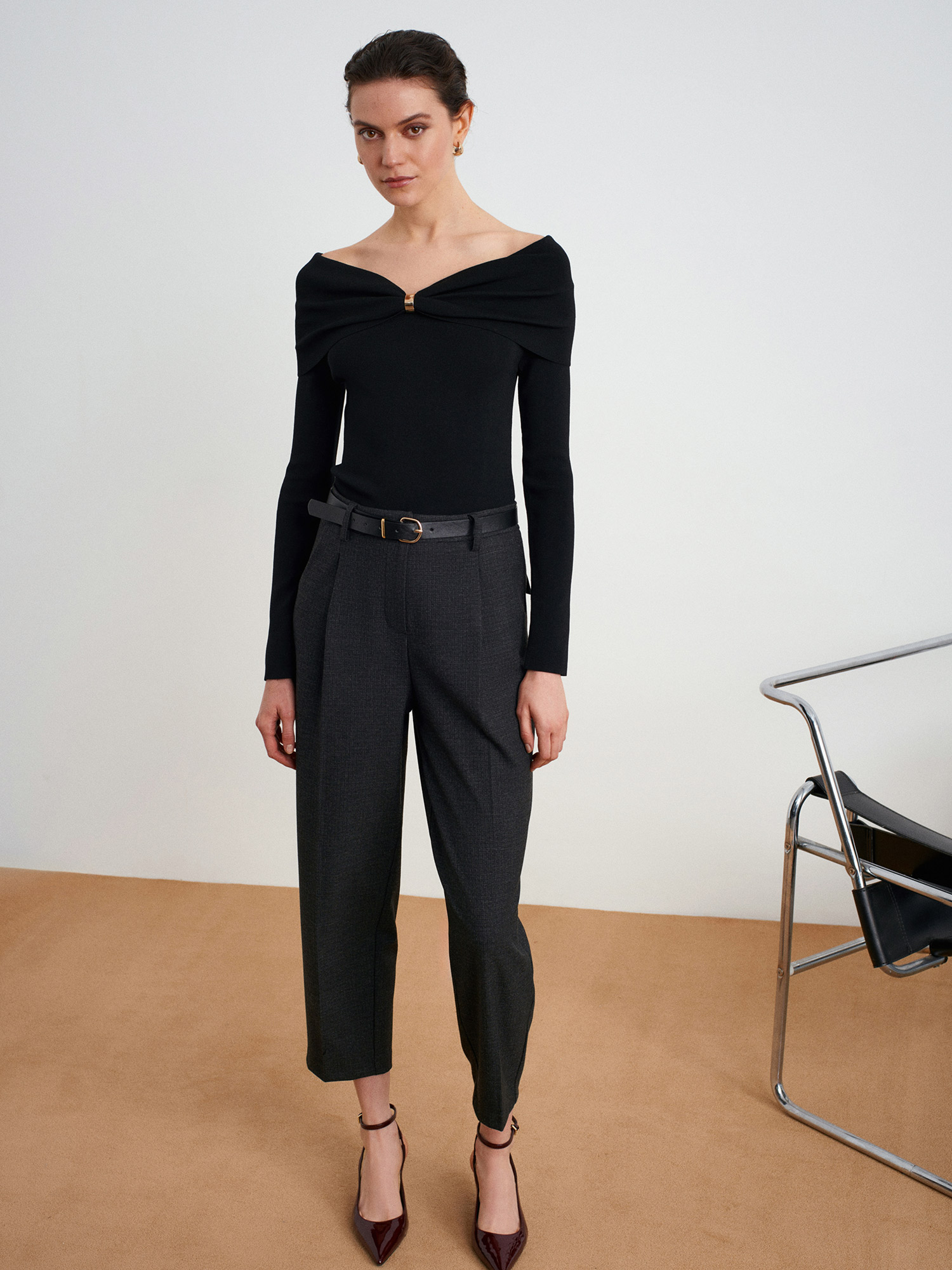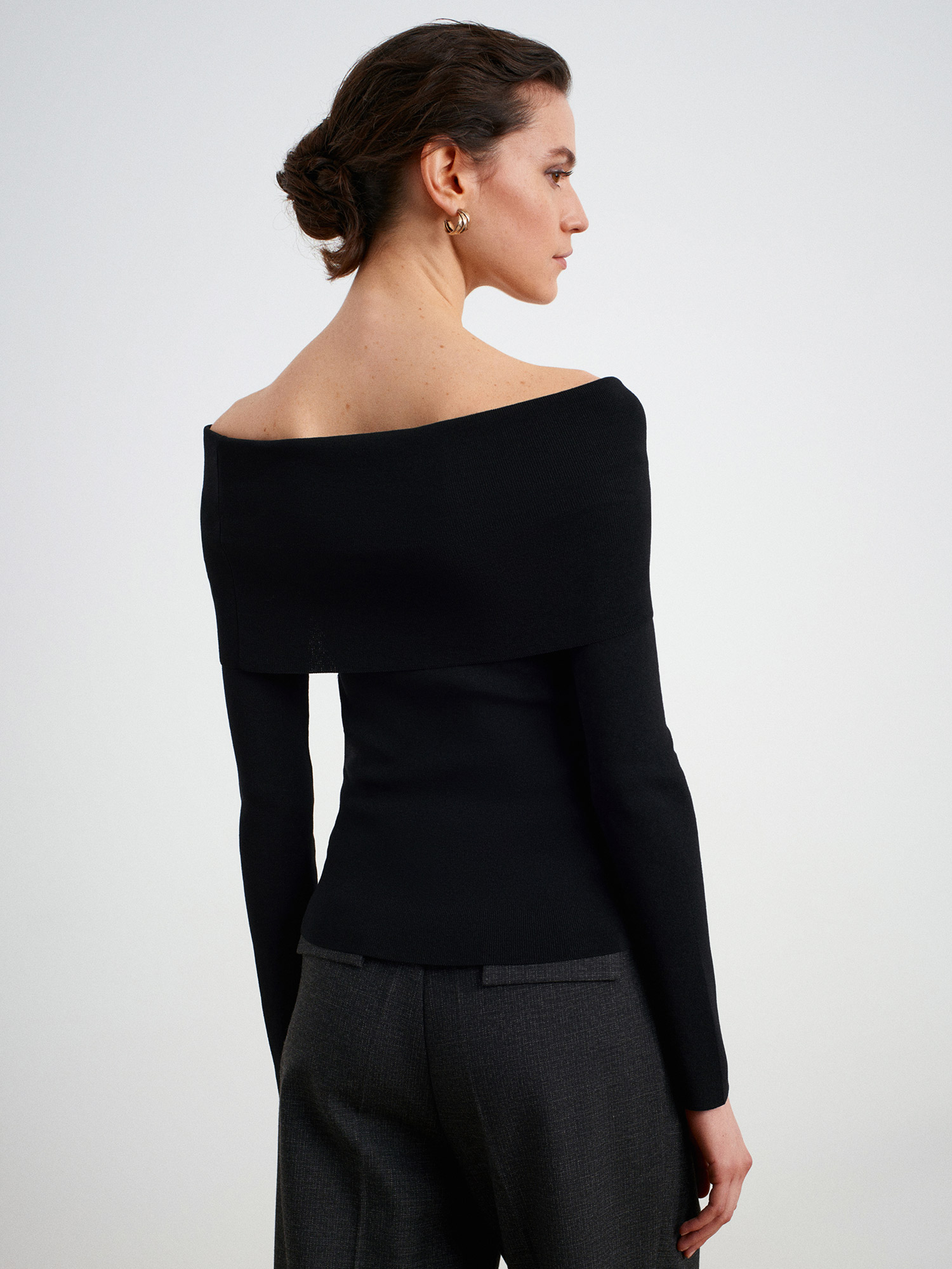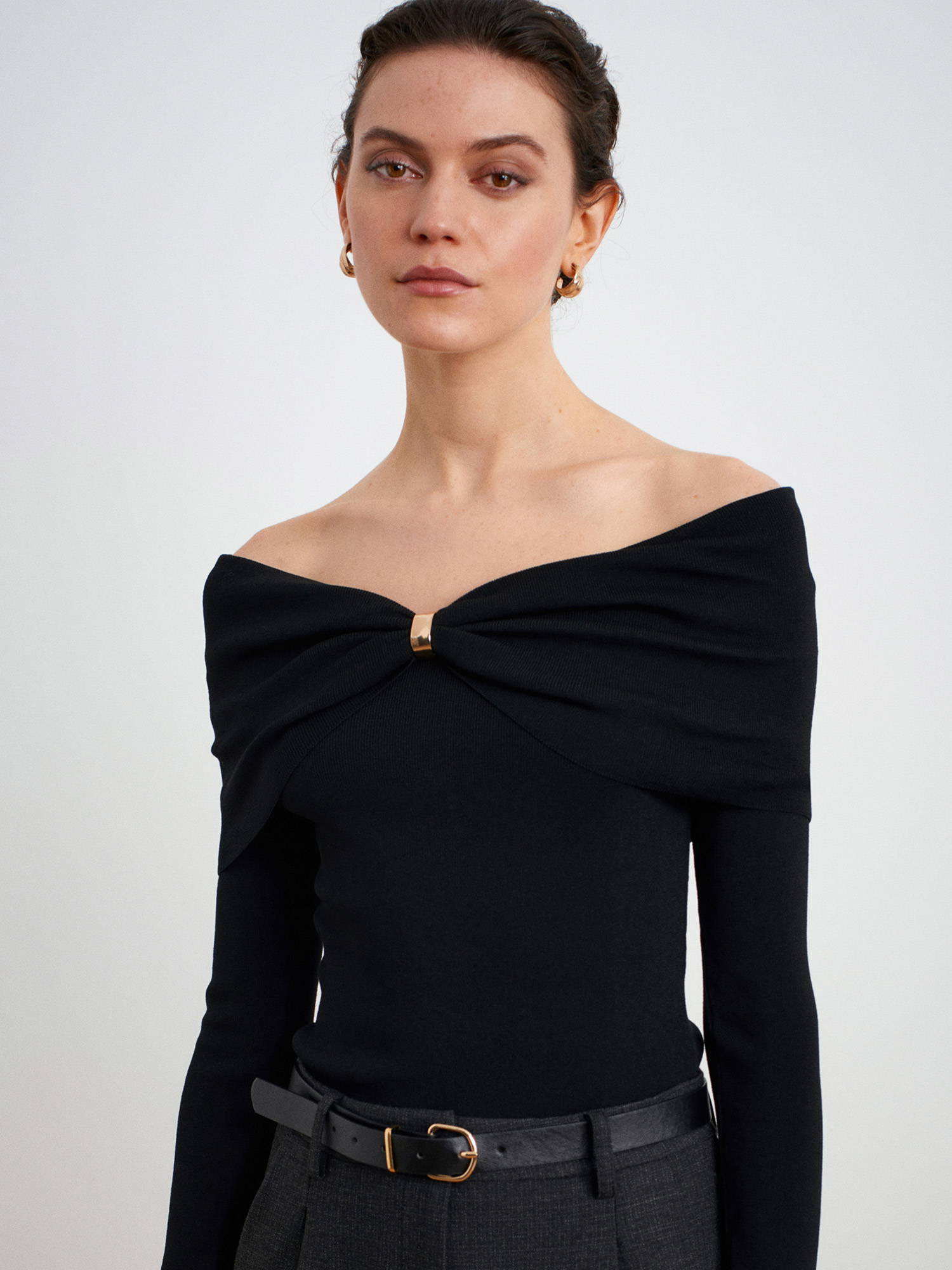 10820 Omzu Açık Fiyonk Detaylı Top-Siyah
