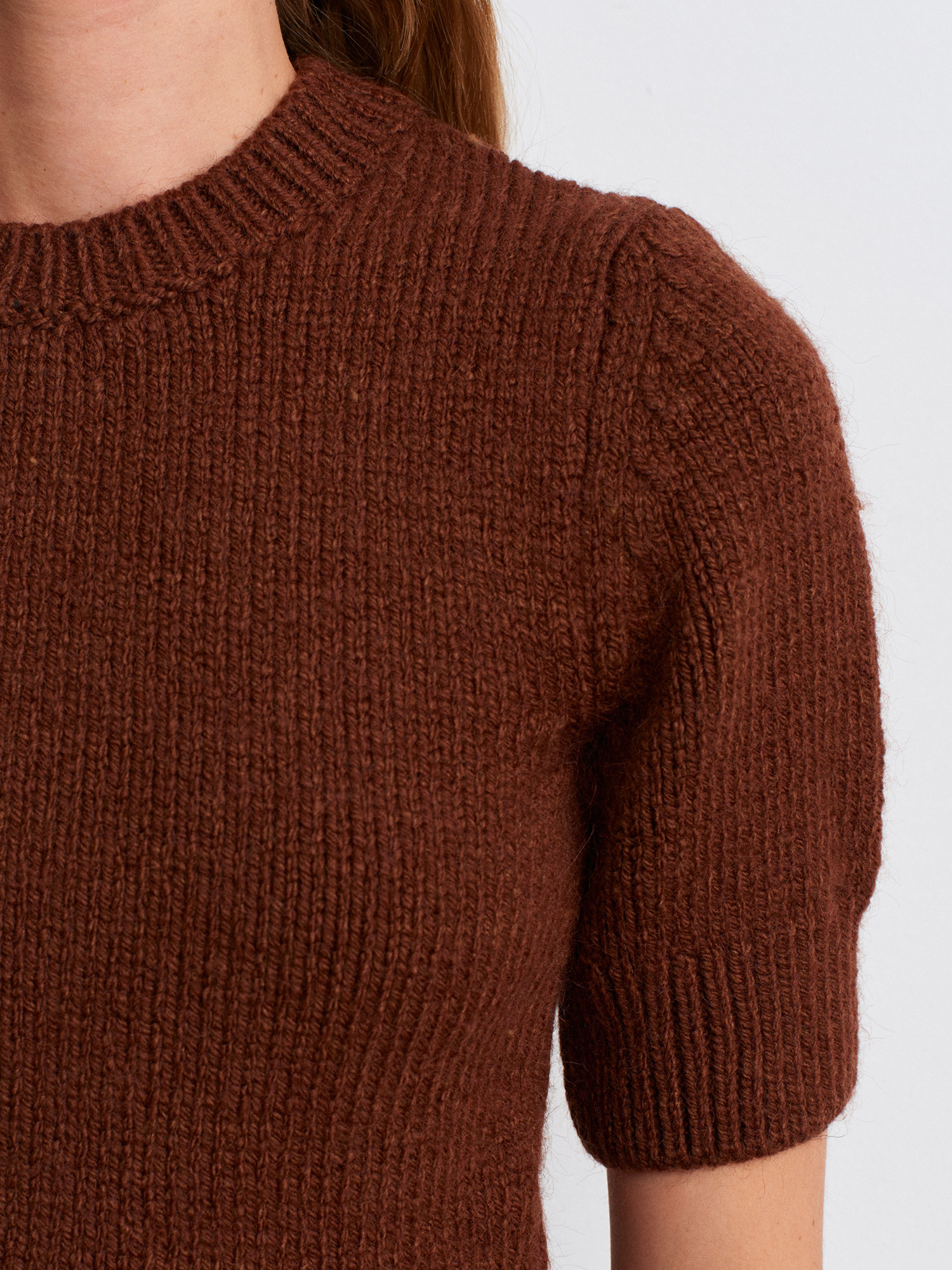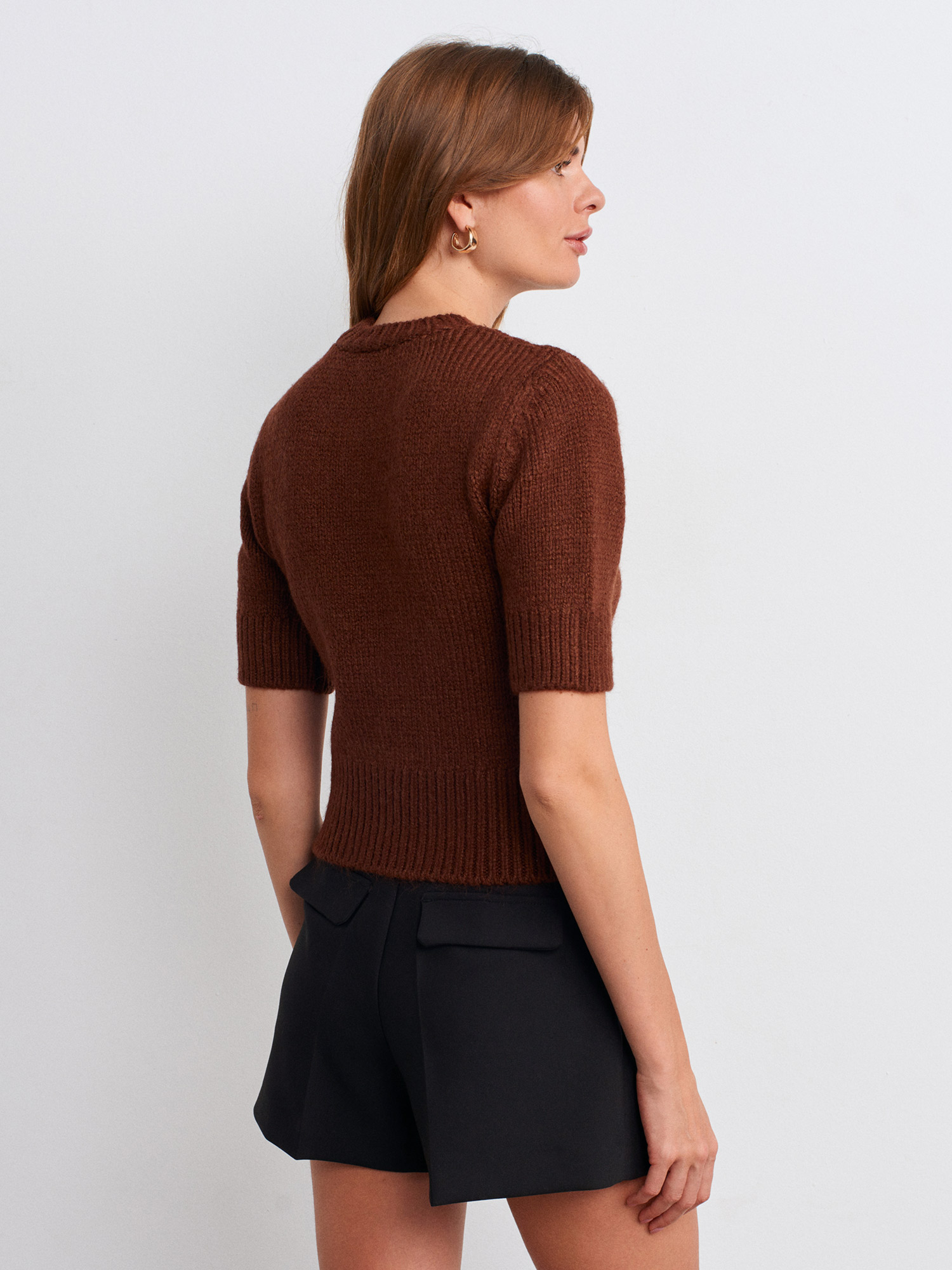 10821 Bisiklet Yaka Kısa Kollu Triko Kazak-Kahve