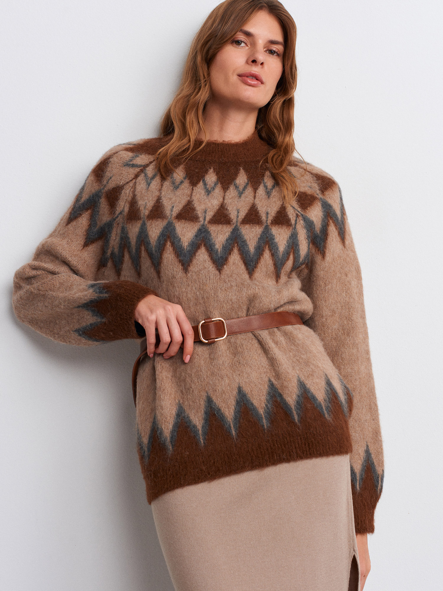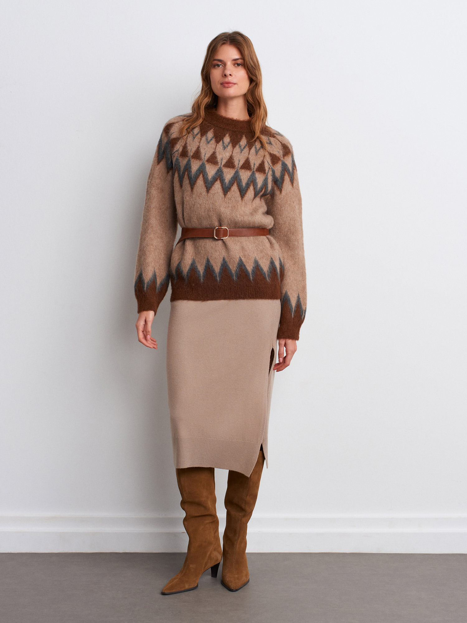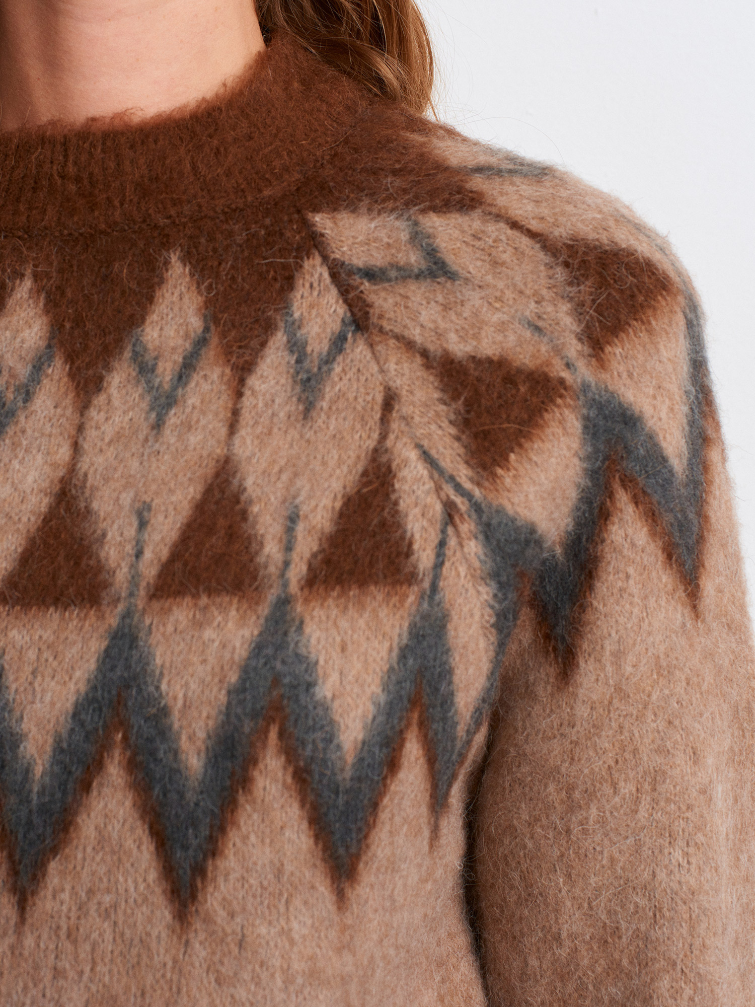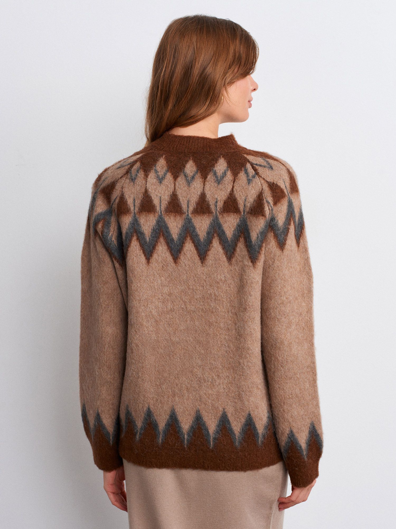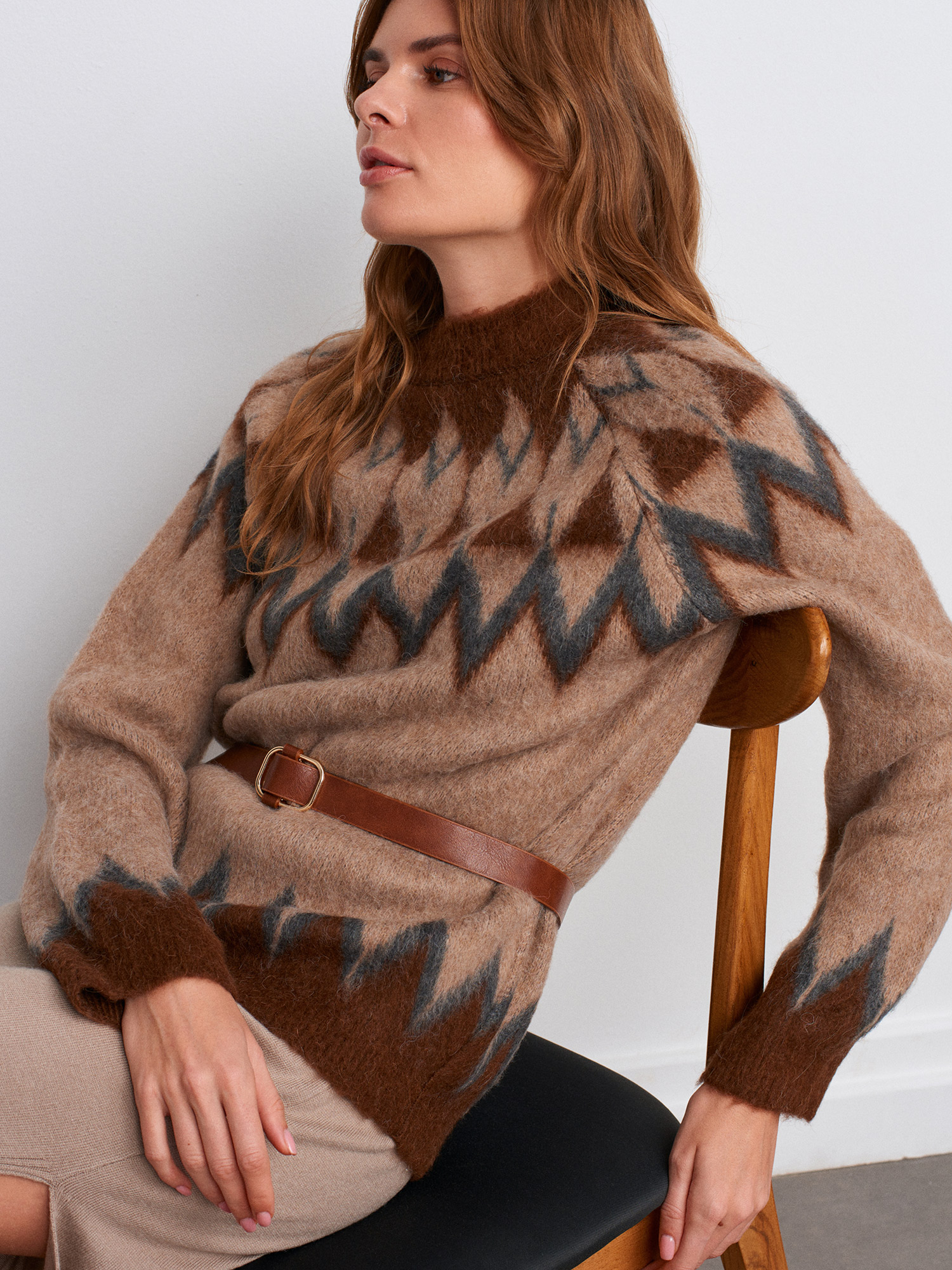 10822 Şardonlu Alpaka Karışımlı Triko Kazak-Kahve