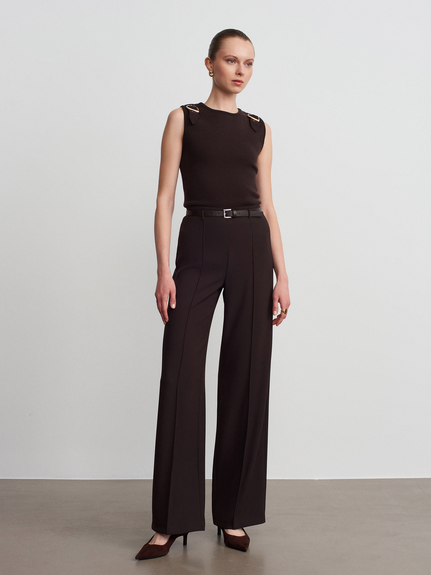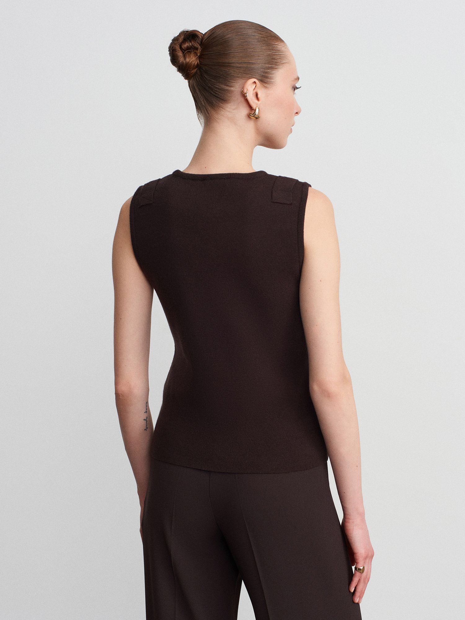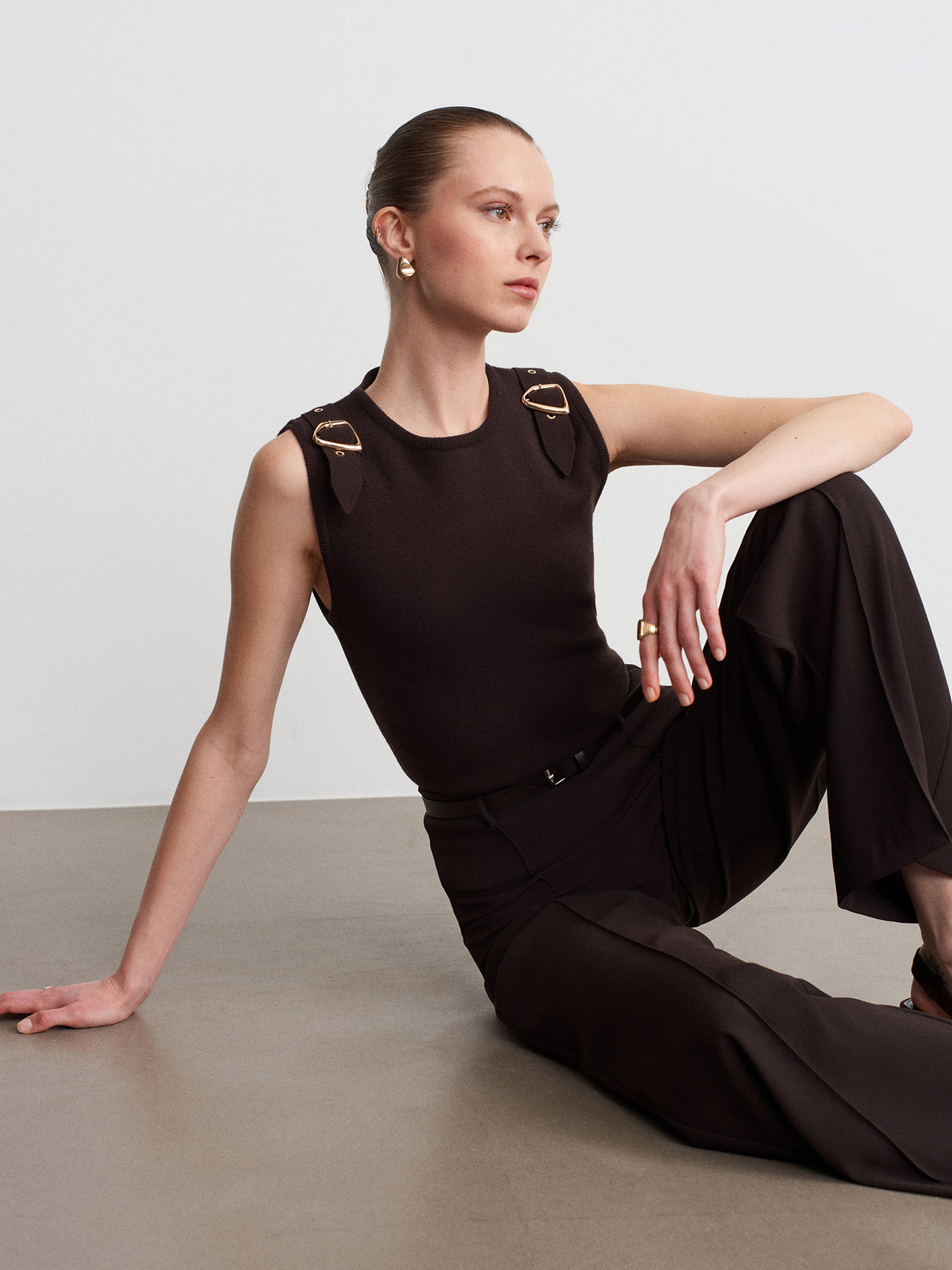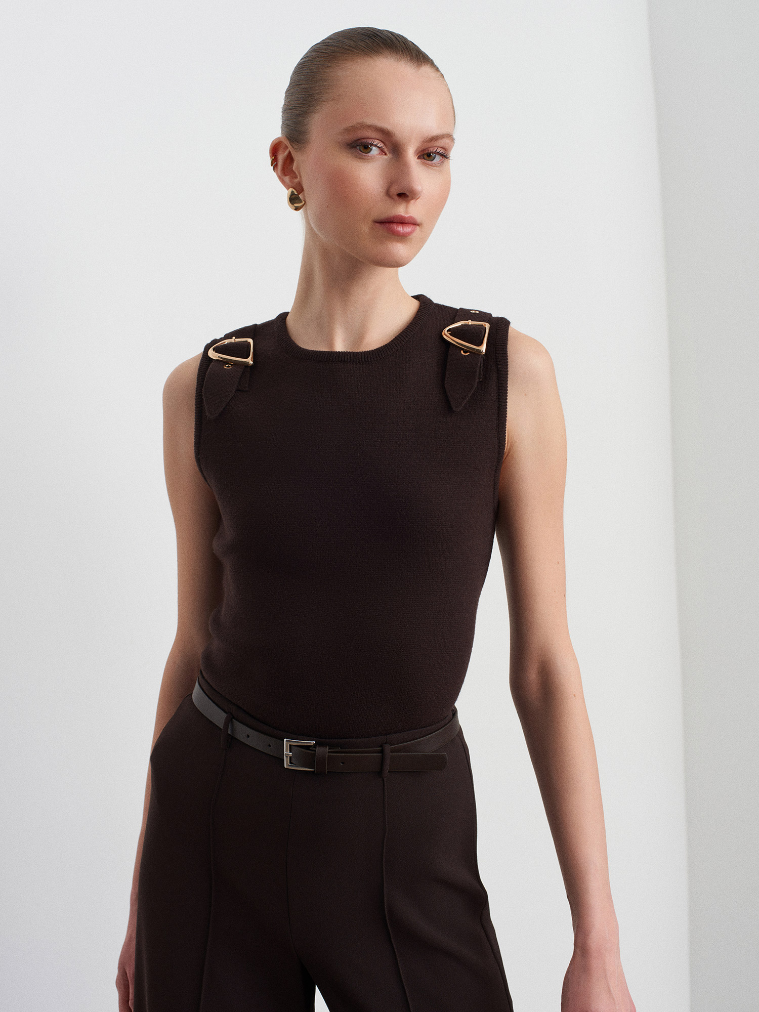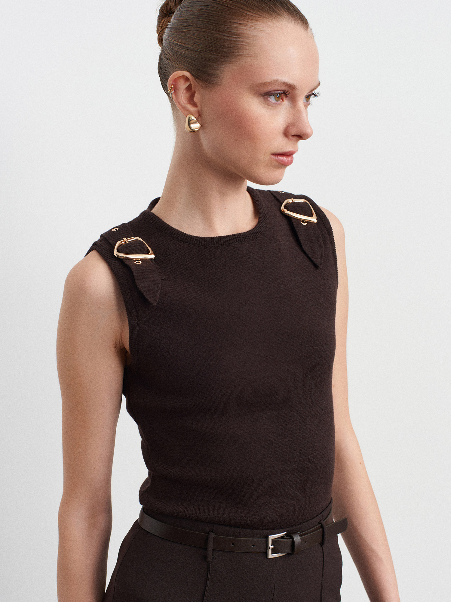 10823 Aksesuar Detaylı Triko Bluz-Koyu Kahve