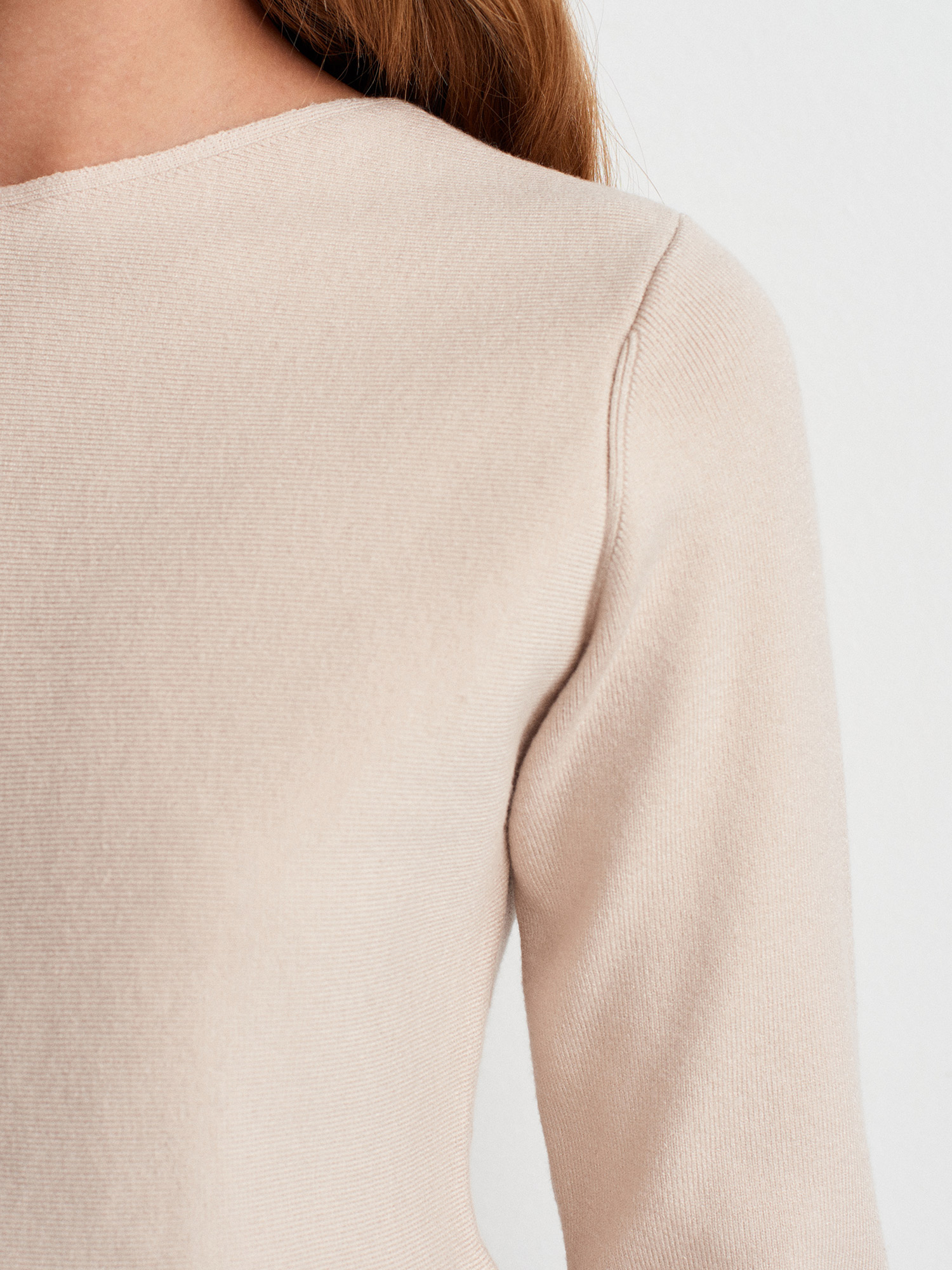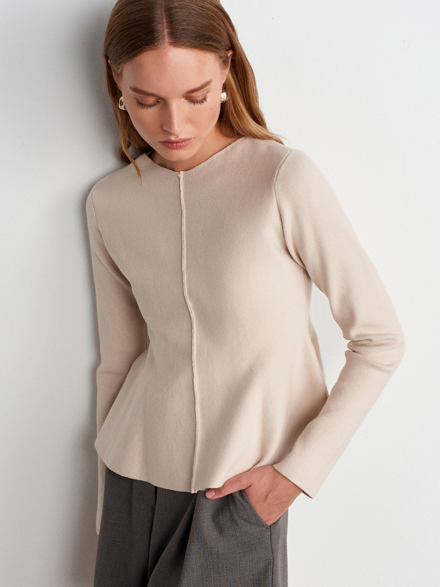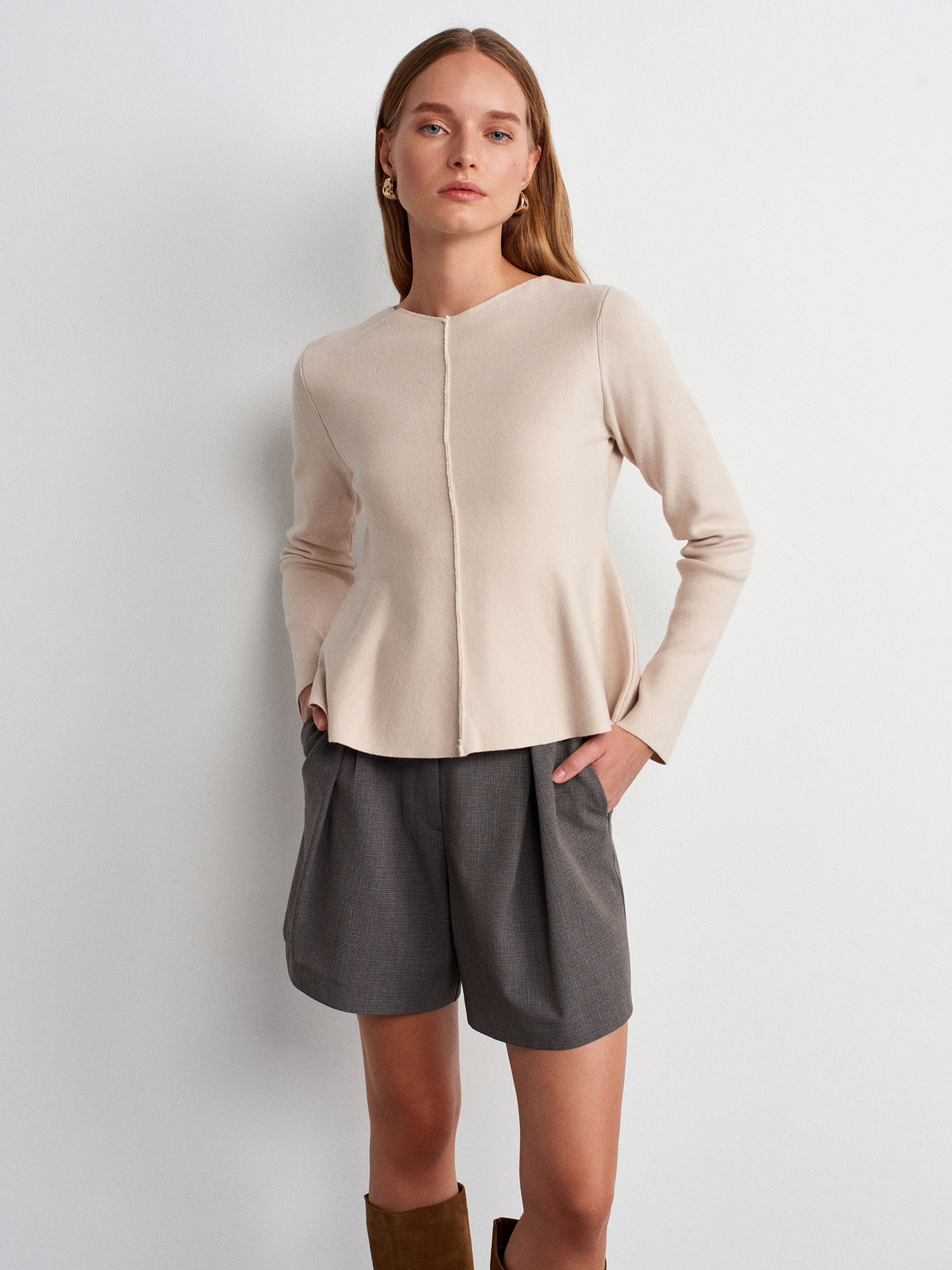 10824 Bisiklet Yaka Peplum Triko Top-Açık Bej