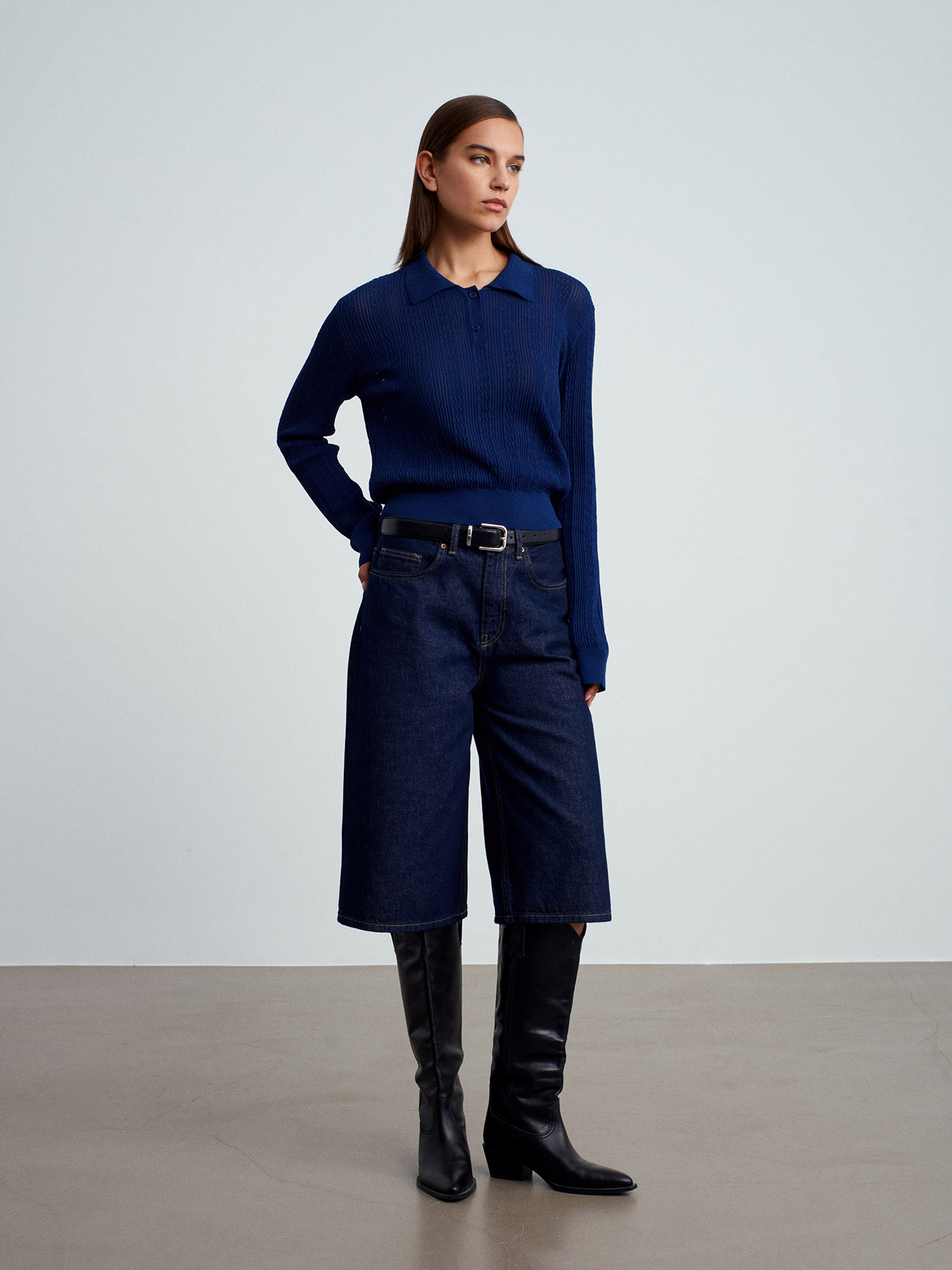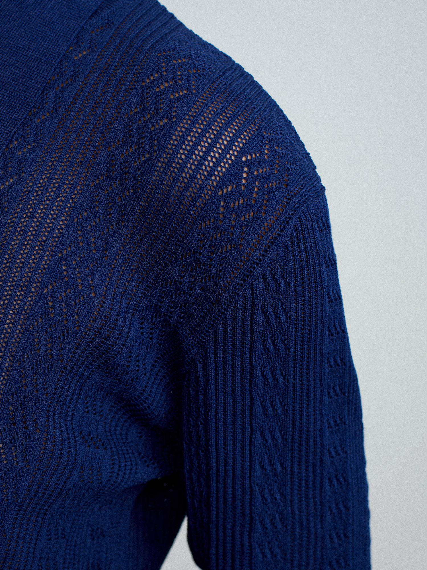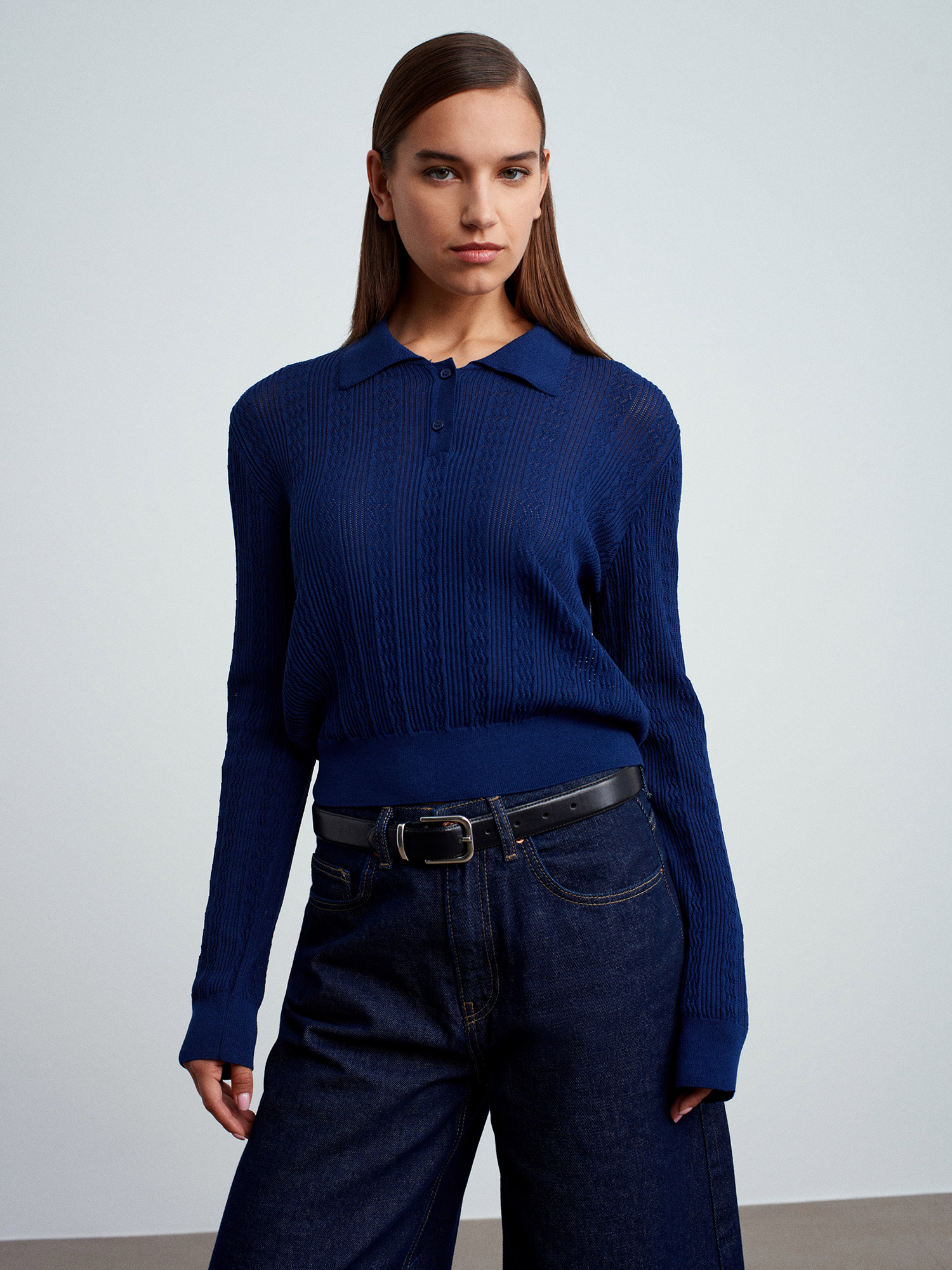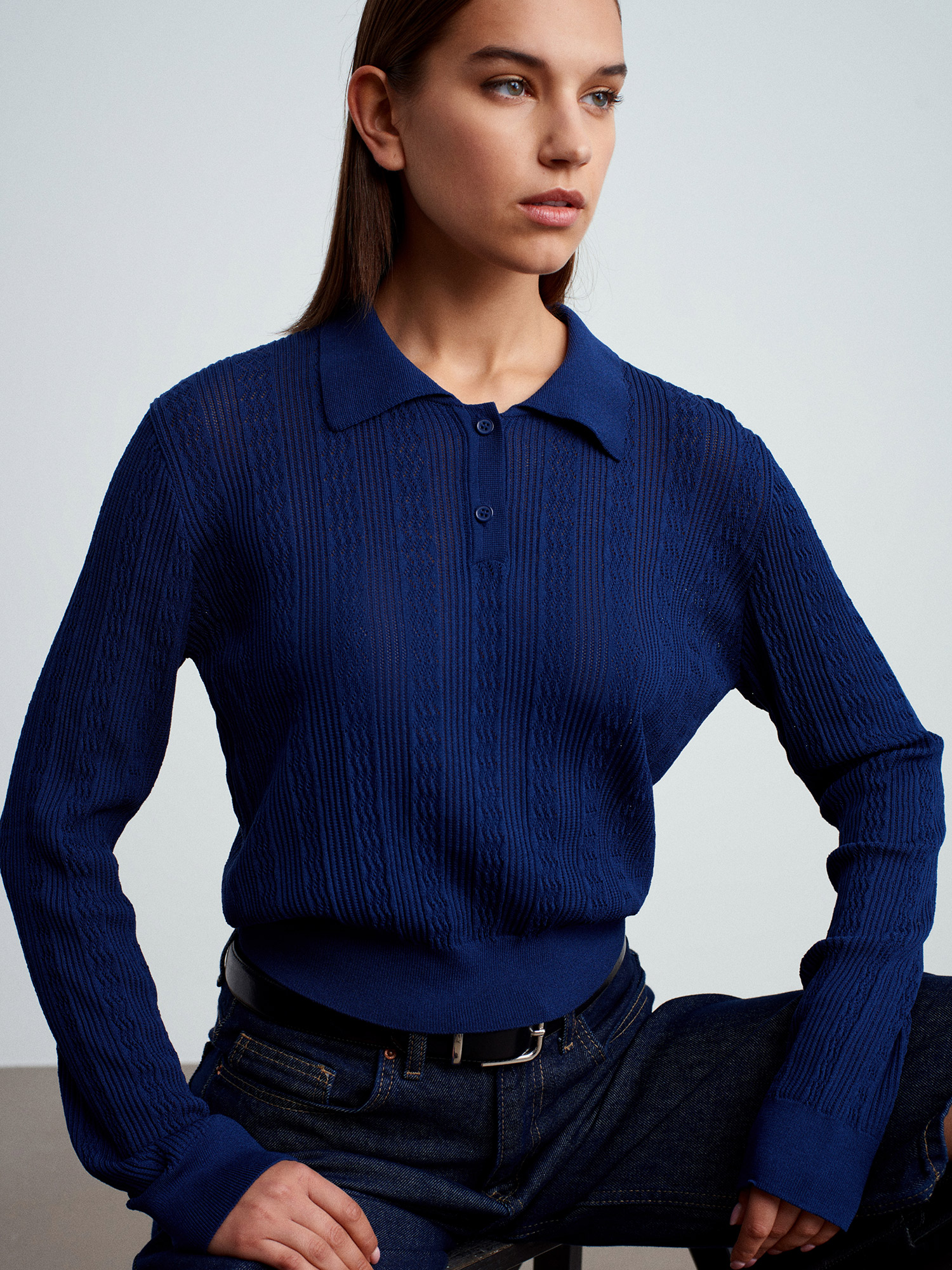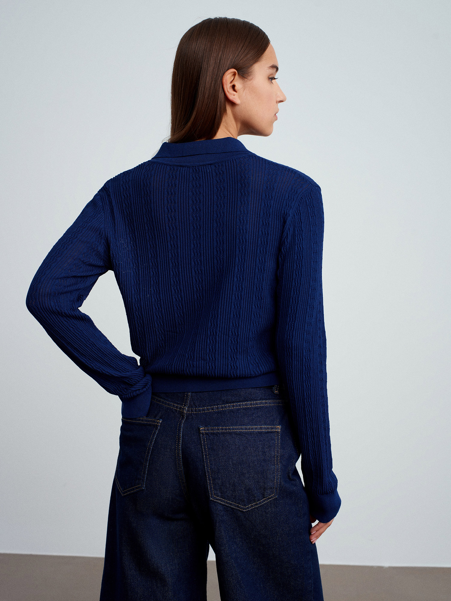 10827 Polo Yaka İnce Triko Bluz-Lacivert