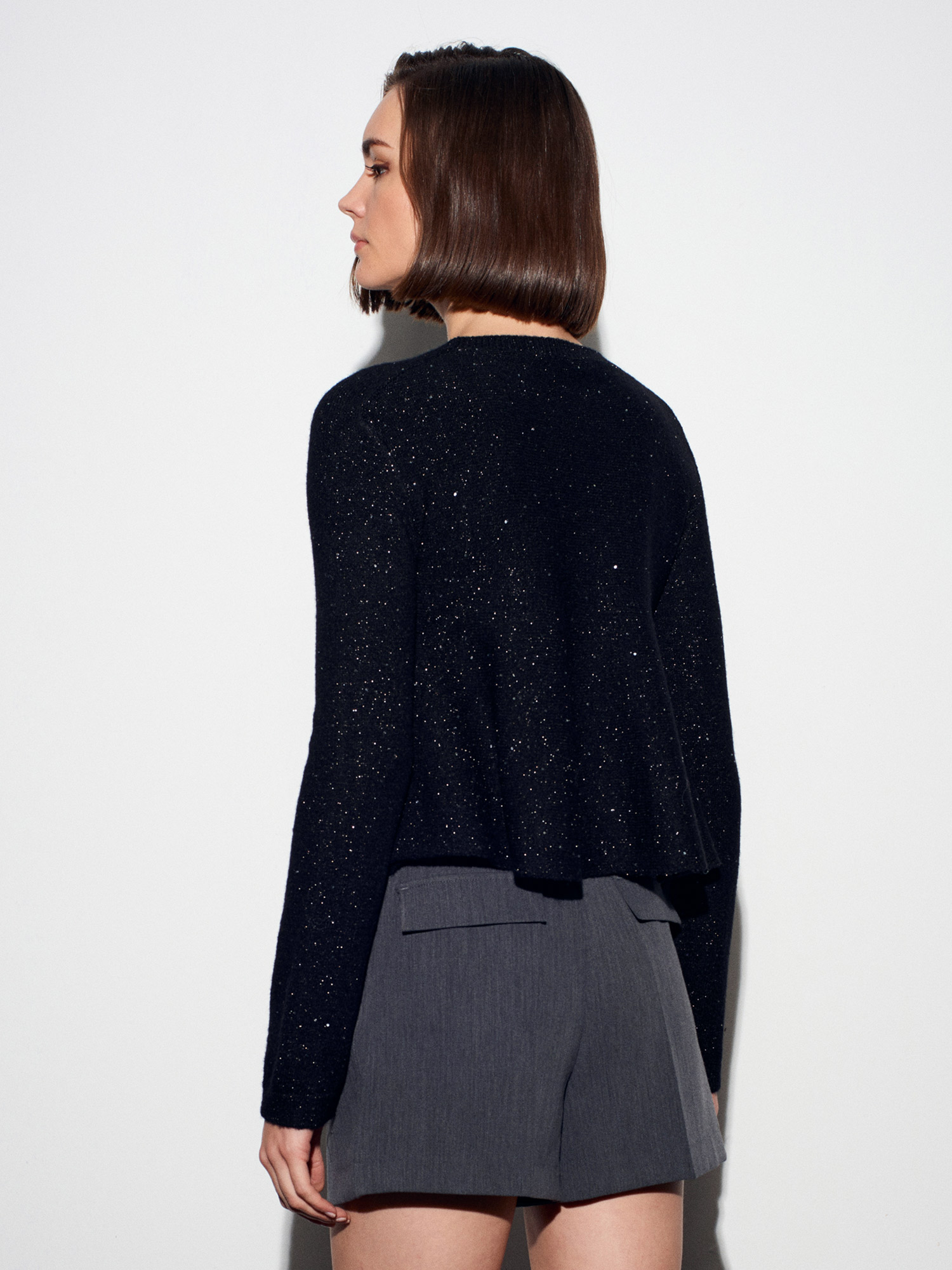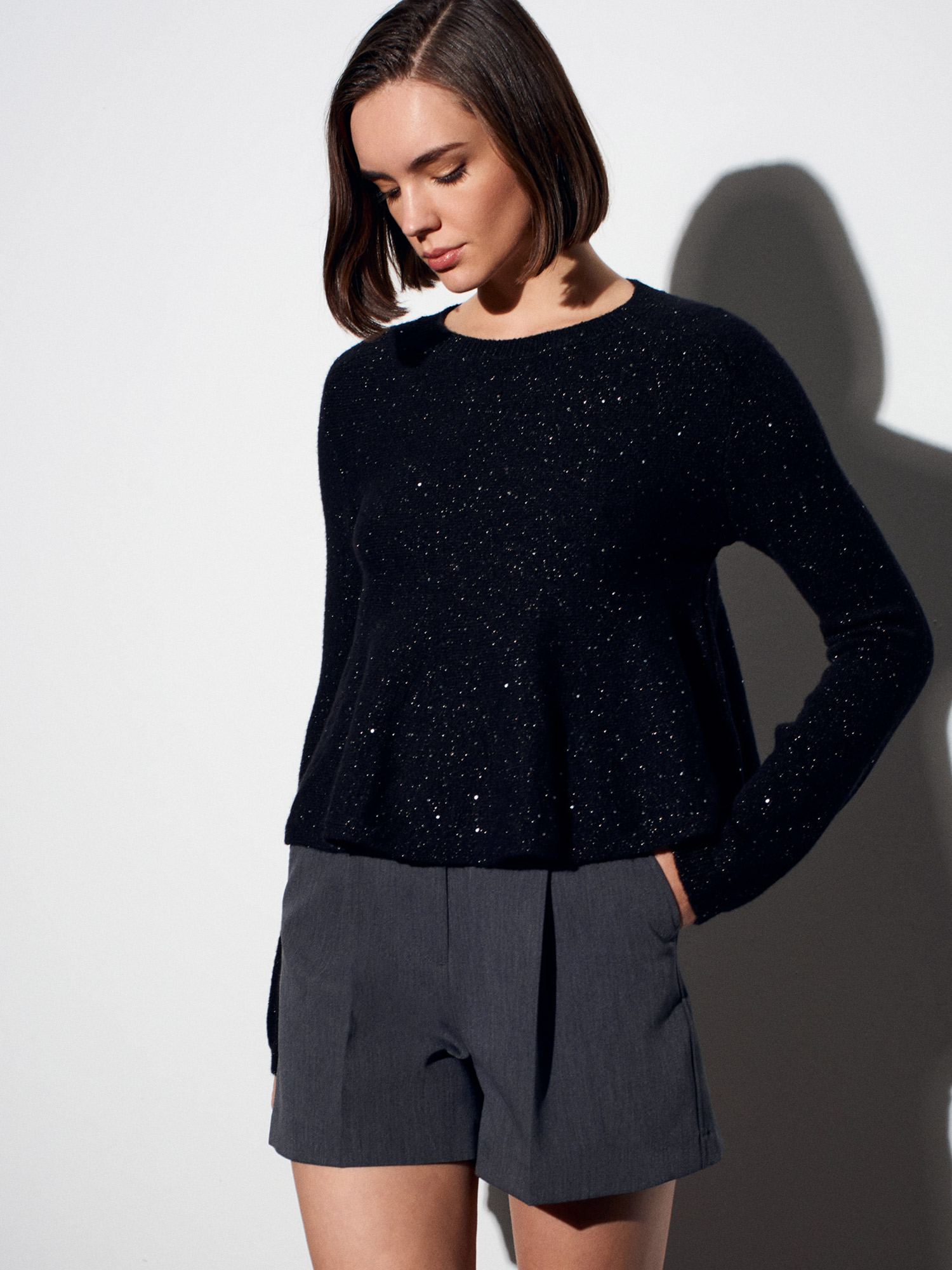 10832 Peplum Parıltılı Triko Kazak-Siyah