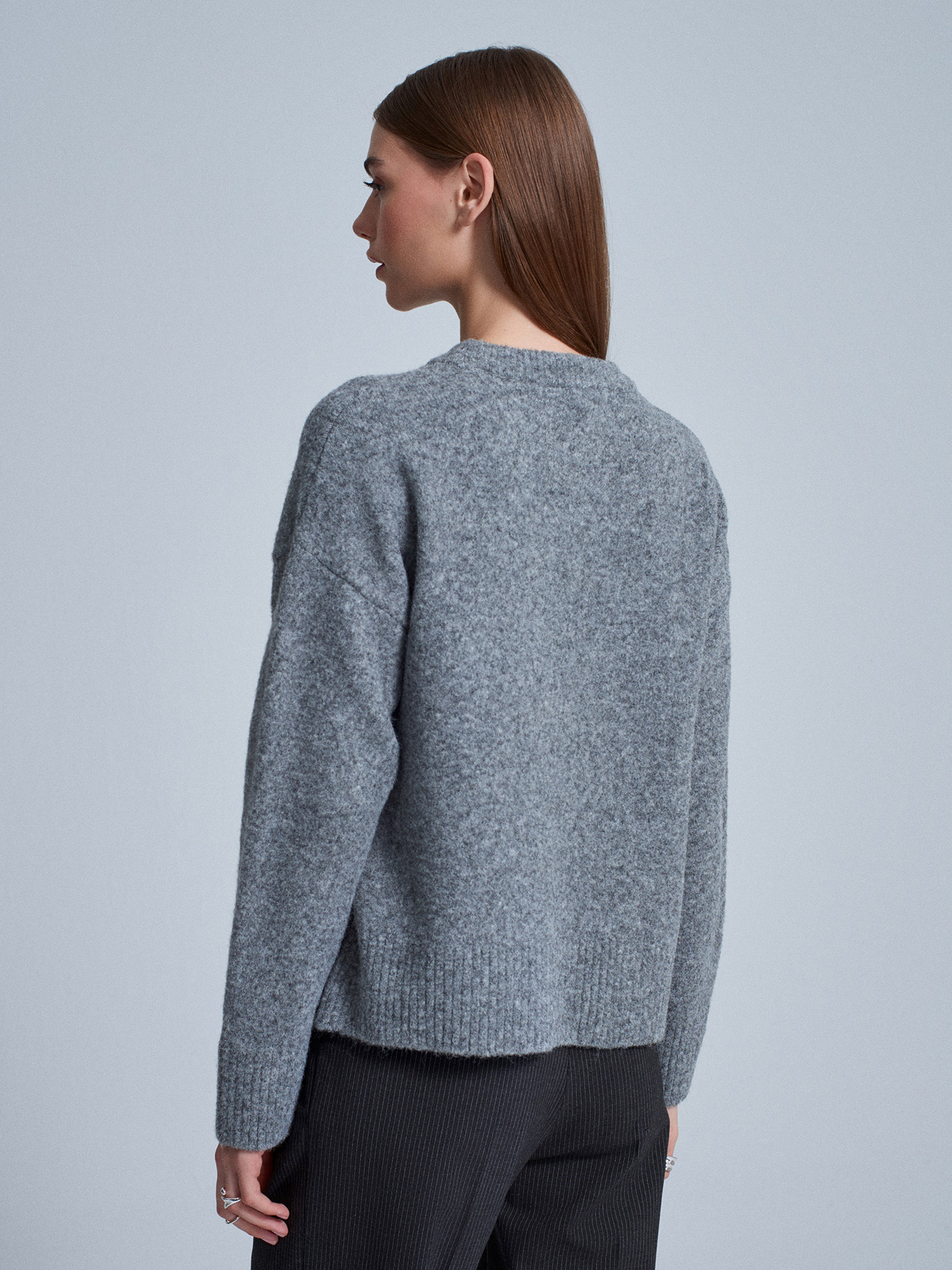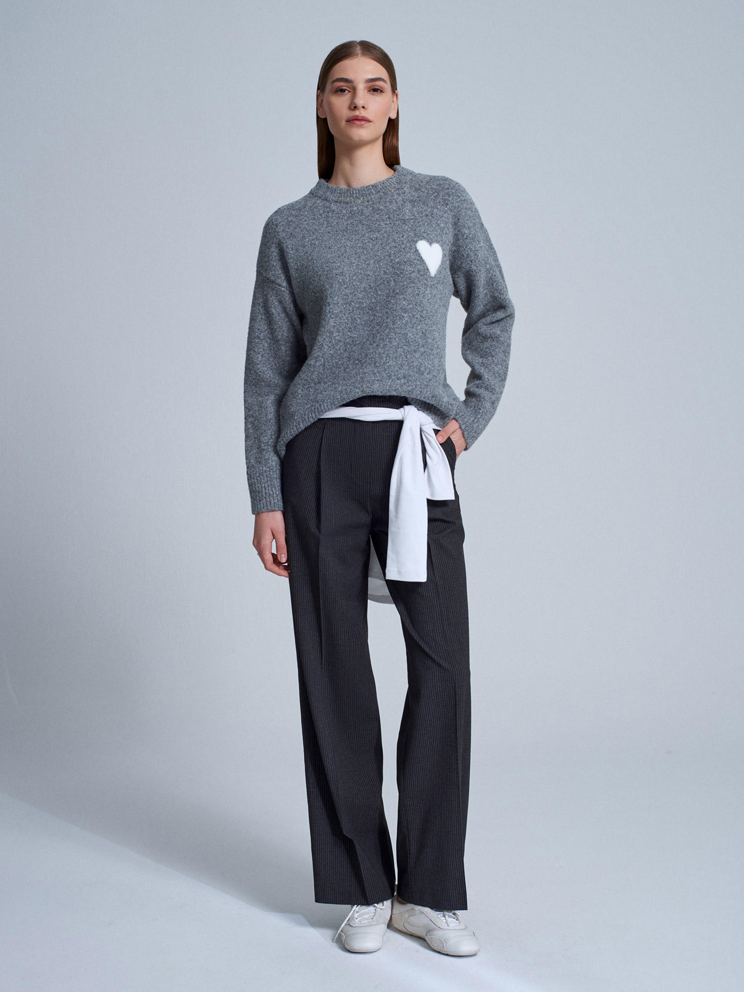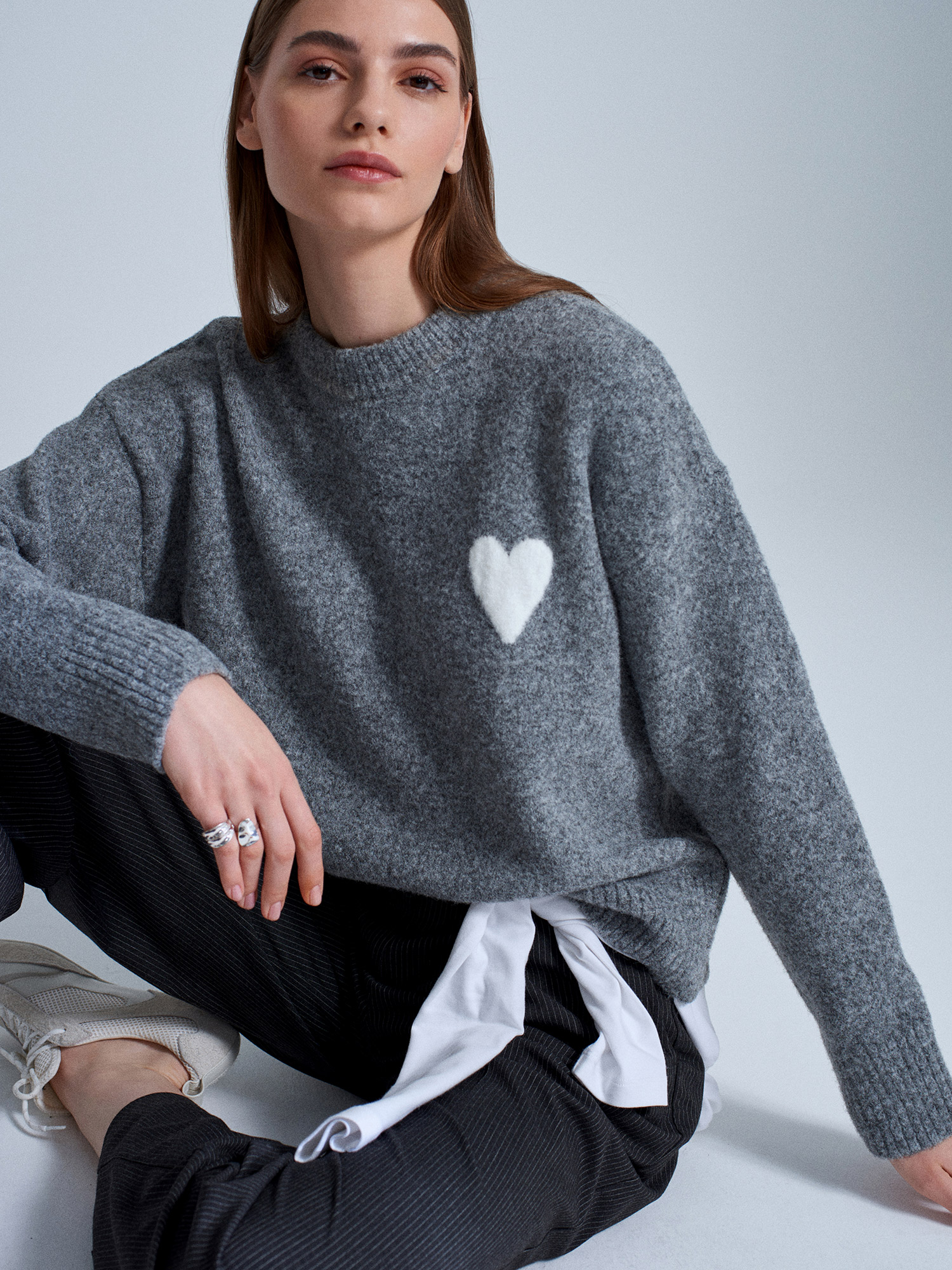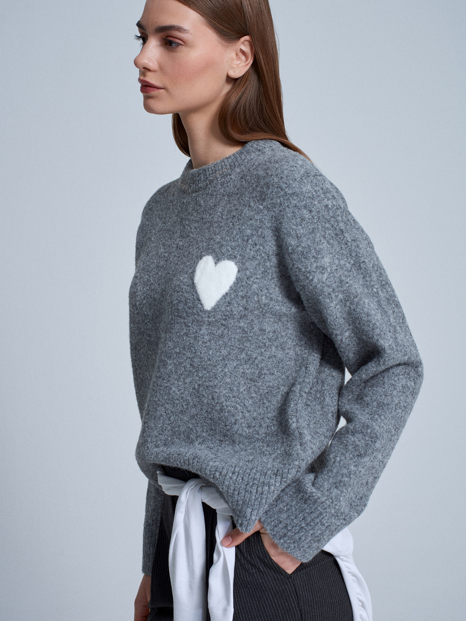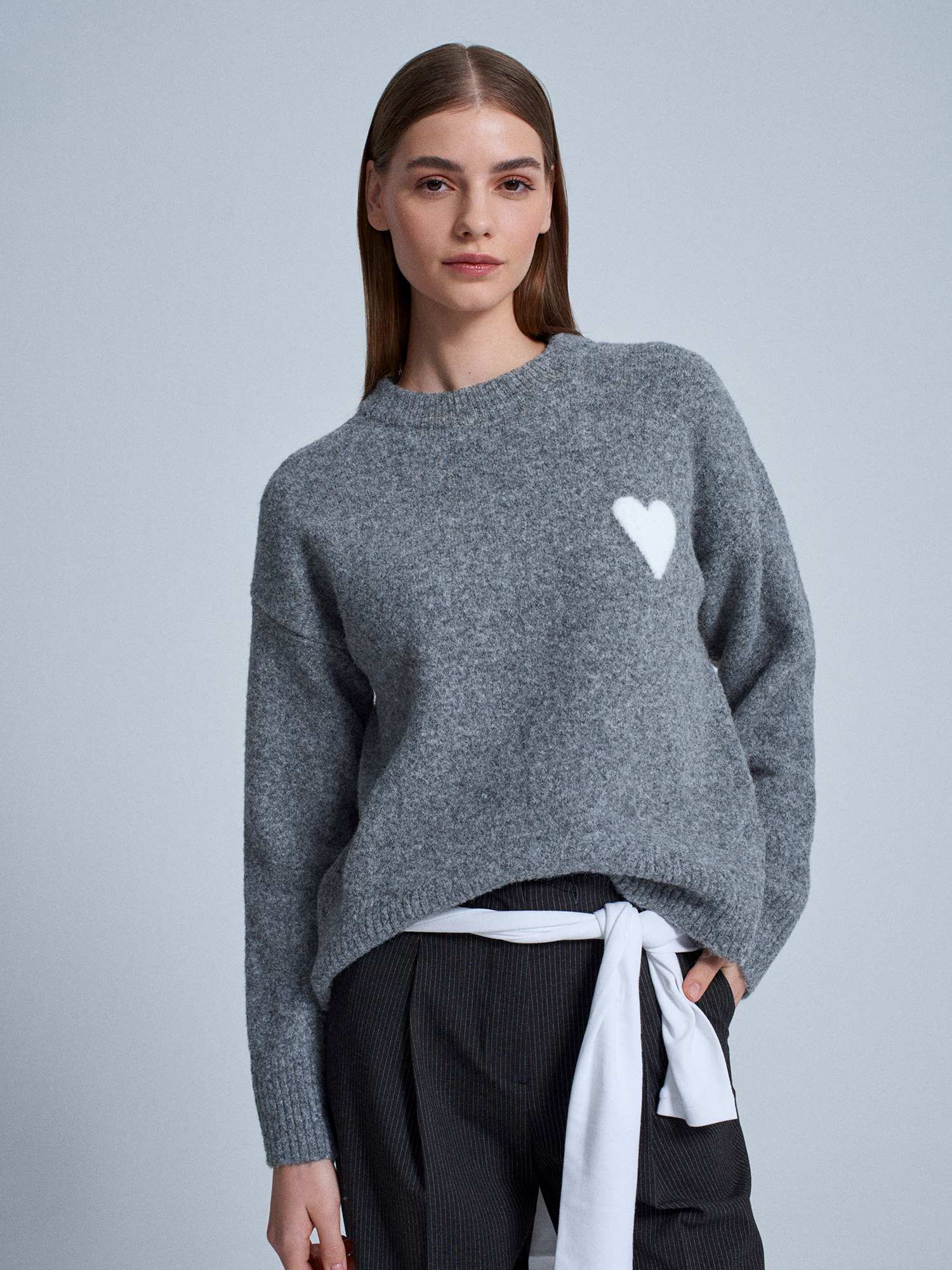 10837 Yün Karışımlı Kalpli Kazak-Füme M.