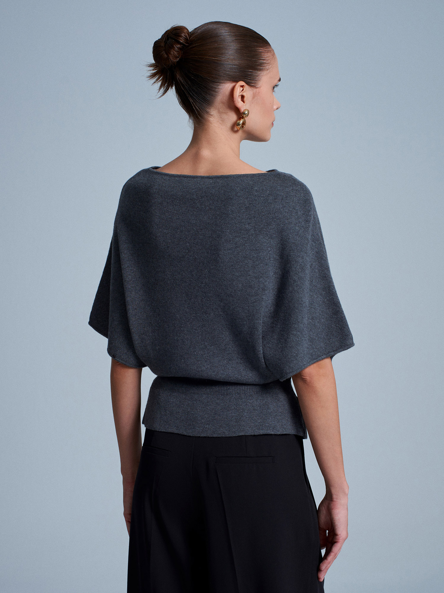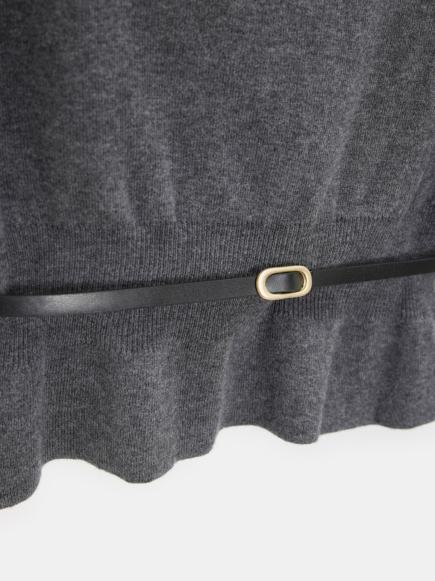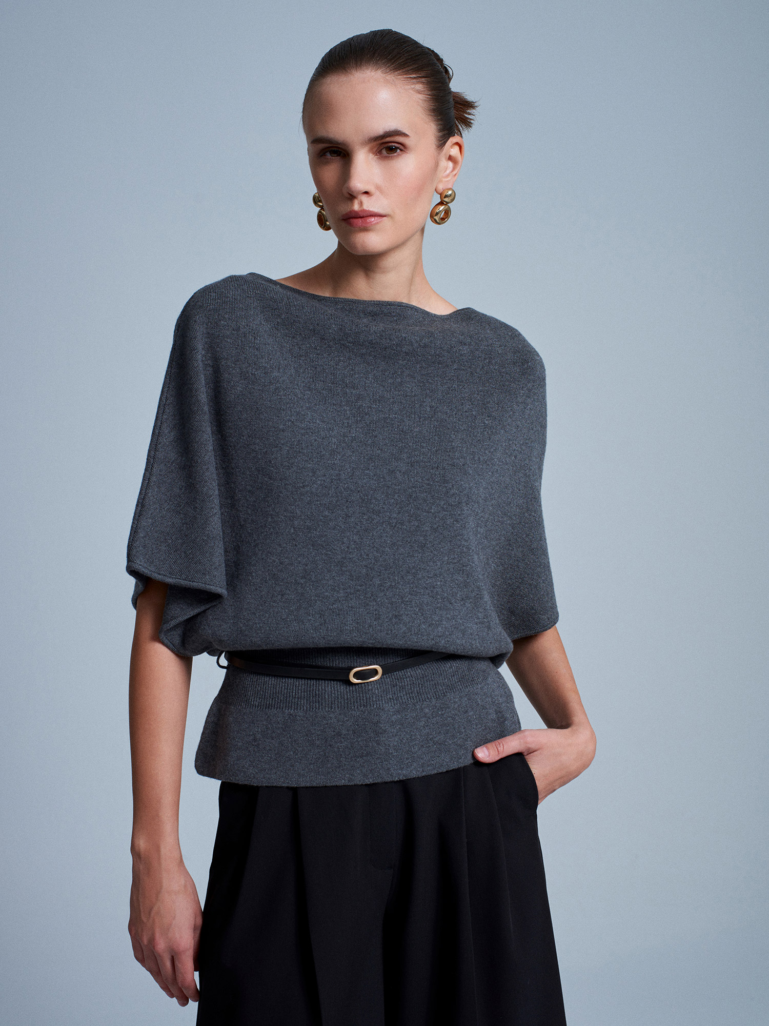 10838 Yün Karışımlı Kemerli Kayık Yaka Kazak-Füme M.