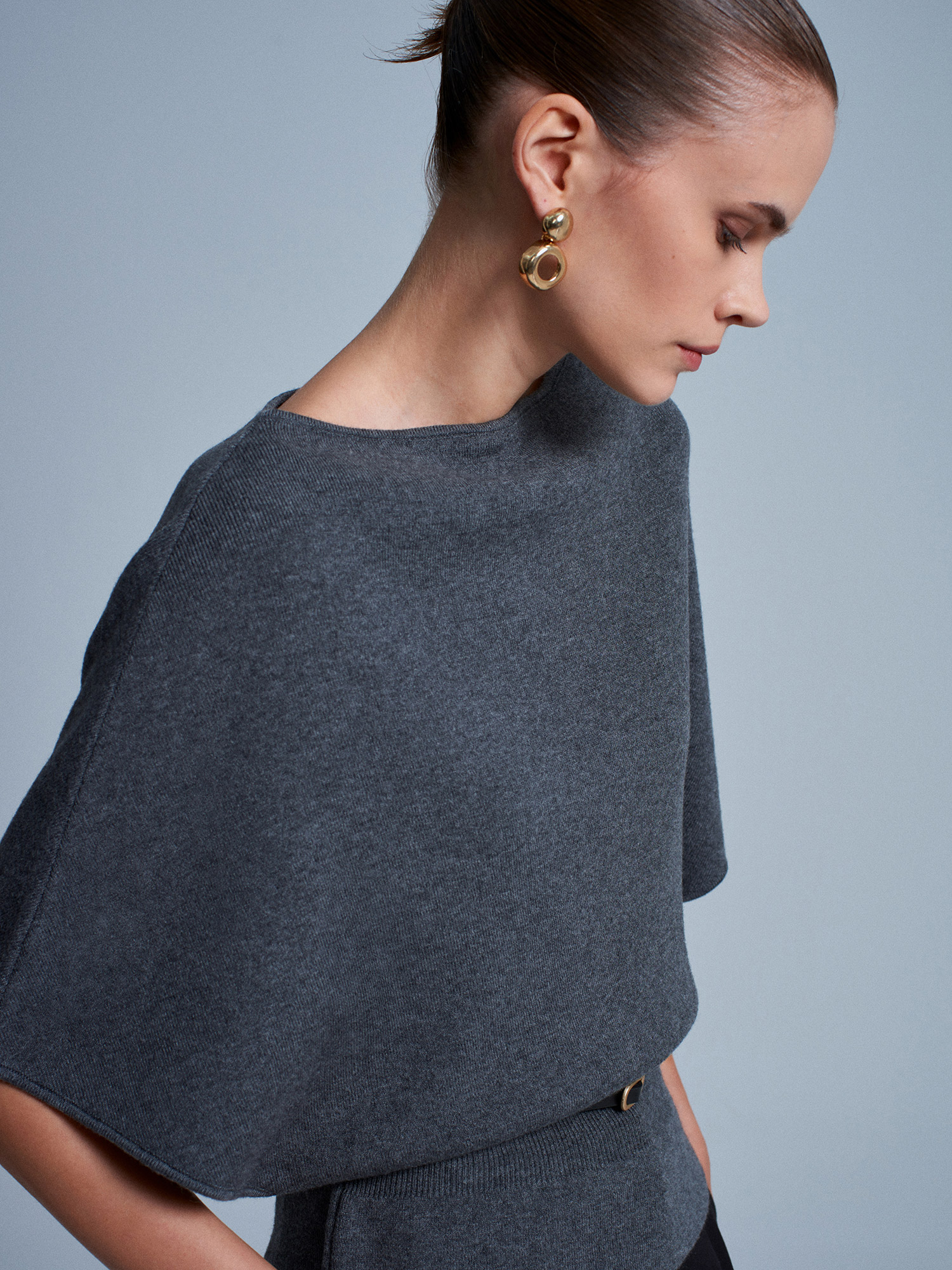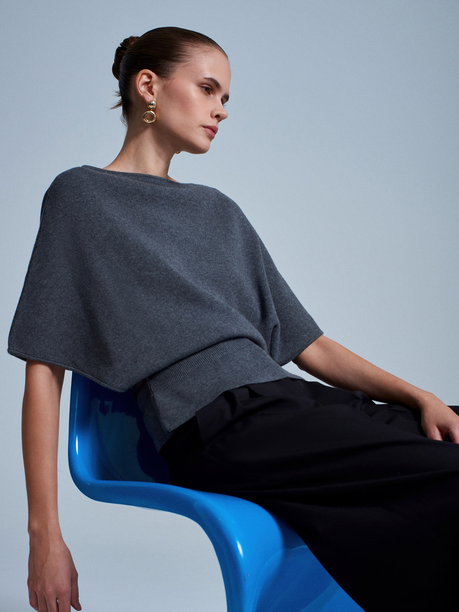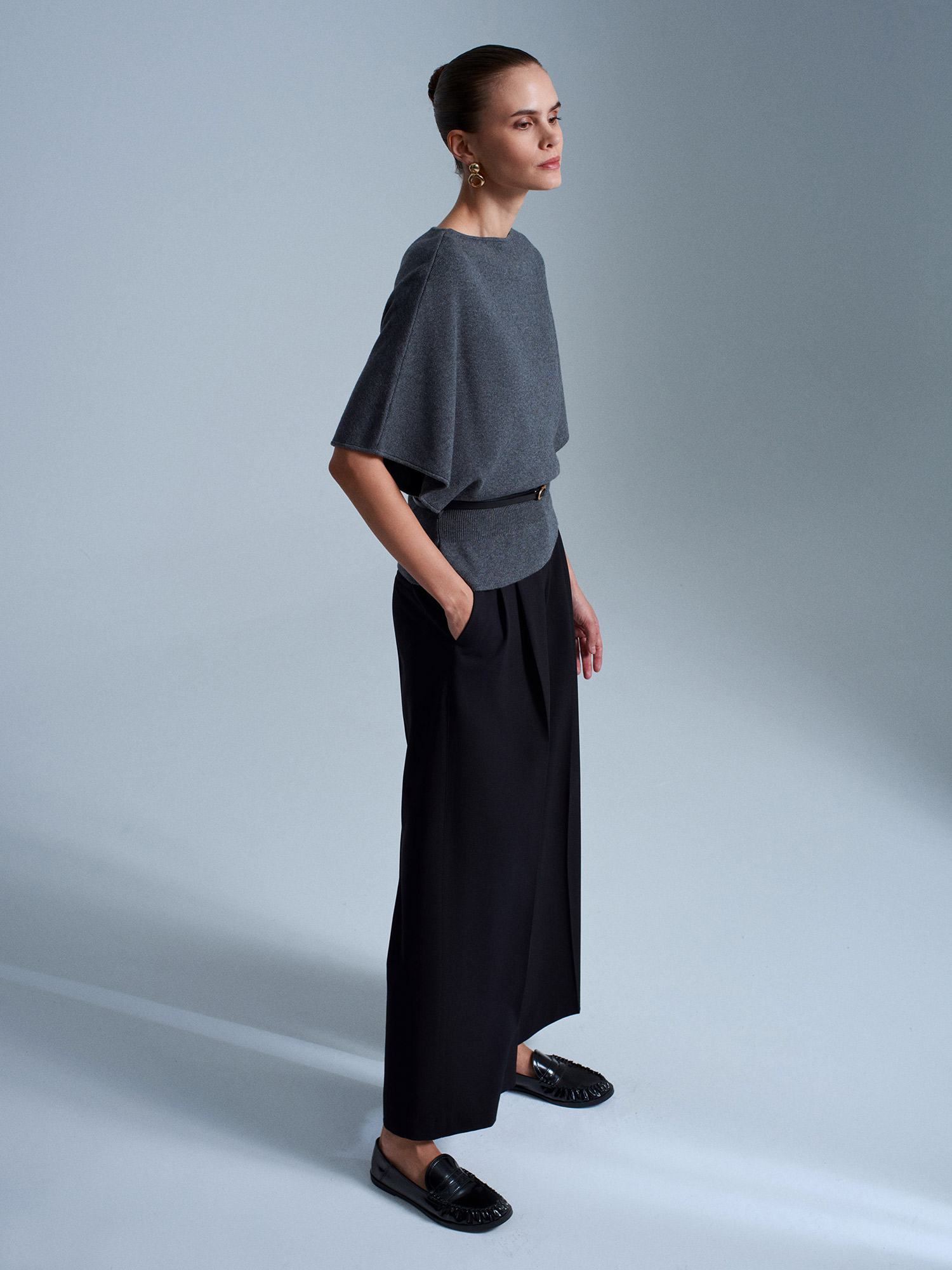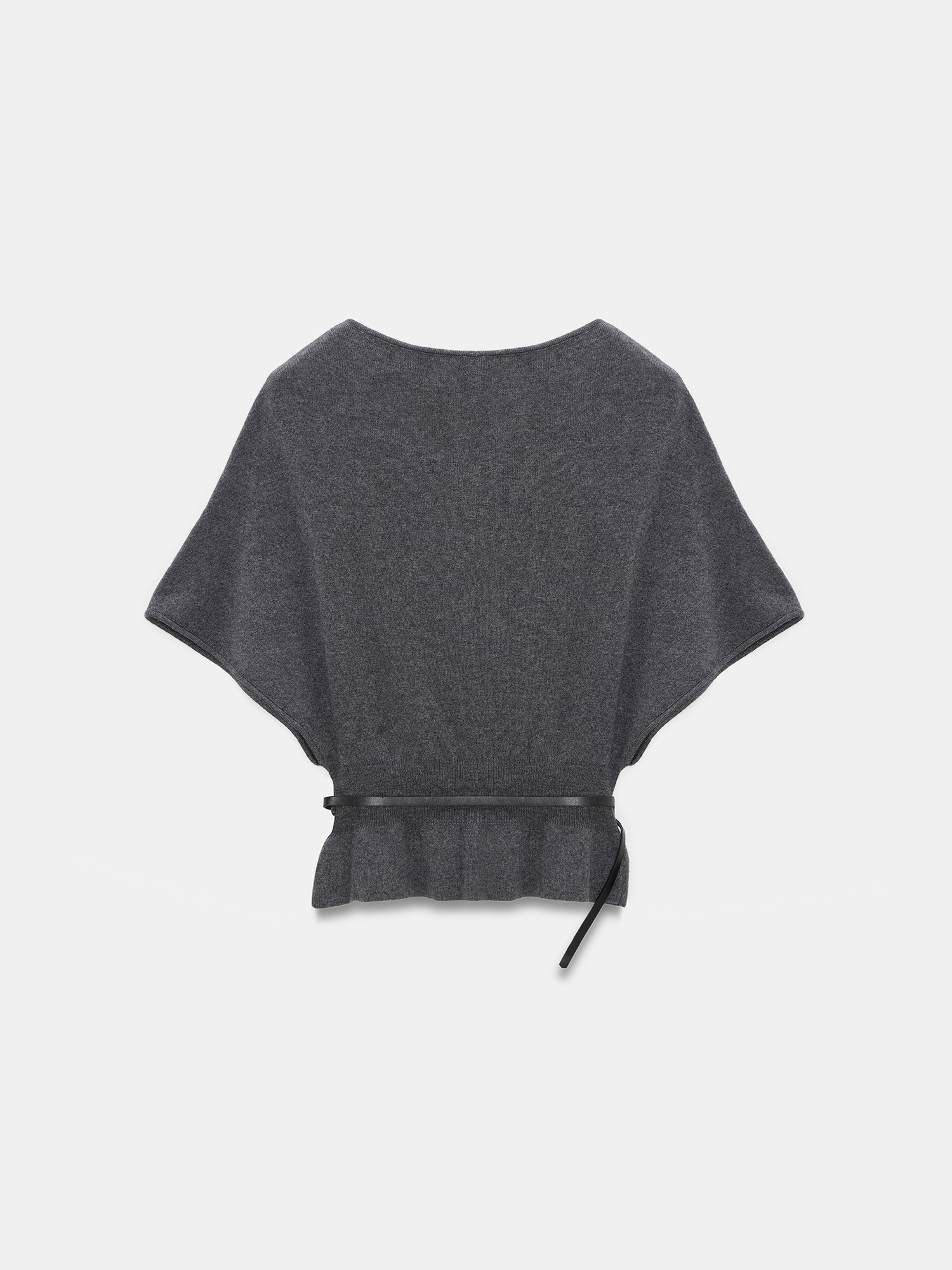 10838 Yün Karışımlı Kemerli Kayık Yaka Kazak-Füme M.