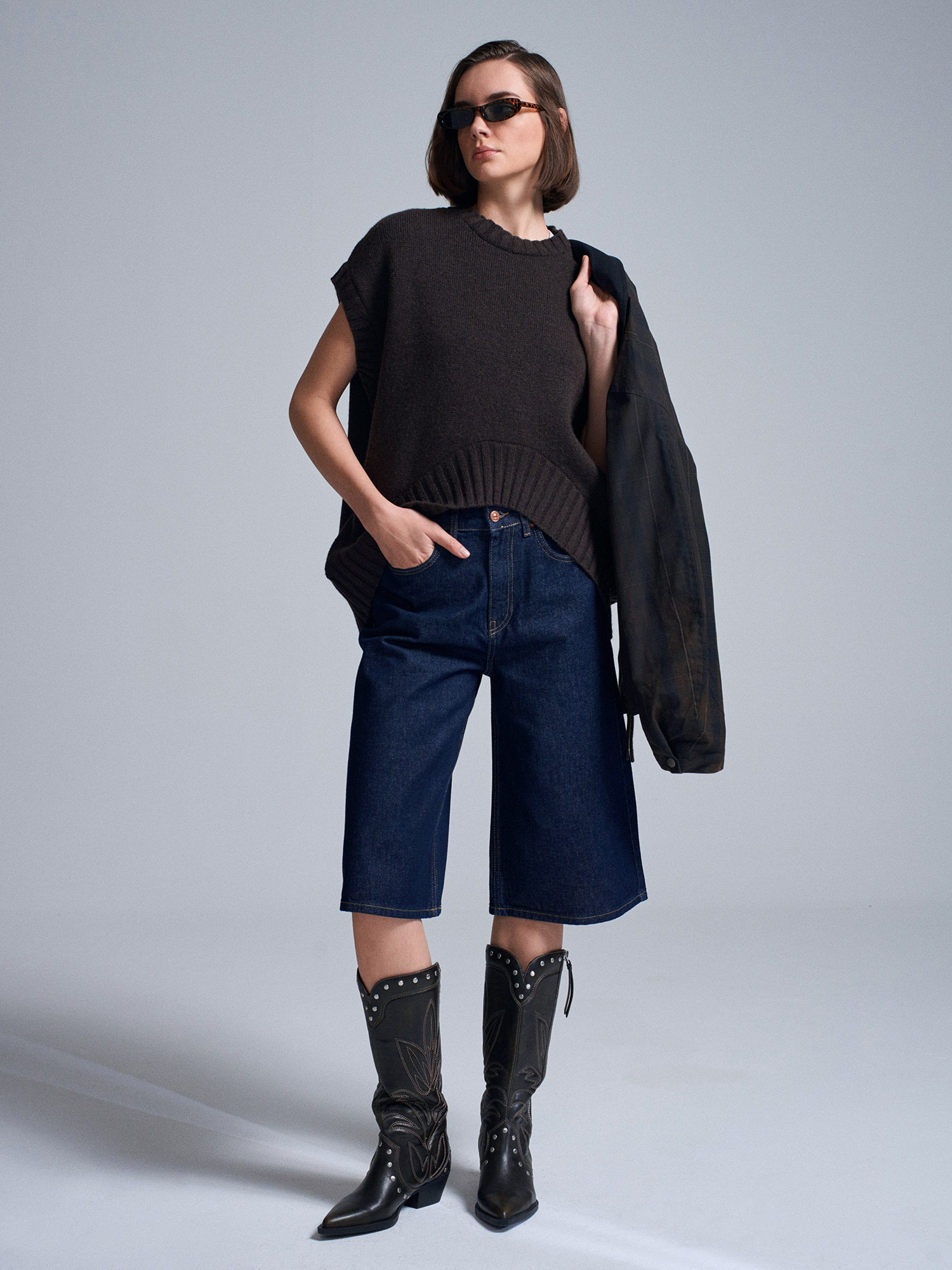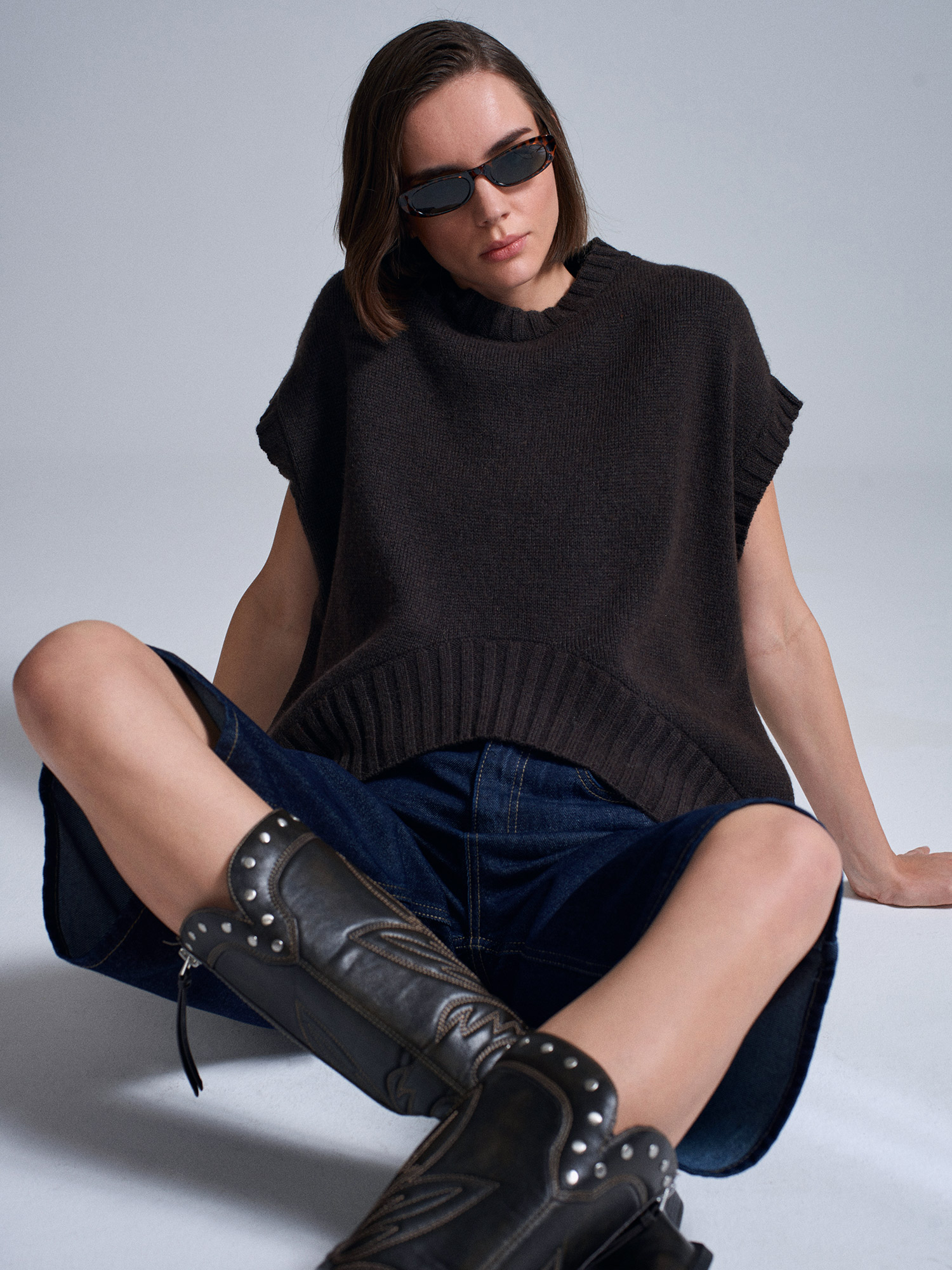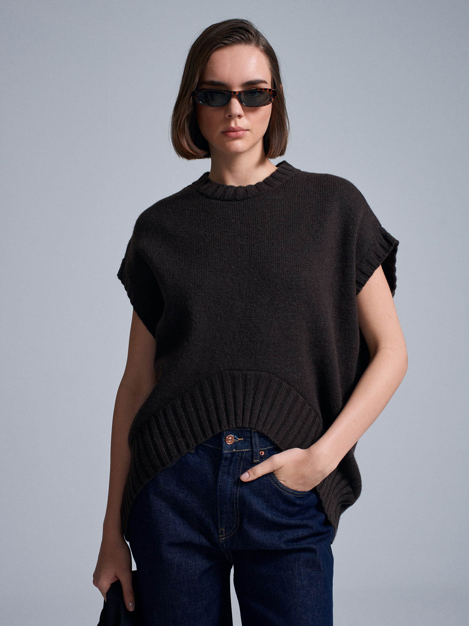 10839 Yün Karışımlı Oversize Süveter-Kahve
