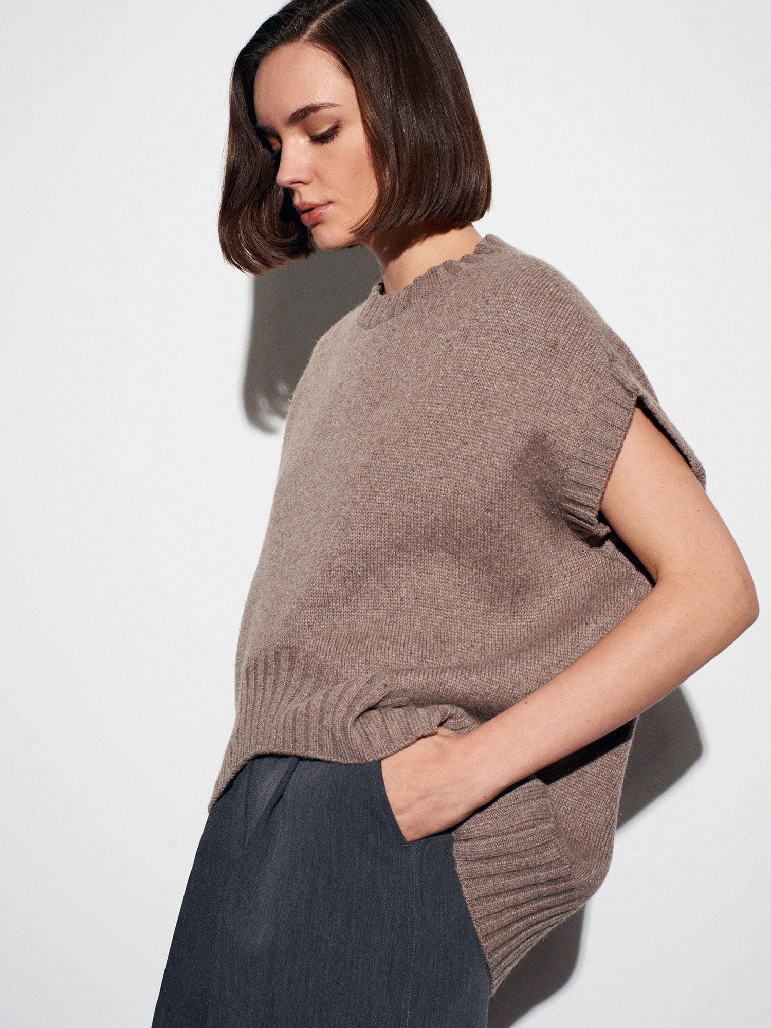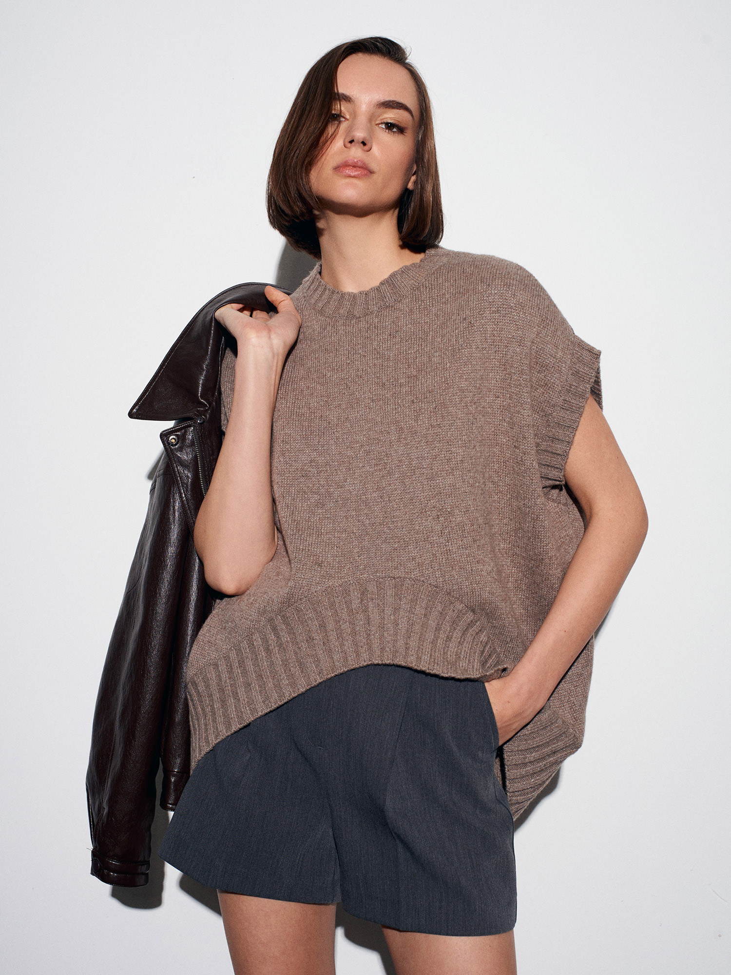 10839 Yün Karışımlı Oversize Süveter-Vizon