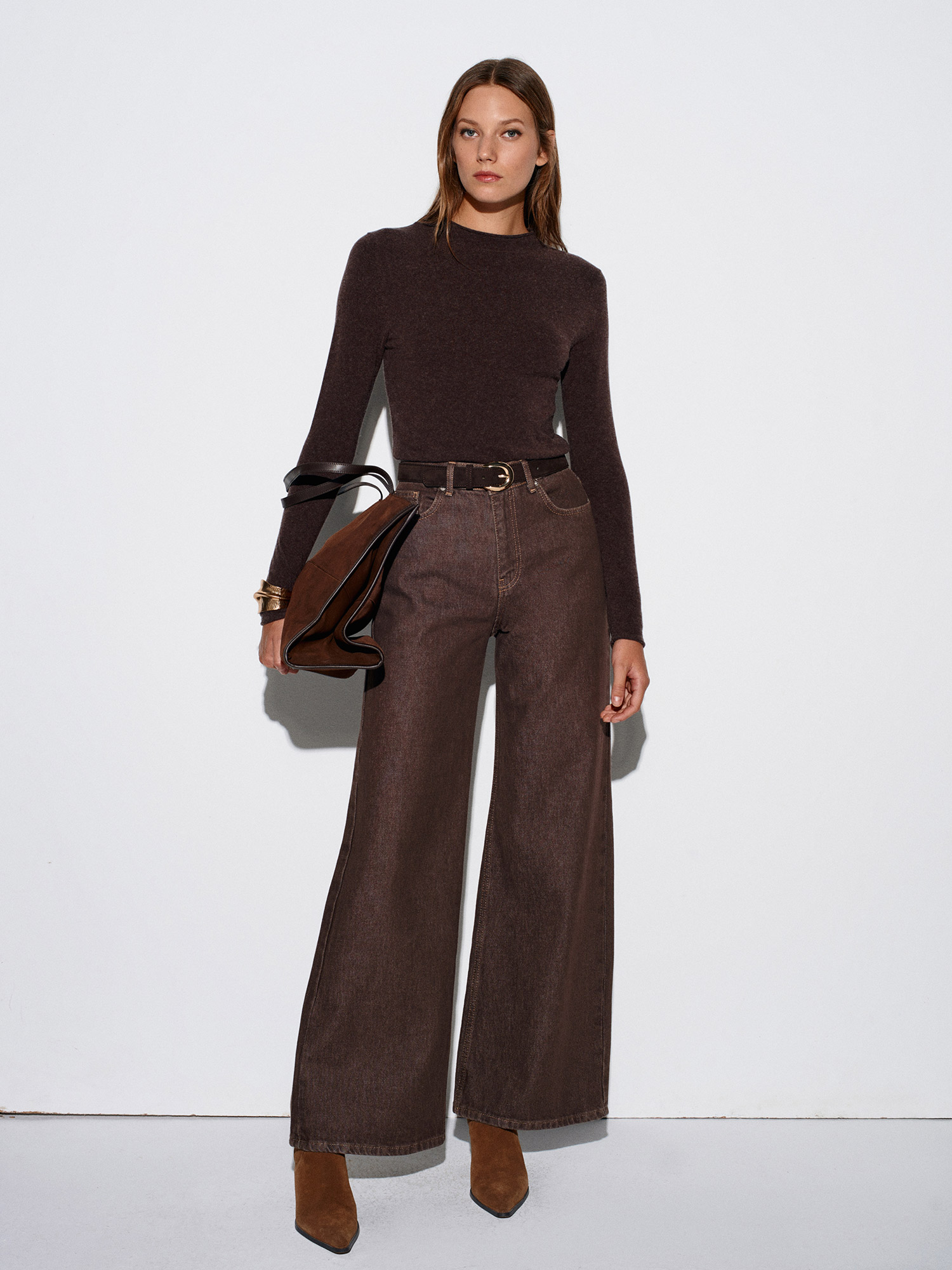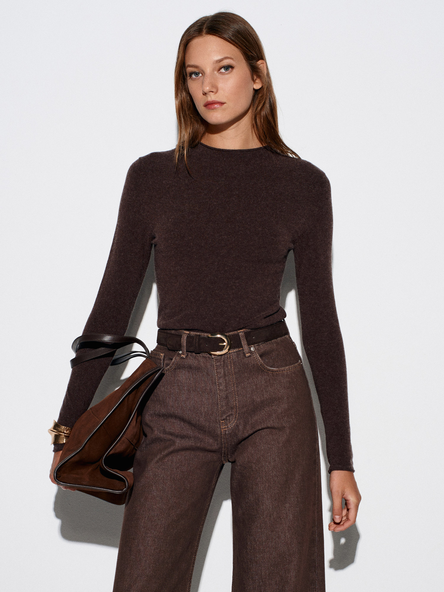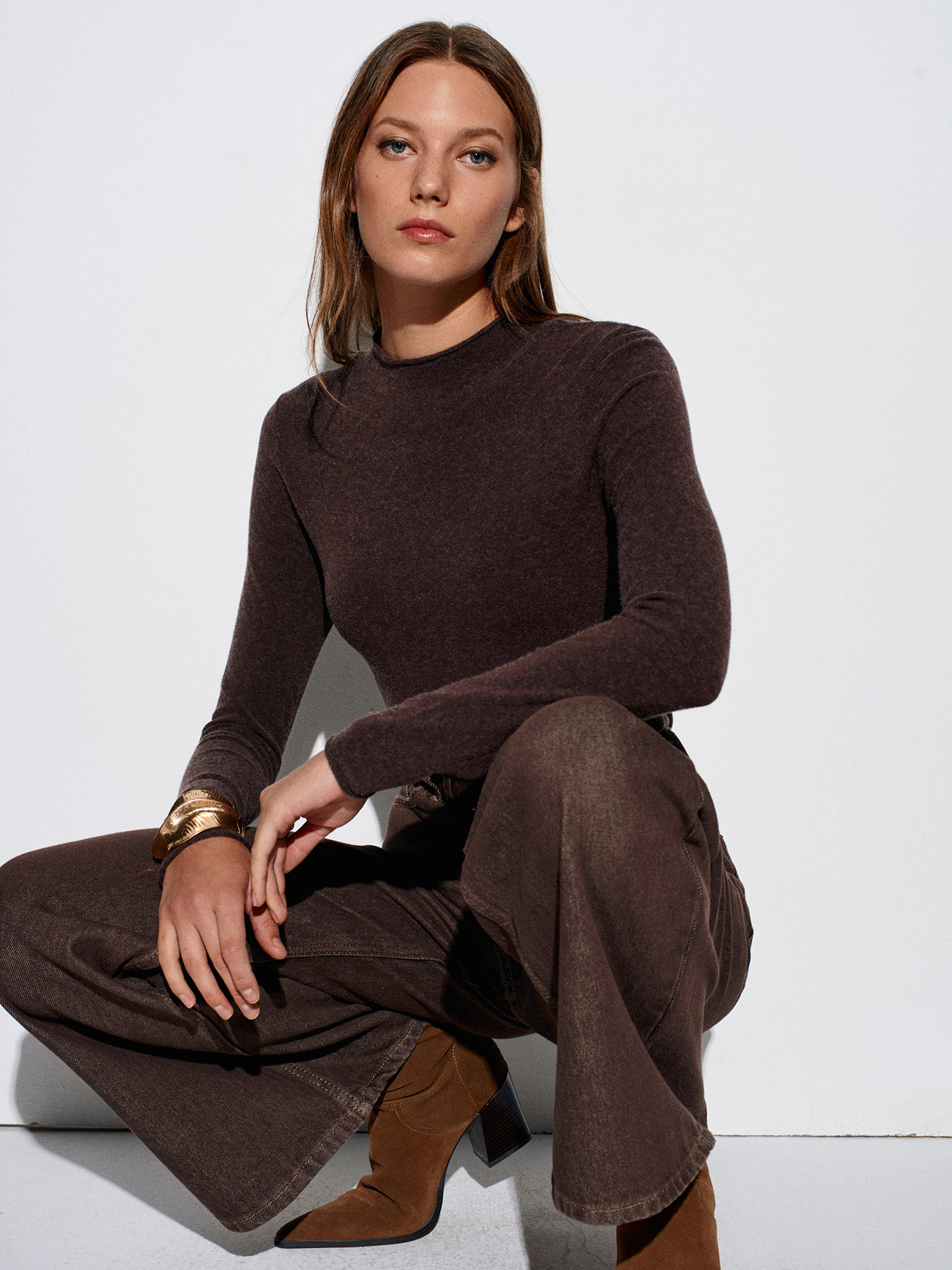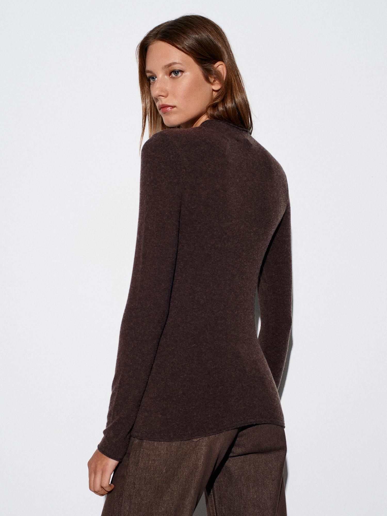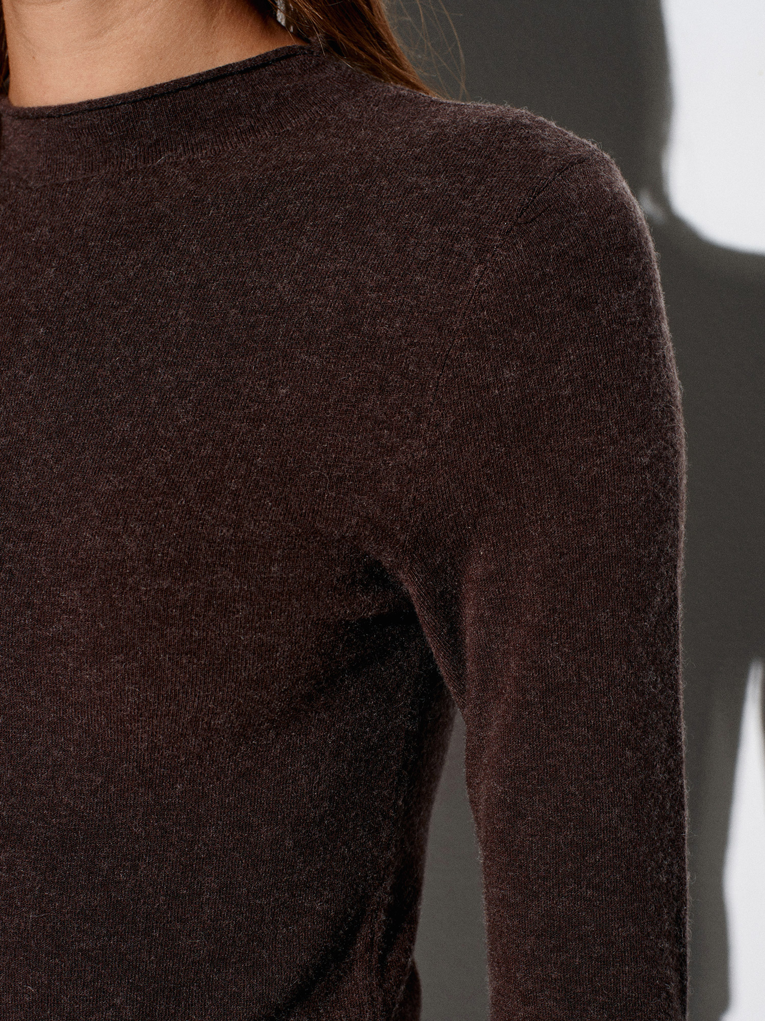 10841 Dik Yaka Kaşmir Karışımlı Triko Kazak-Kahve M.