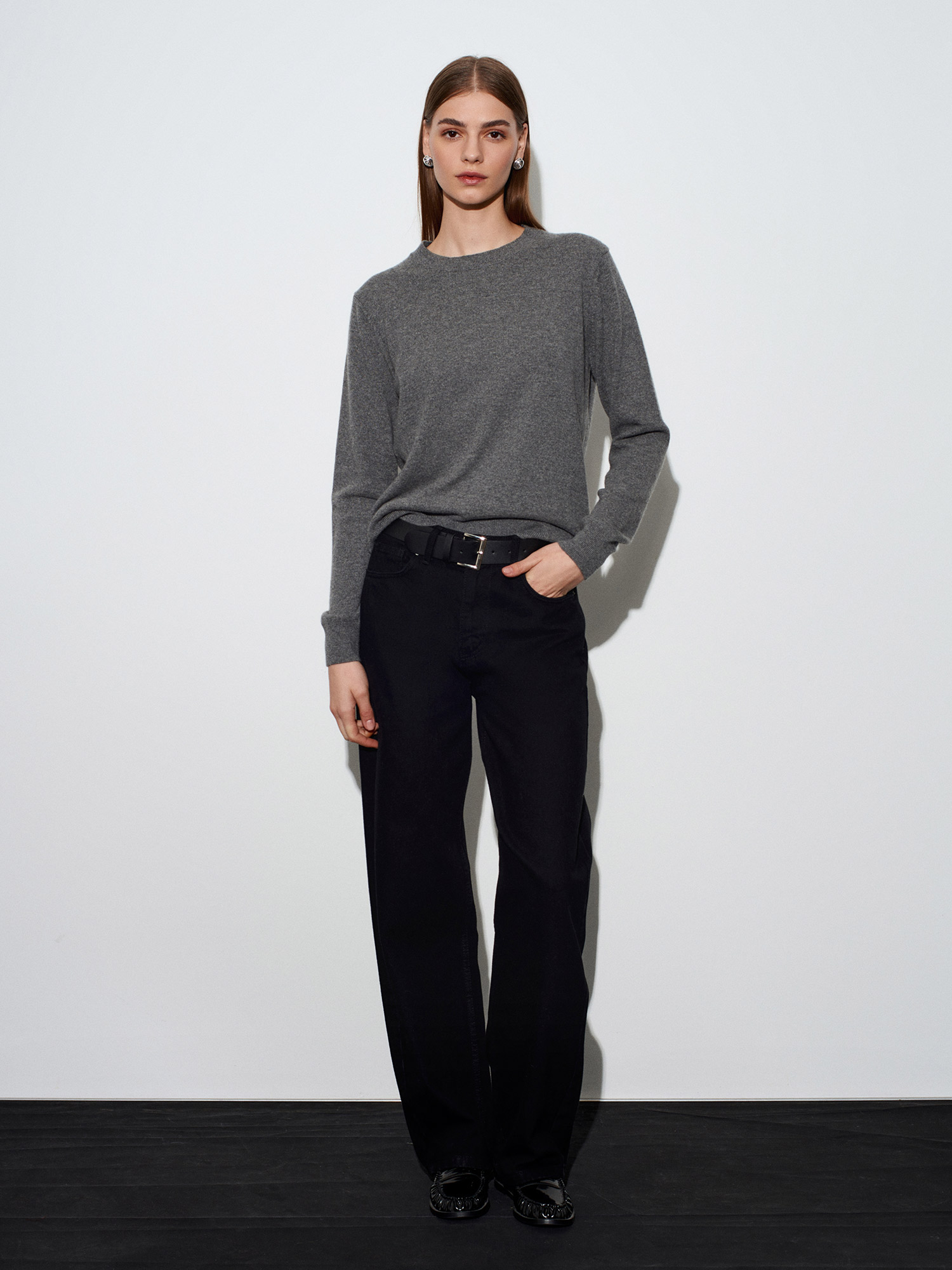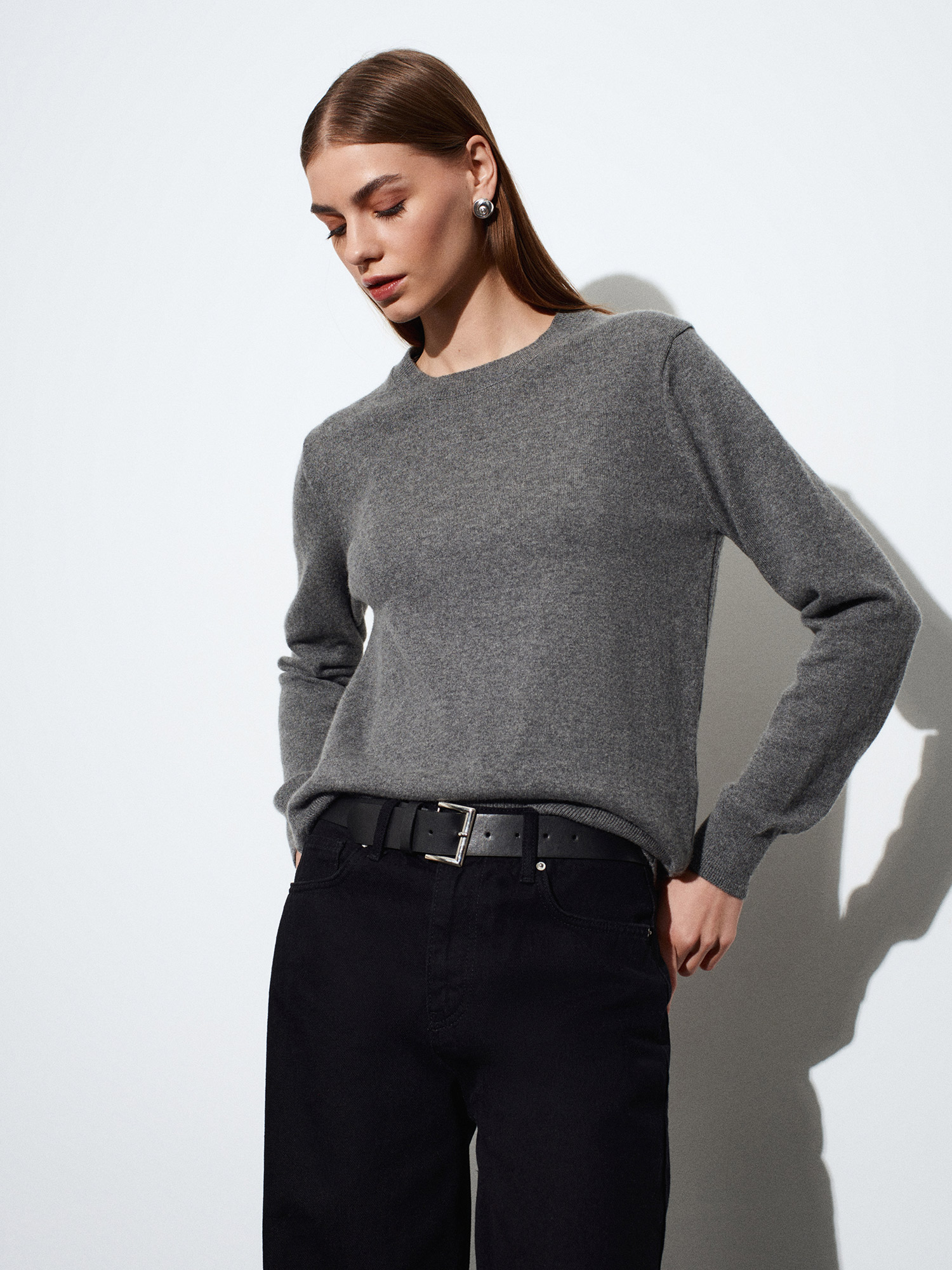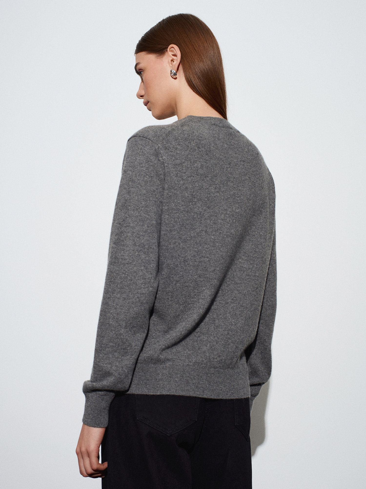 10847 %100 Kaşmir Bisiklet Yaka Kazak-Füme M.