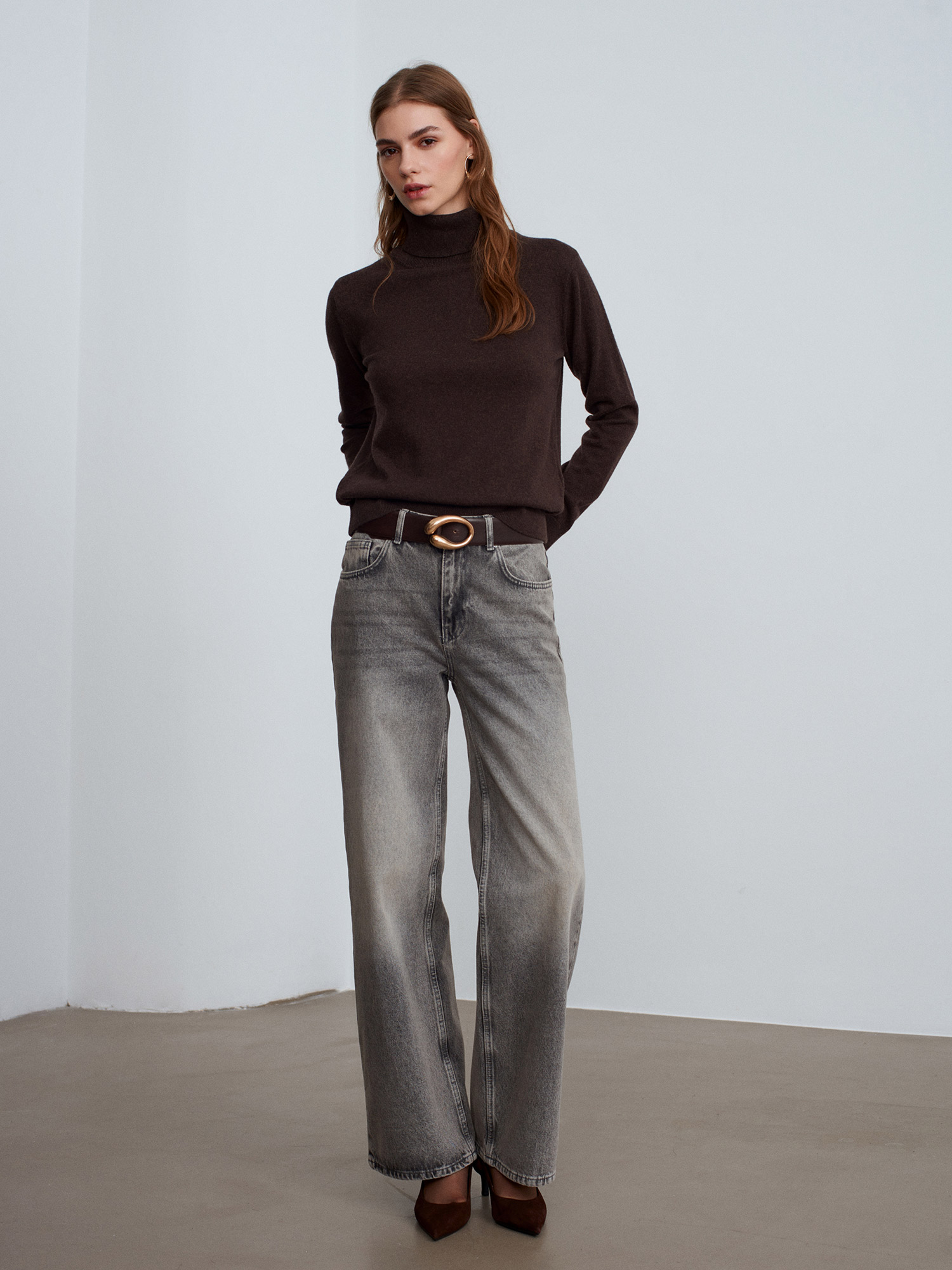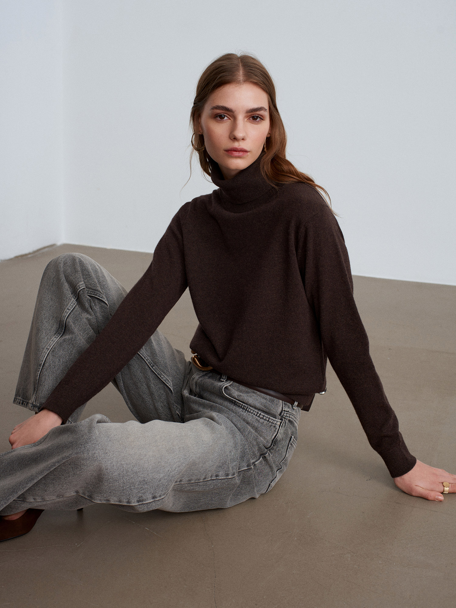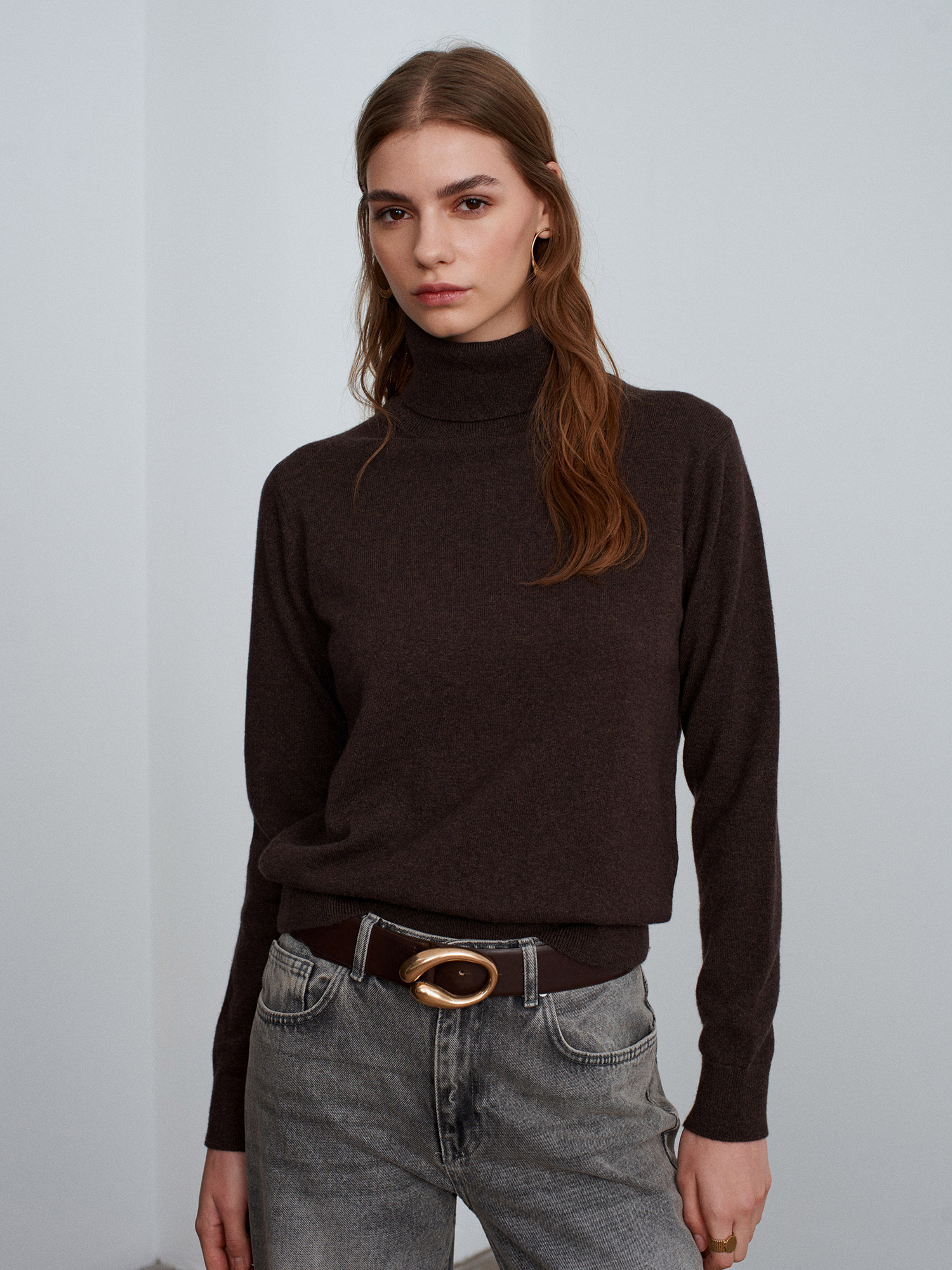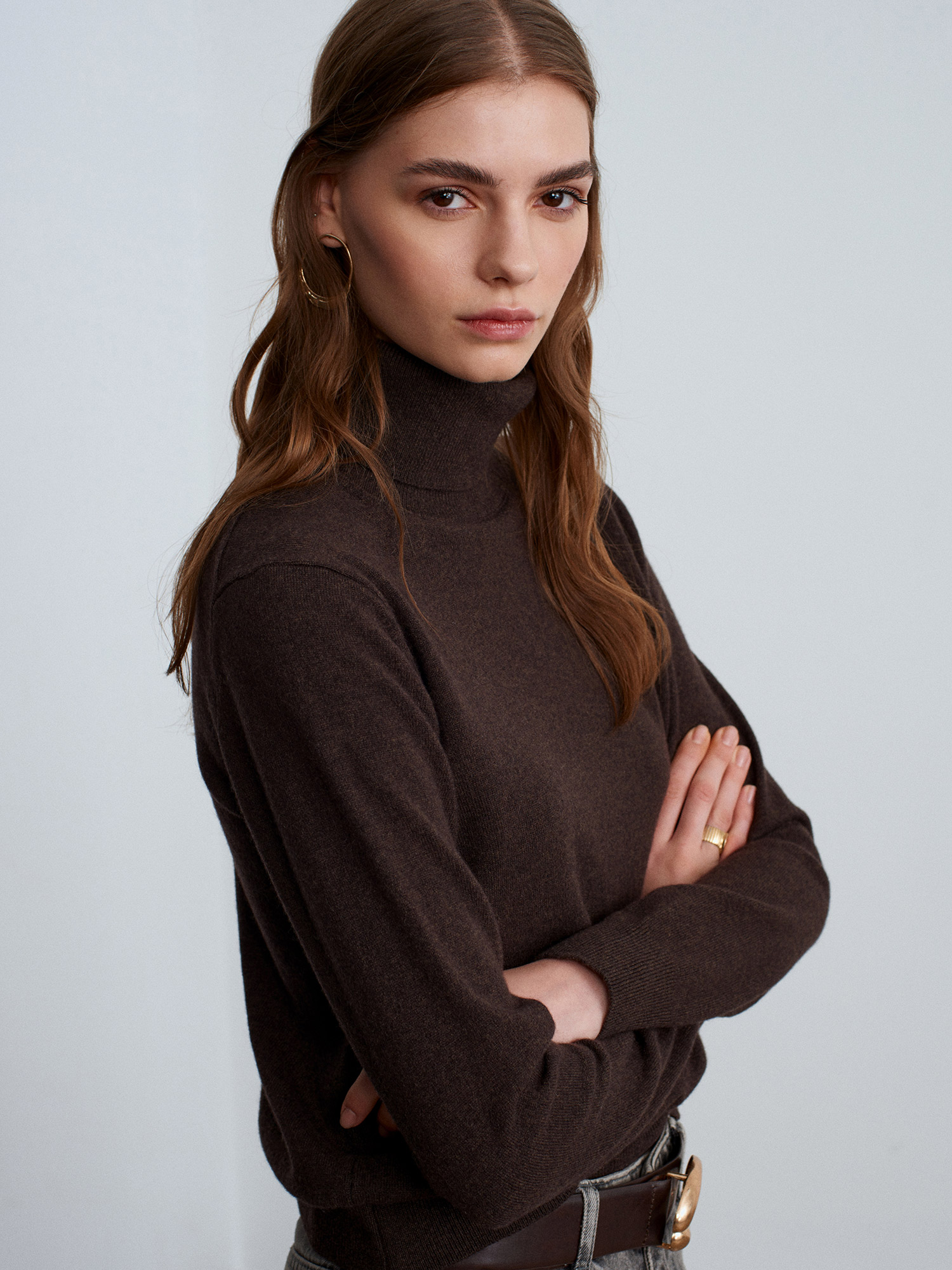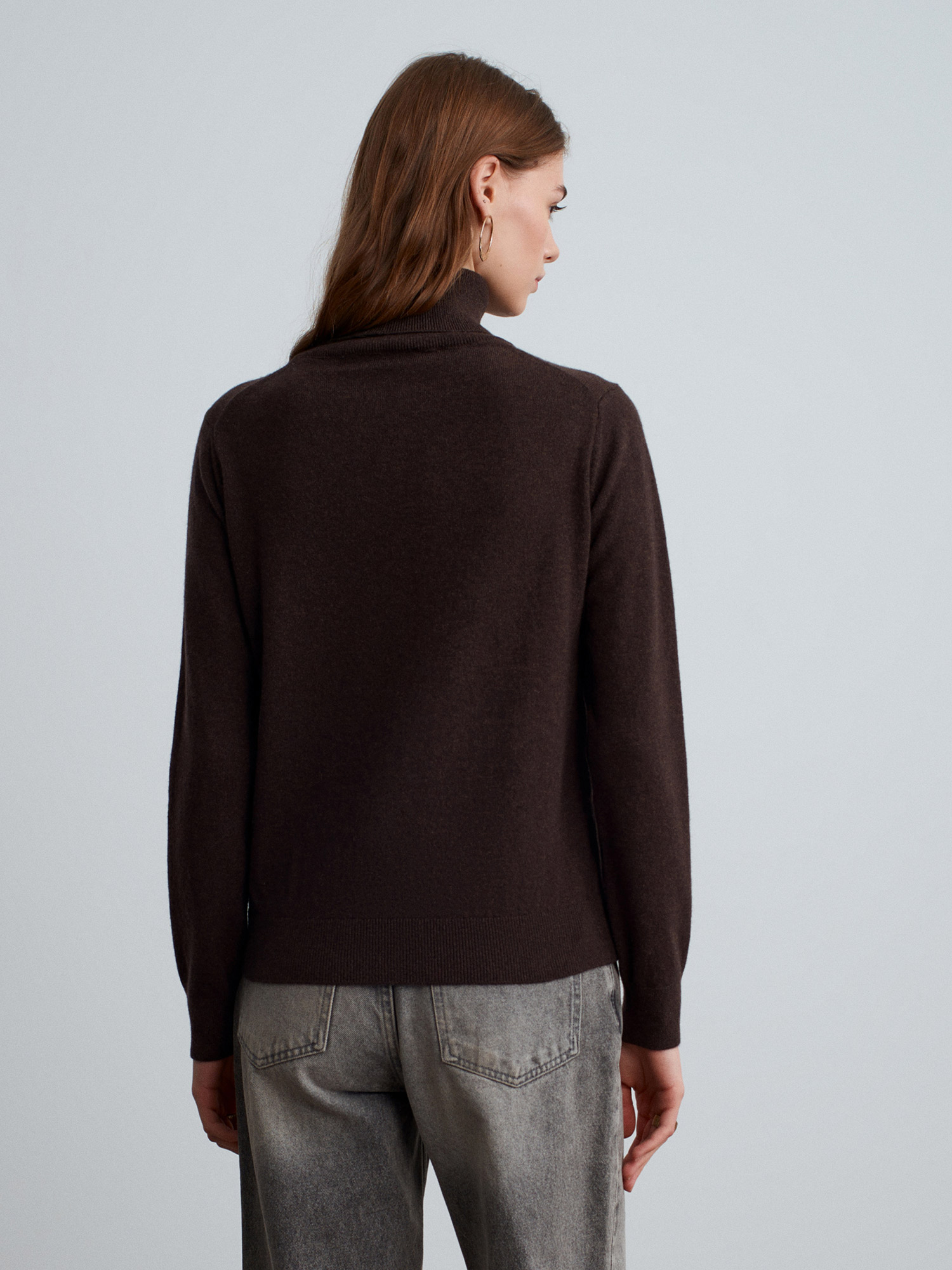 10848 %100 Kaşmir Balıkçı Yaka Kazak-Kahve M.