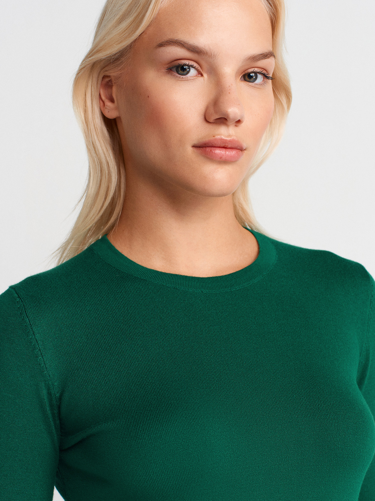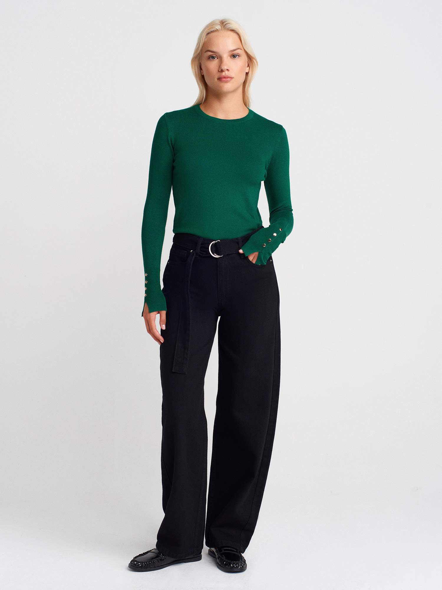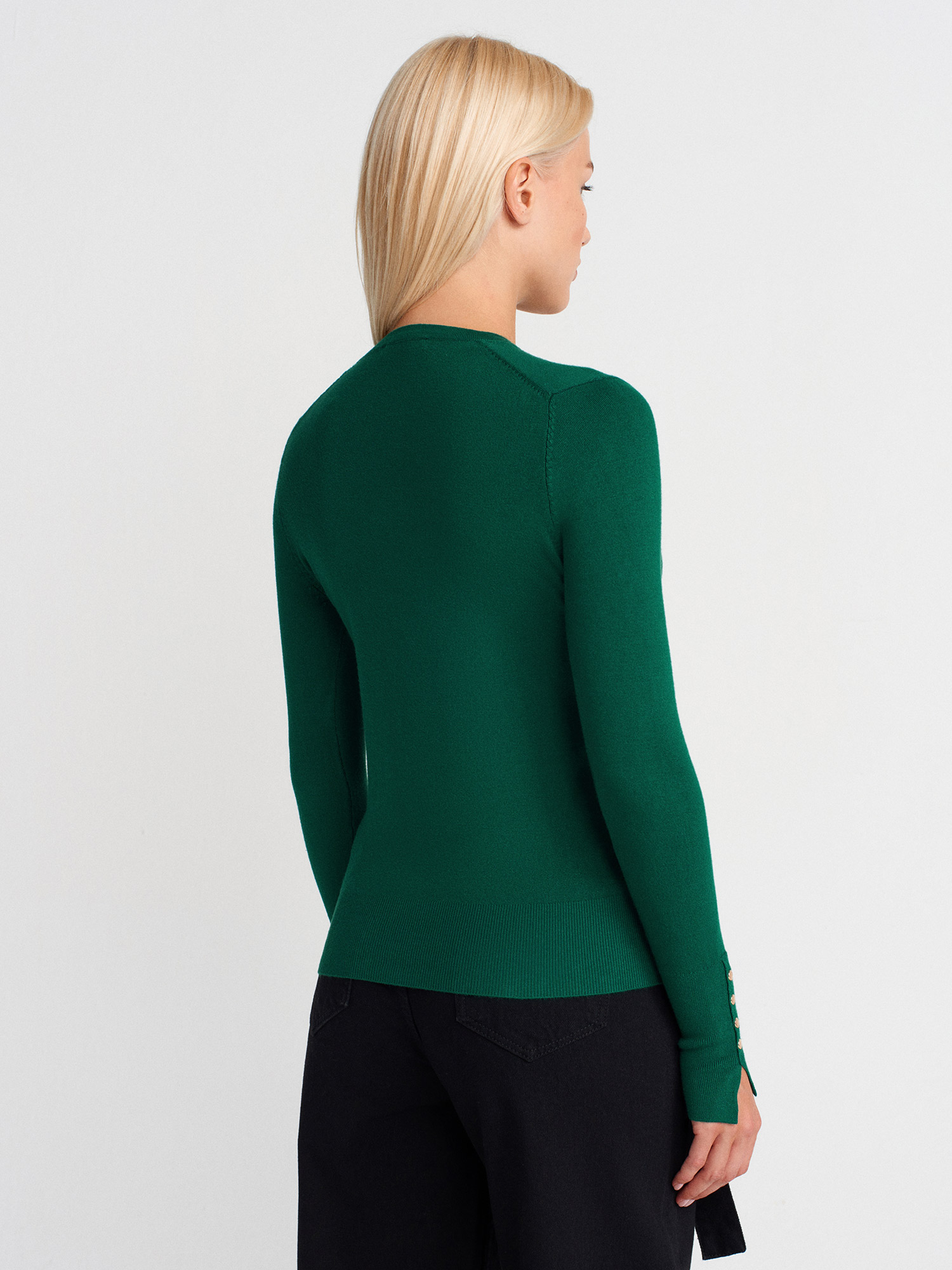 1267 Bisiklet Yaka Kol Ortası Droplu Kazak-Zümrüt