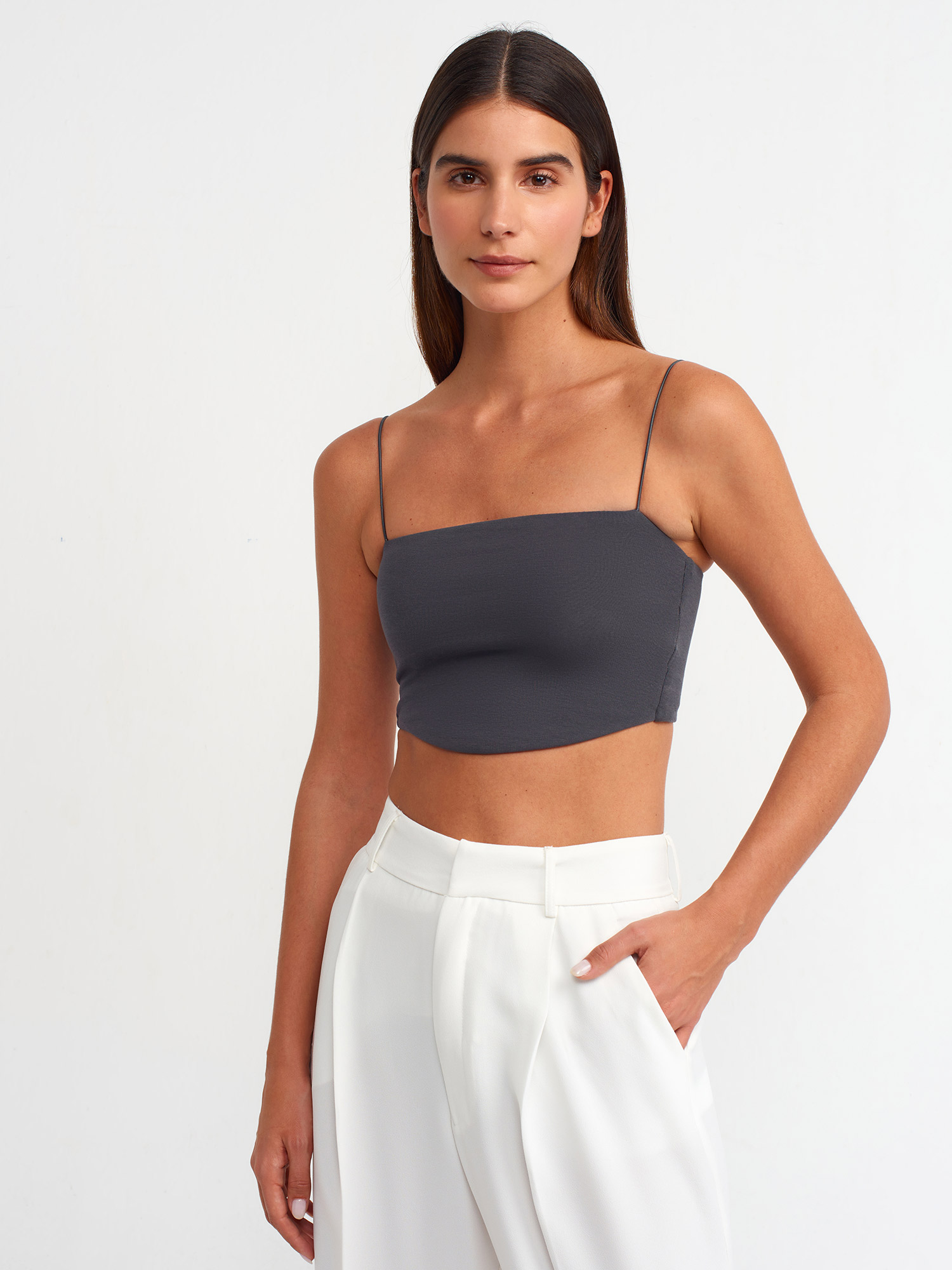 20793 Askılı Crop Top-Antrasit