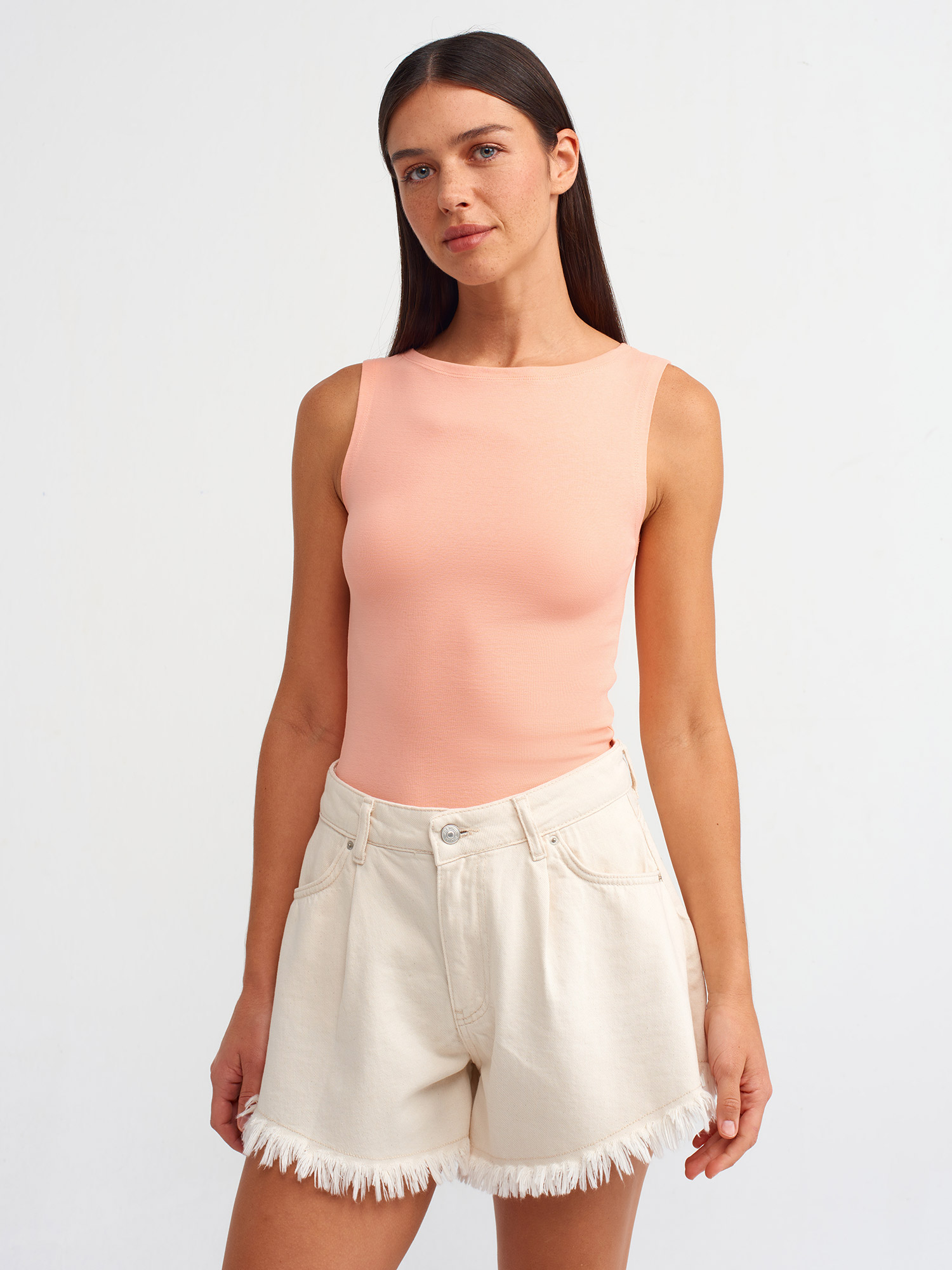 20868 Kayık Yaka Kolsuz Top-Şeftali