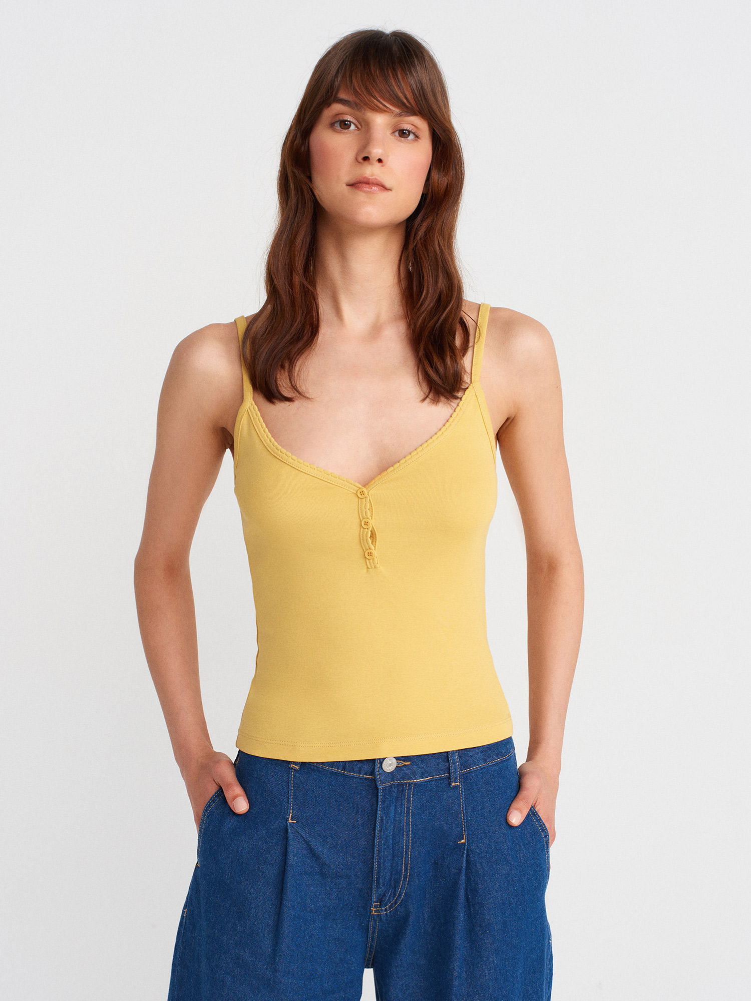 21008 Düğmeli Askılı Top-Hardal