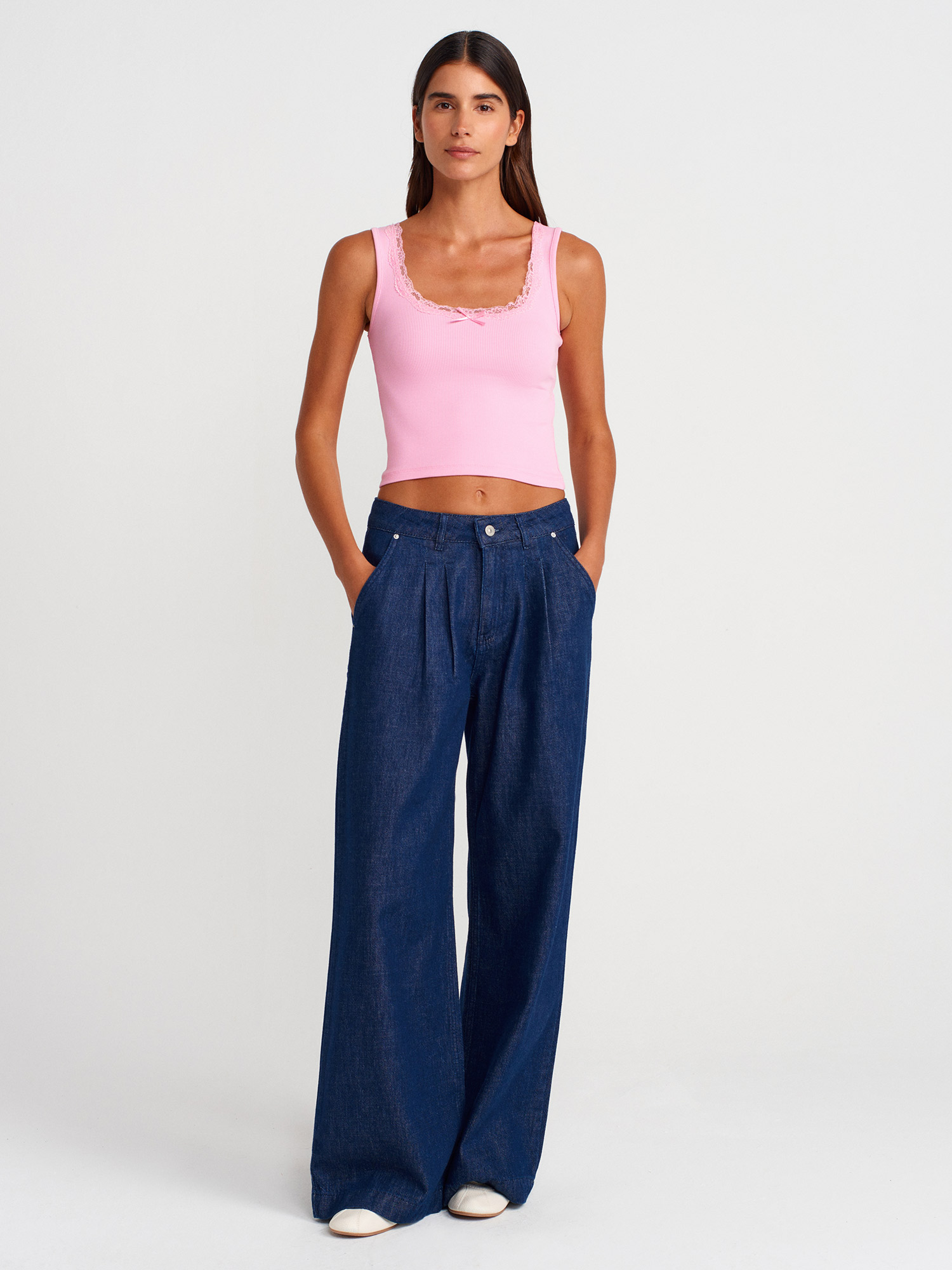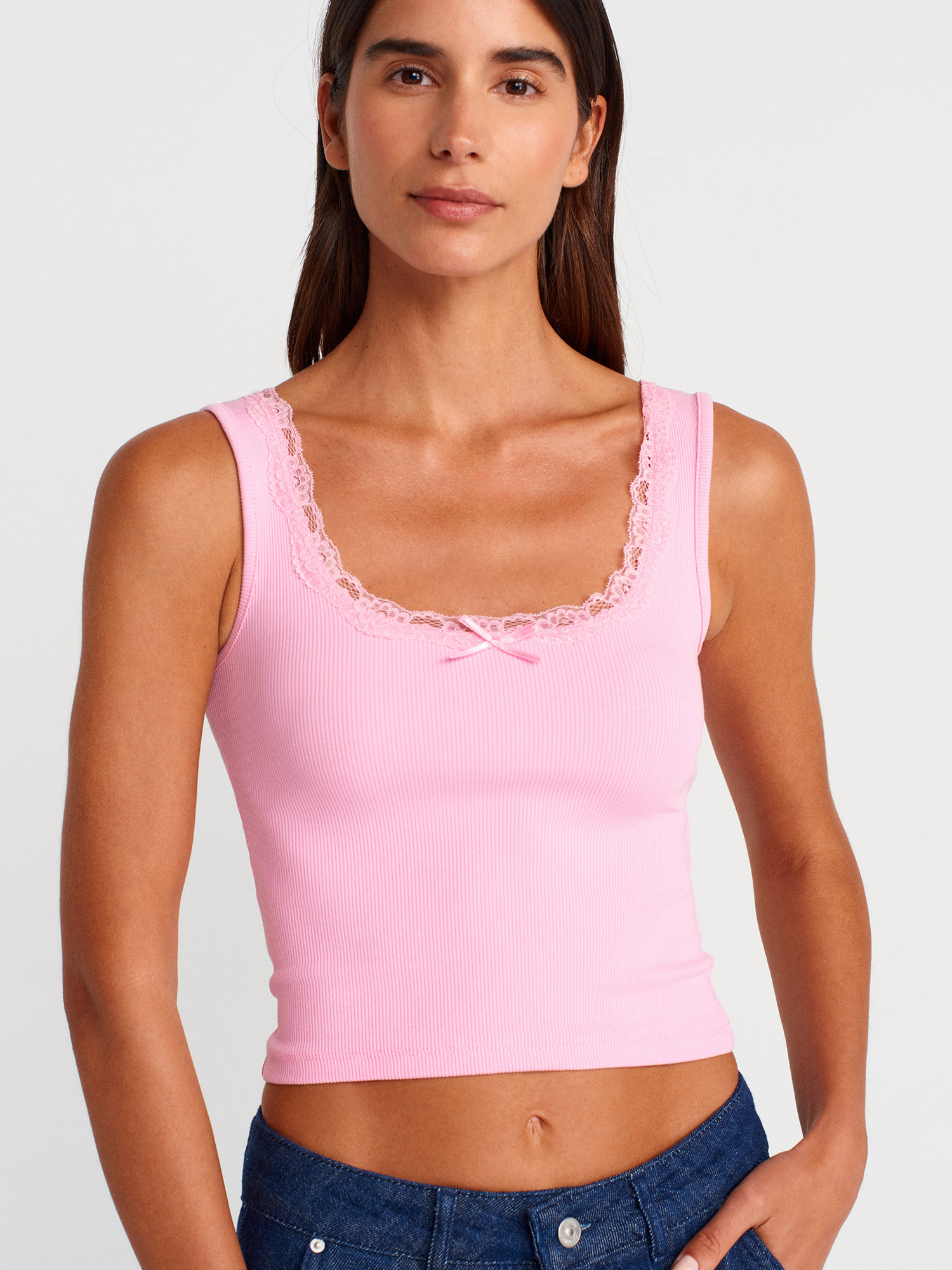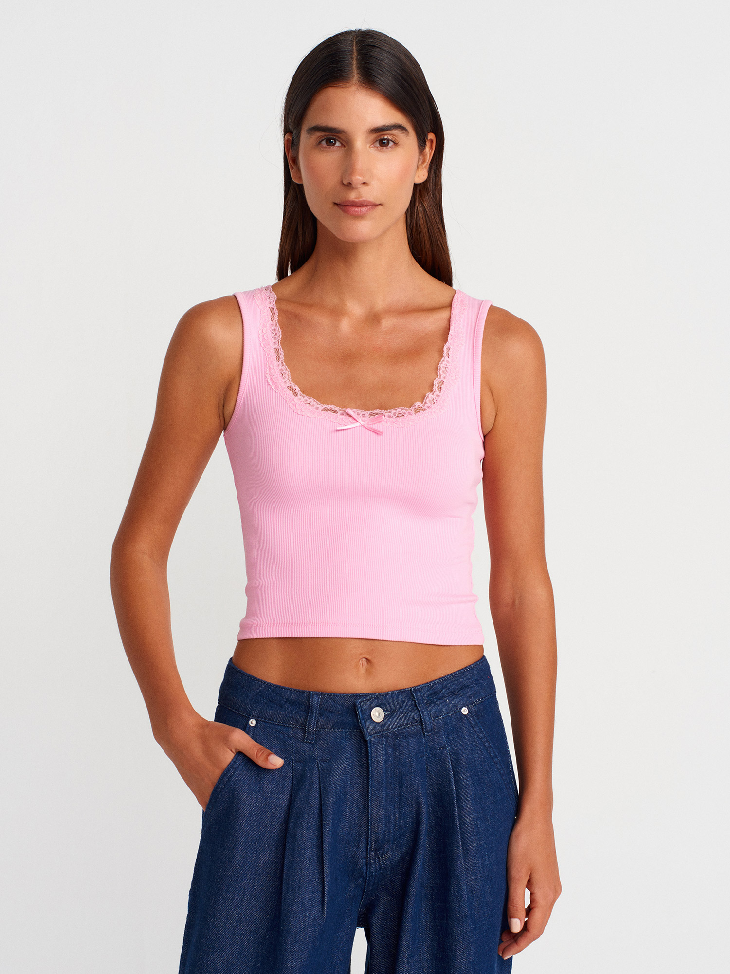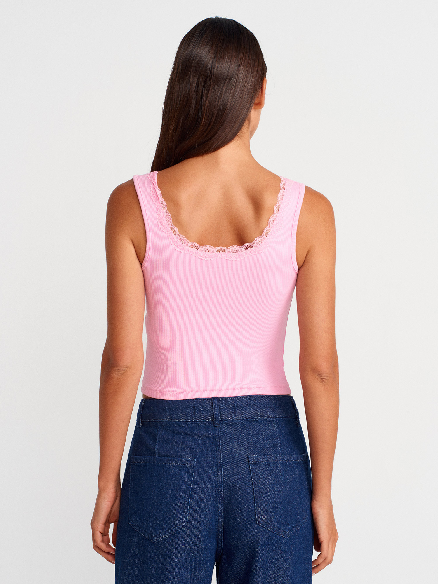 21035 Askılı Dantel Top-Açık Pembe