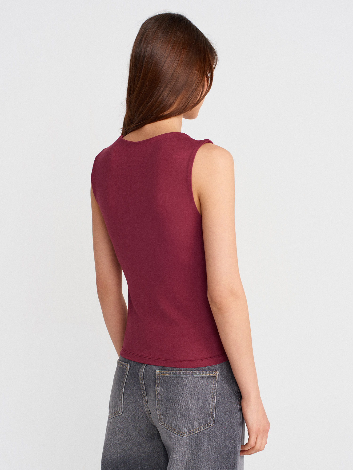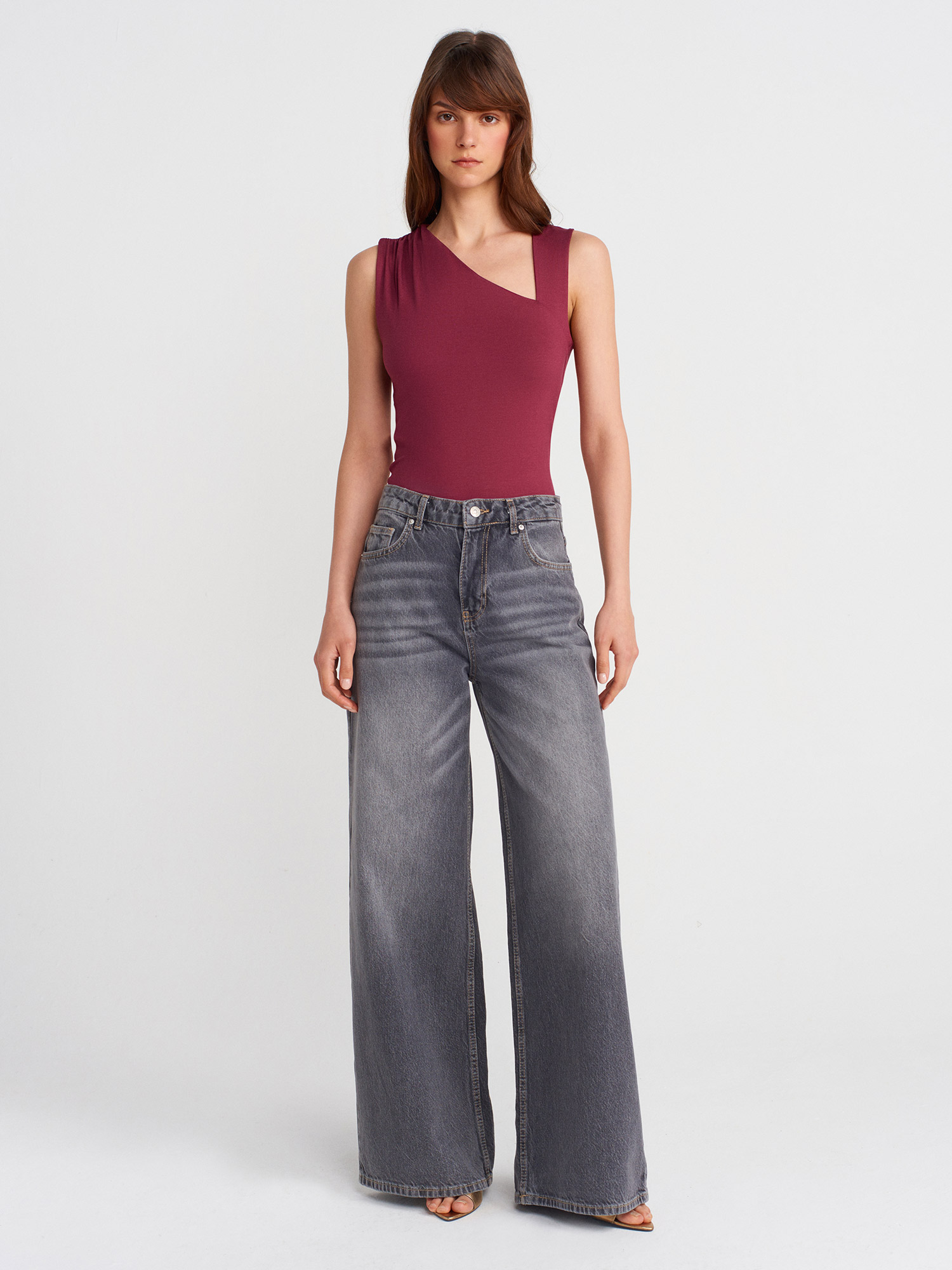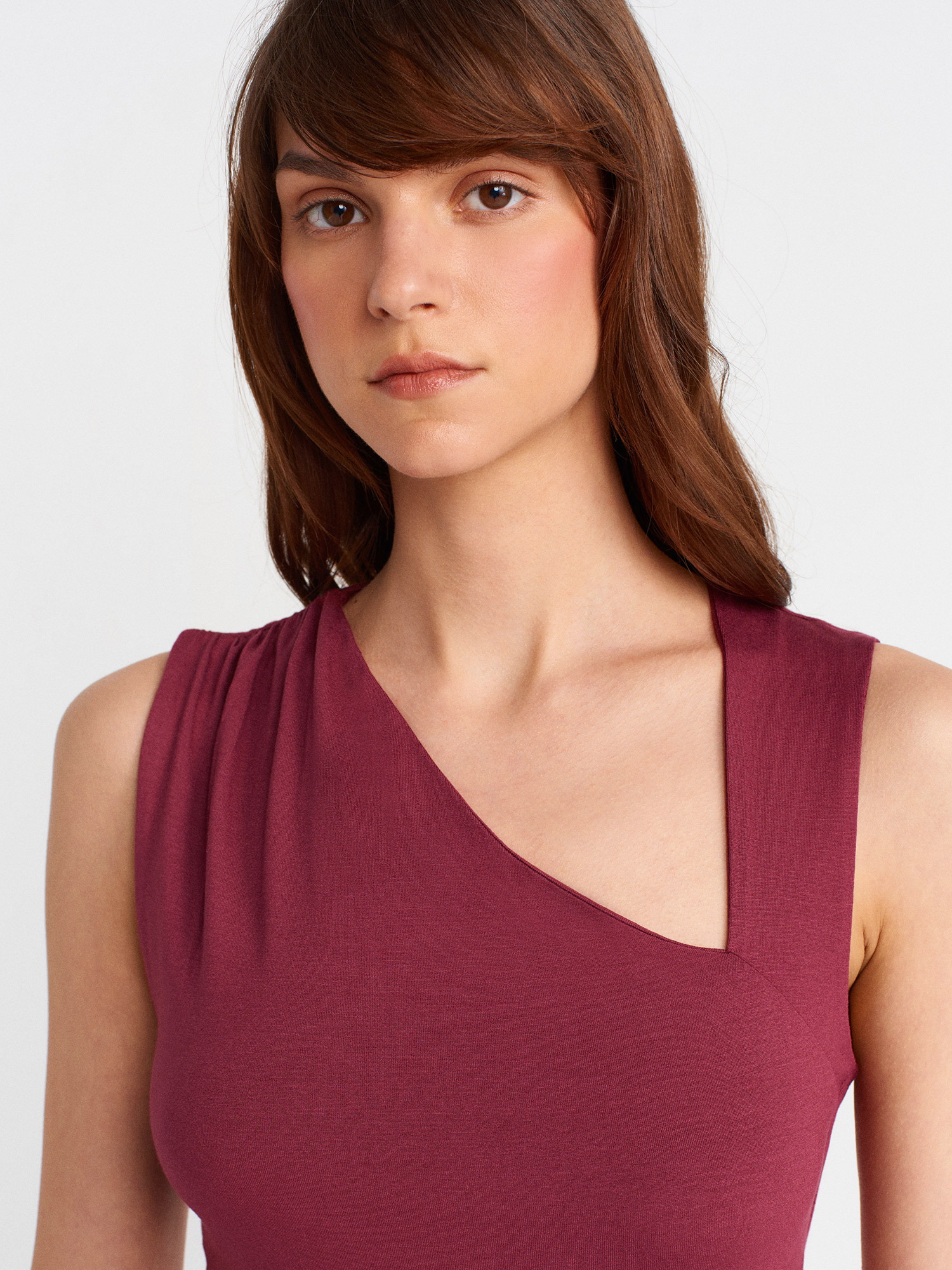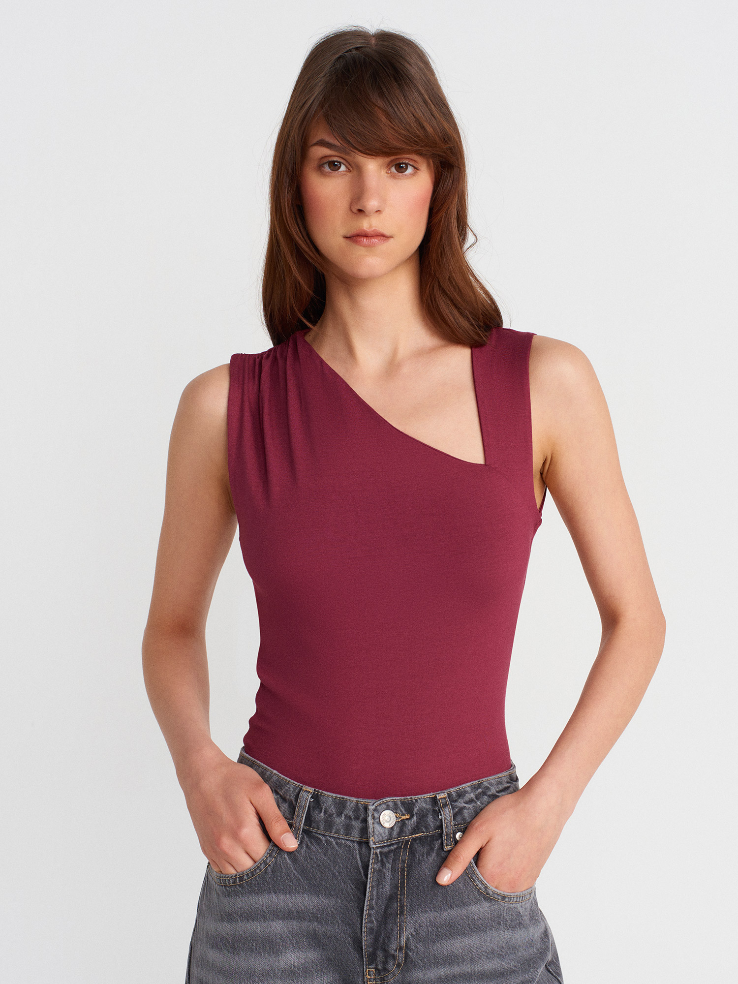 21038 Asimetrik Büzgülü Top-Açık Bordo