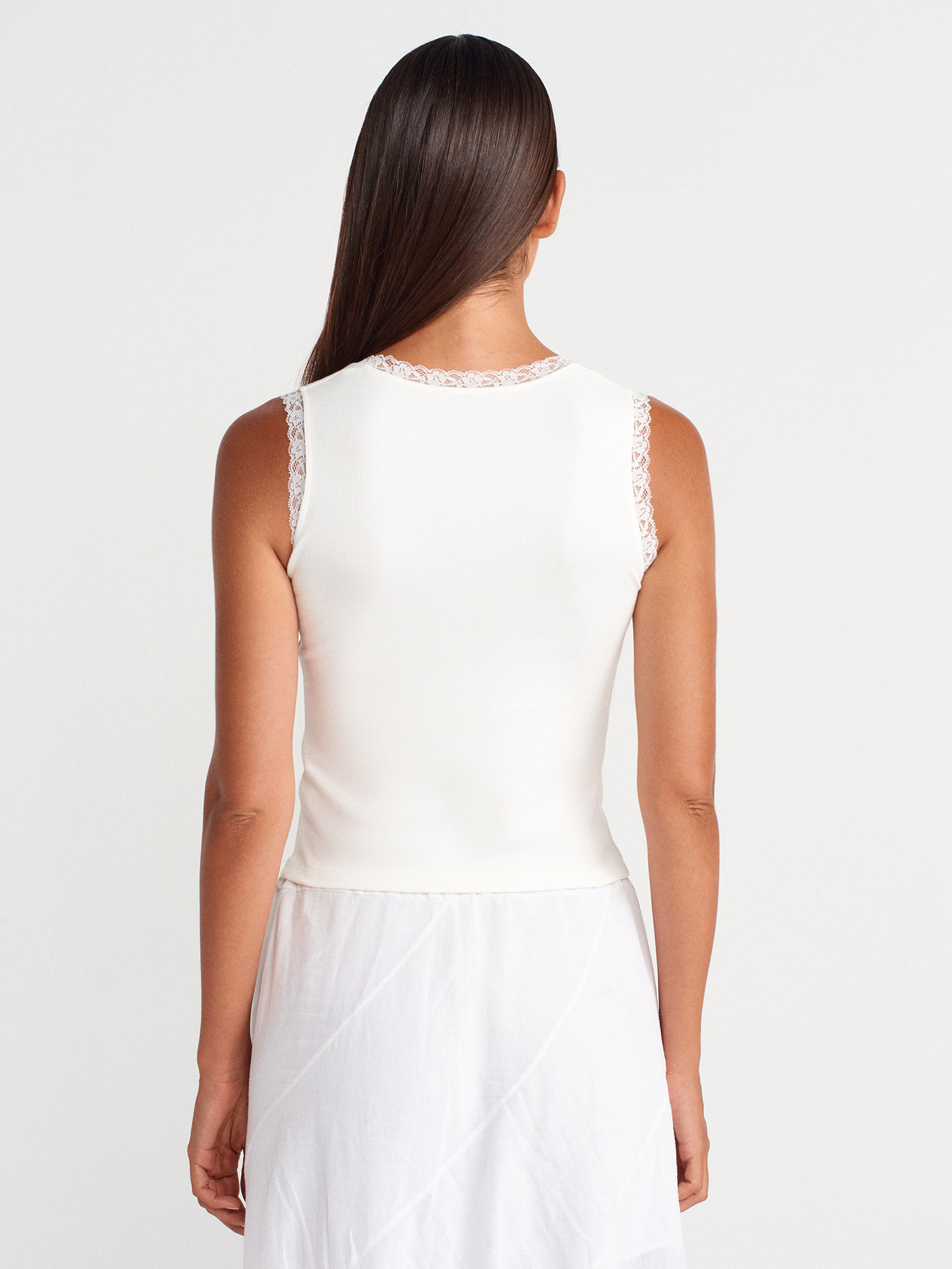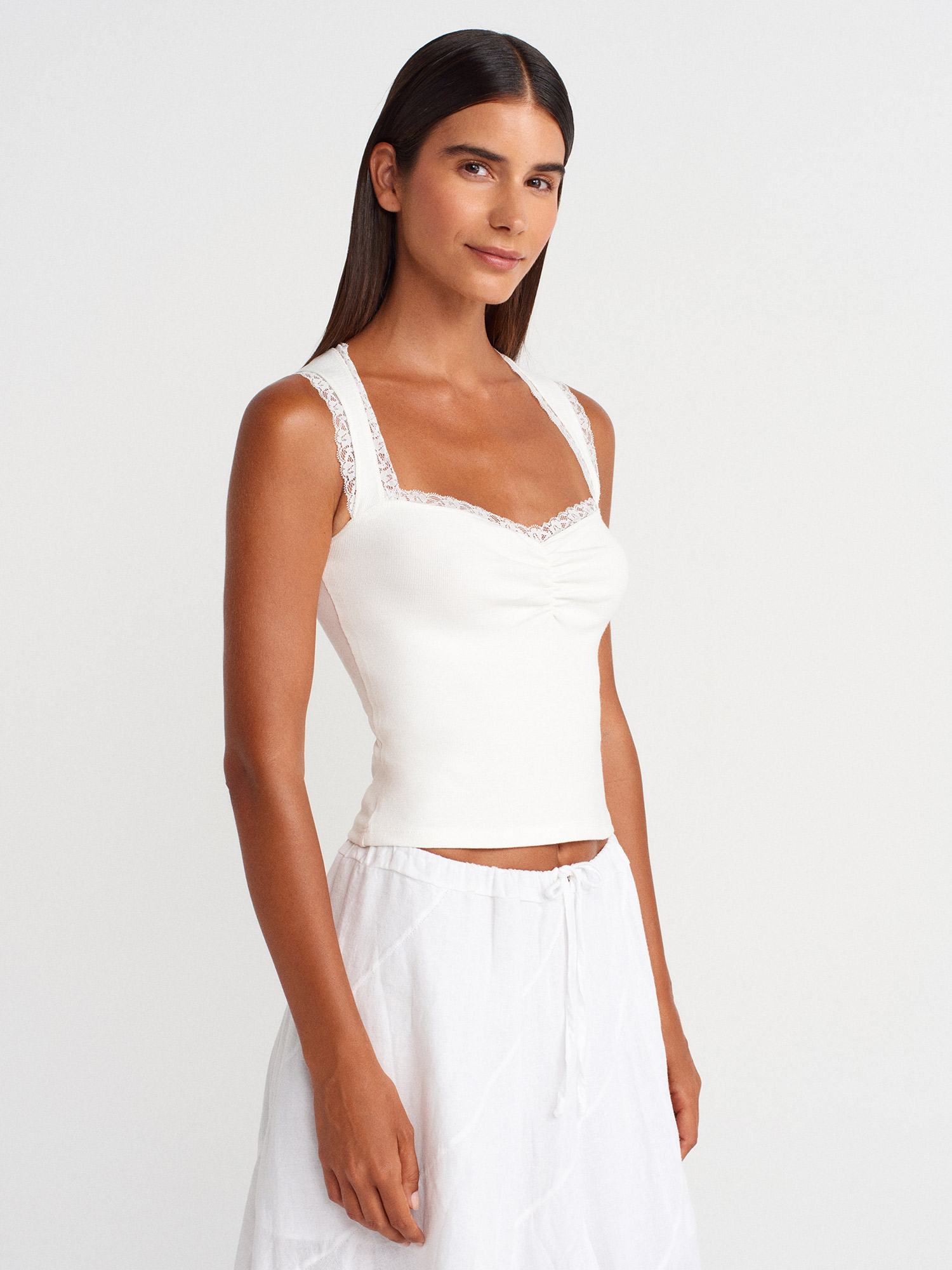 21042 Dantel Şeritli Büzgülü Top-Ekru