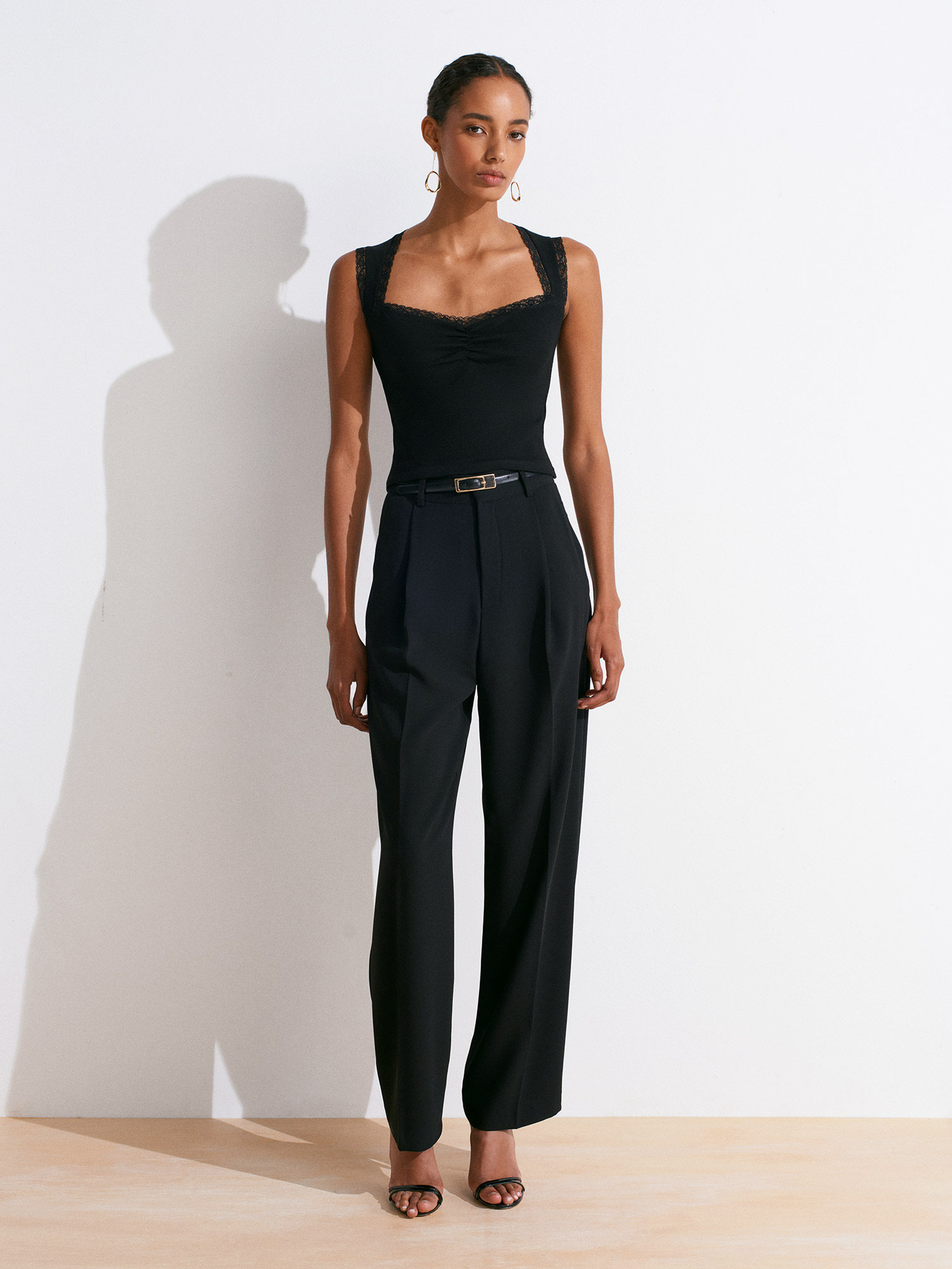 21042 Dantel Şeritli Büzgülü Top-Siyah