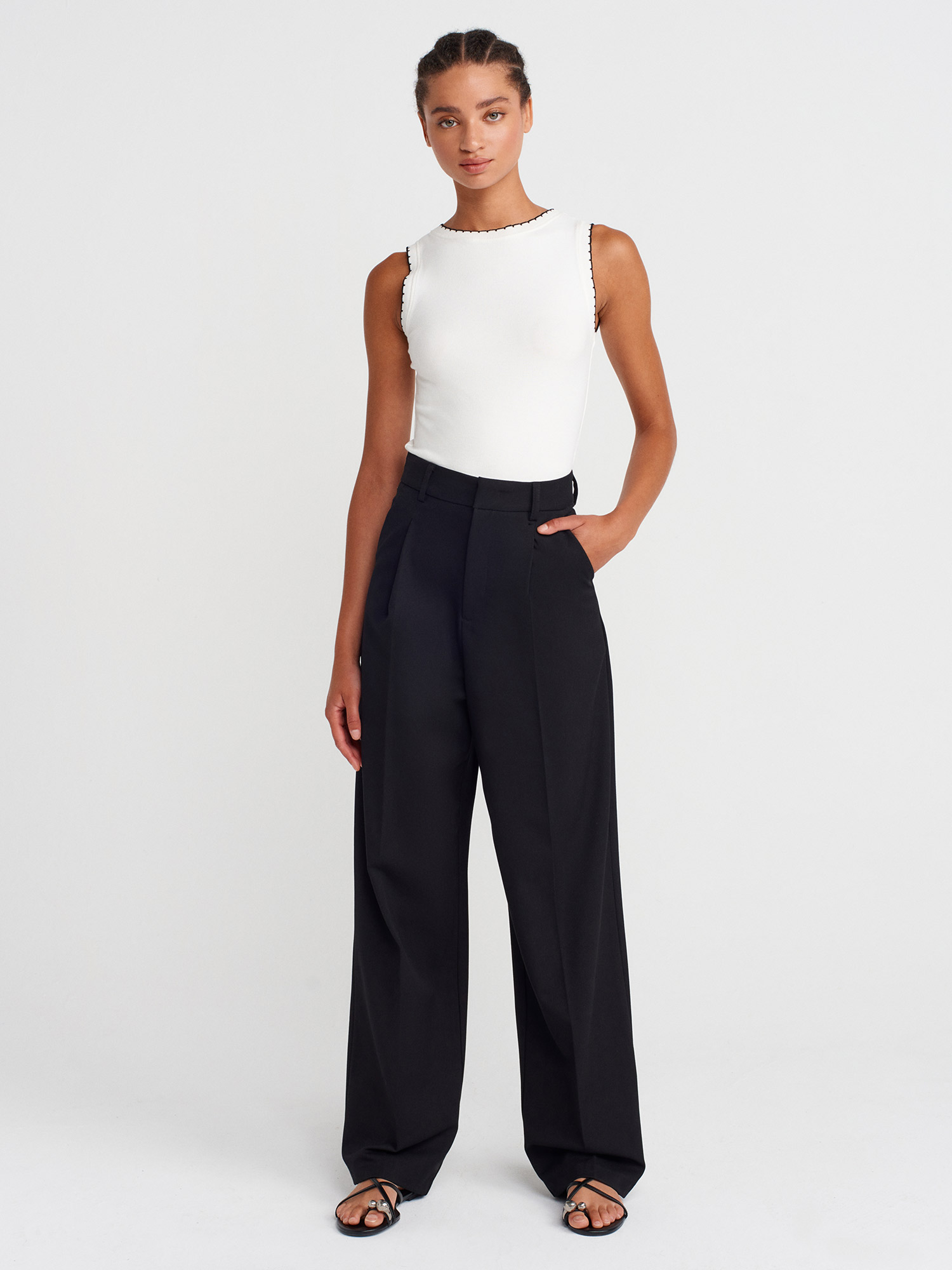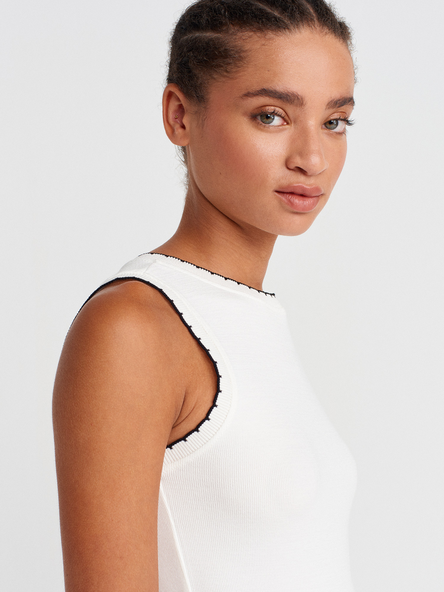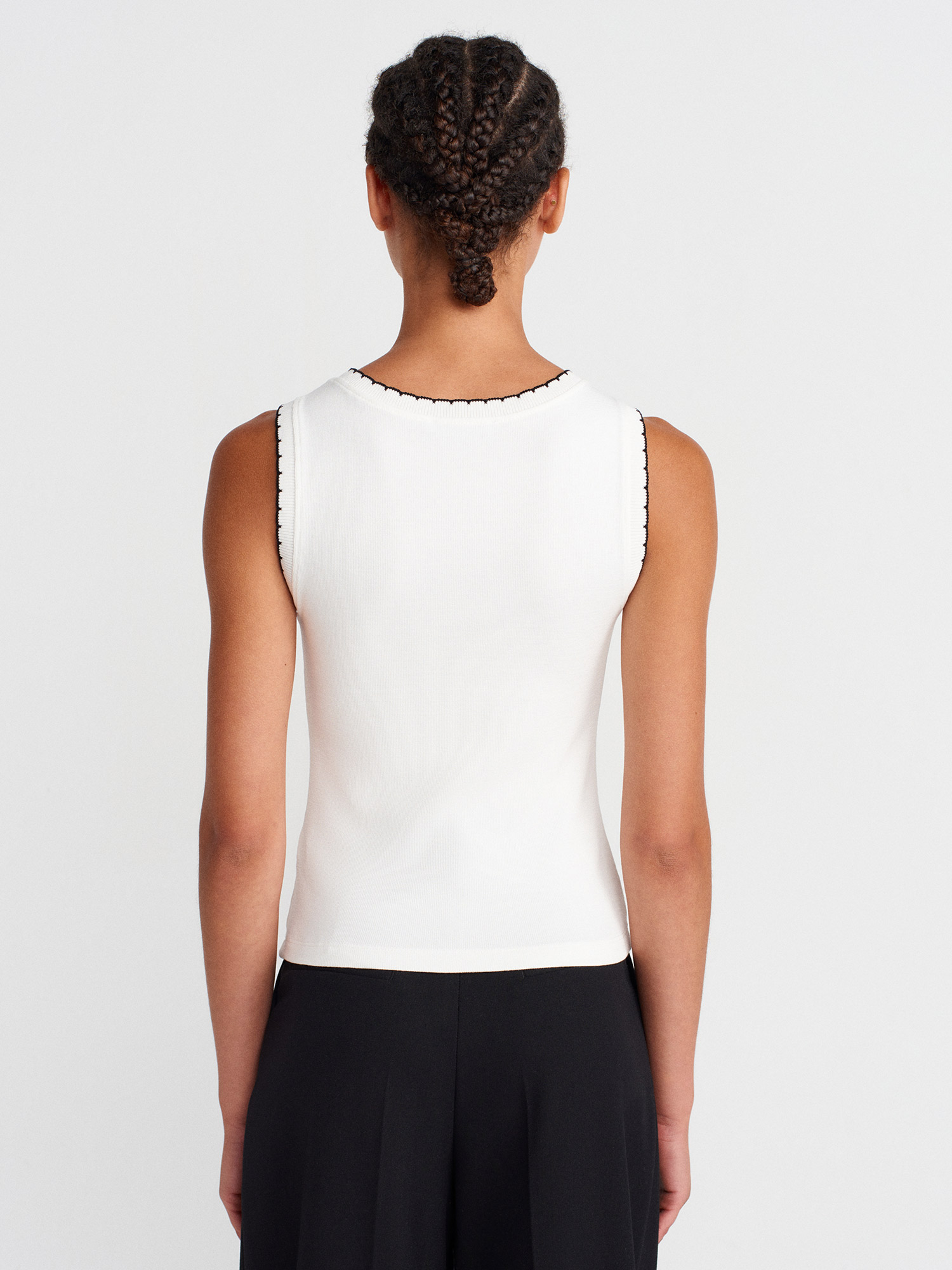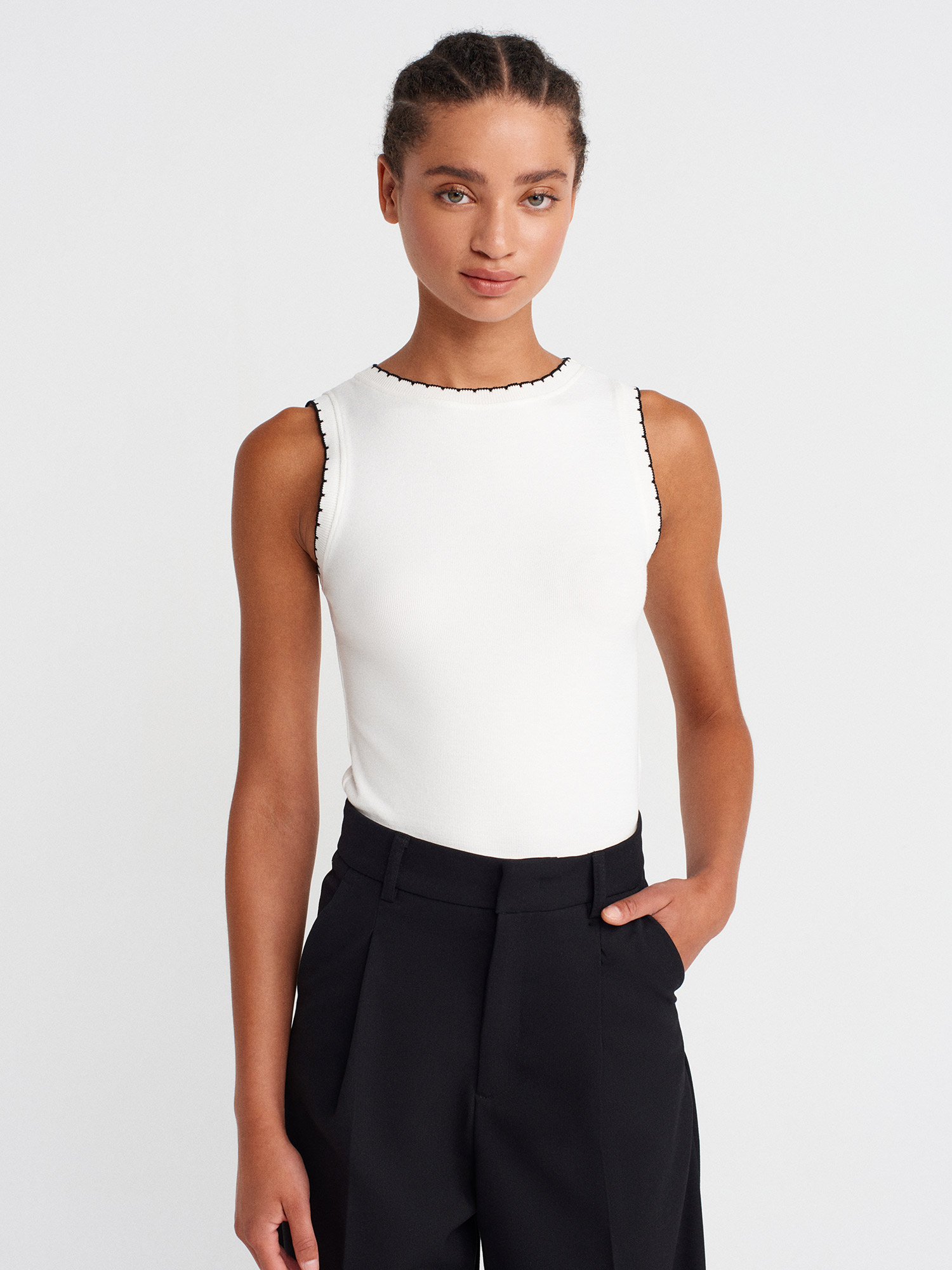 21043 Kontrast Detaylı Askılı Top-Ekru