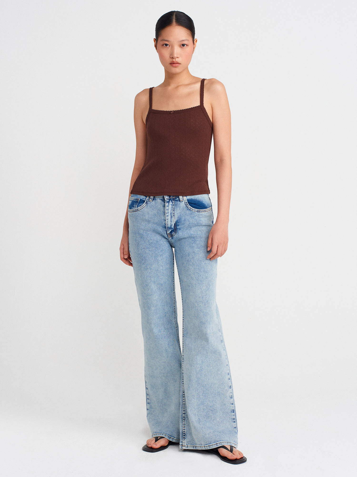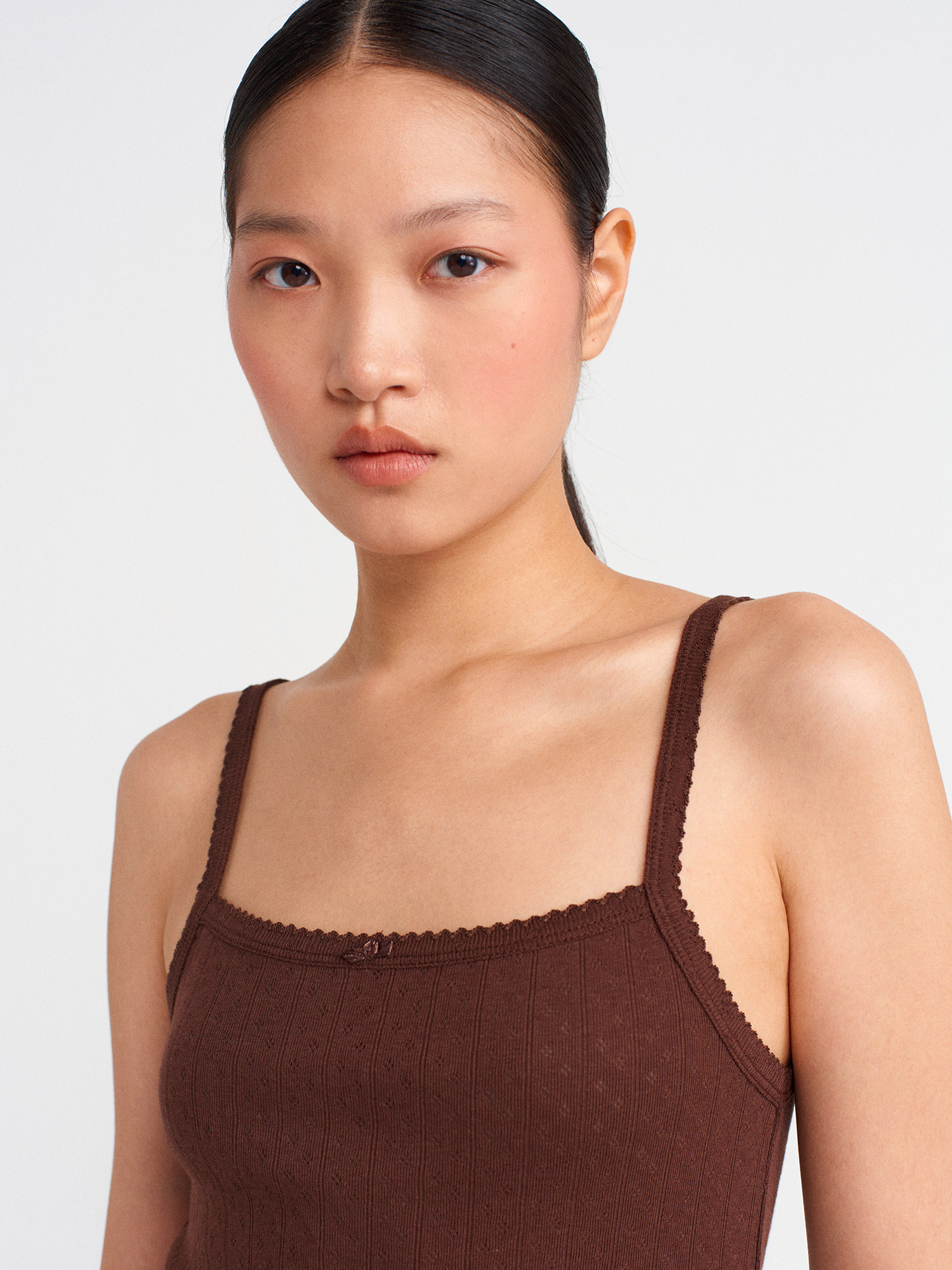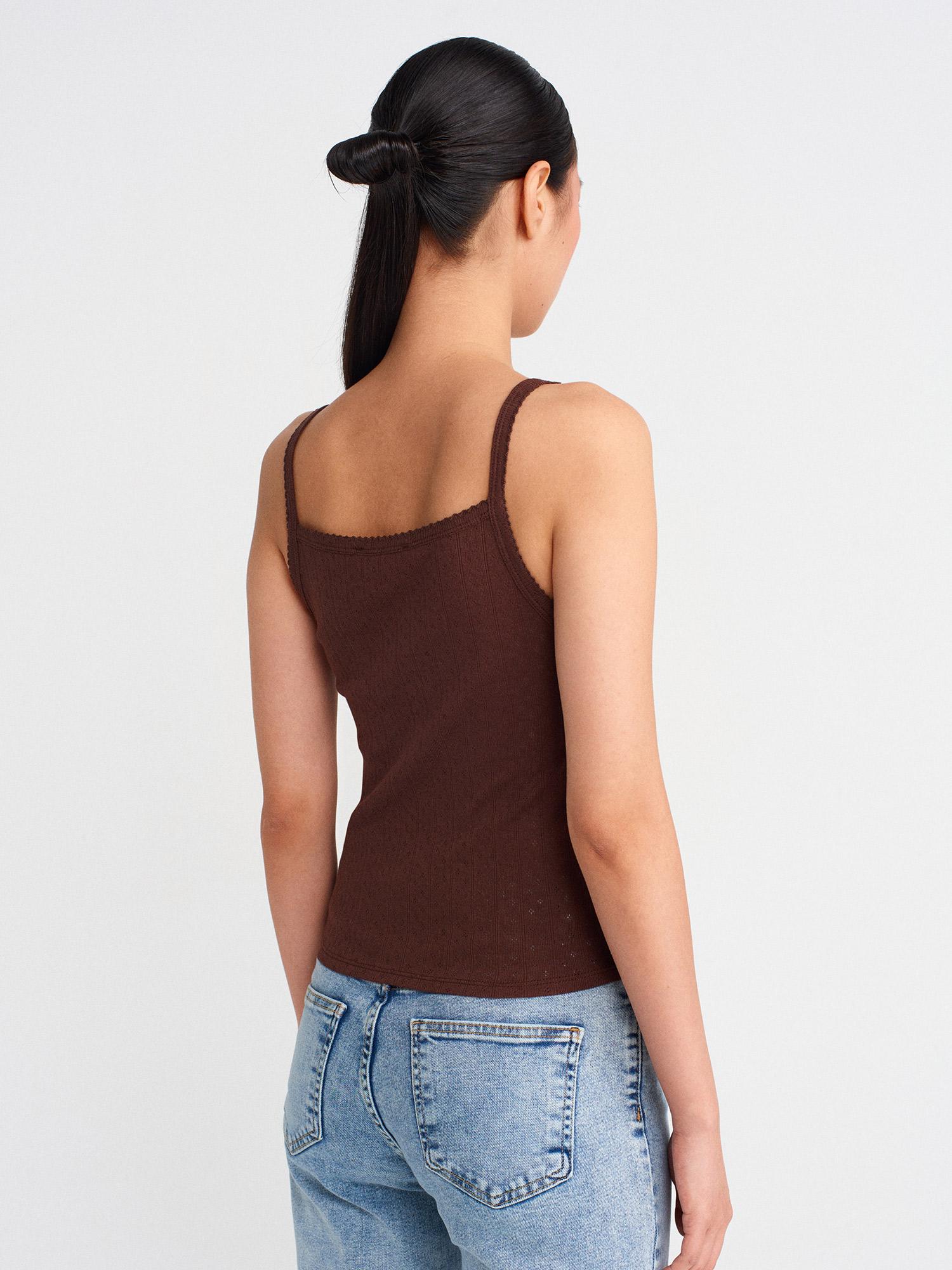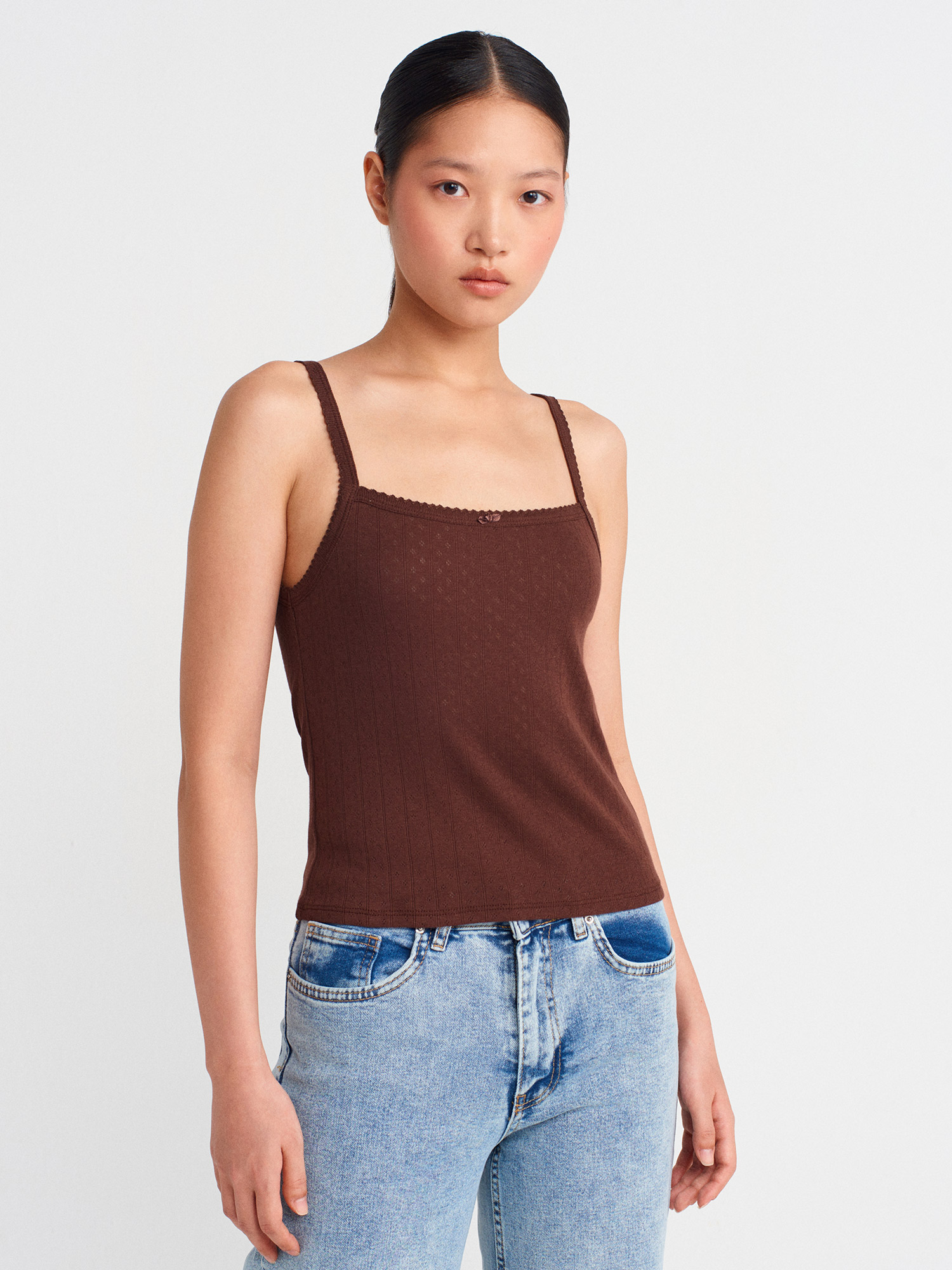 21044 Fiyonk Detaylı Ajurlu Top-Açık Kahve