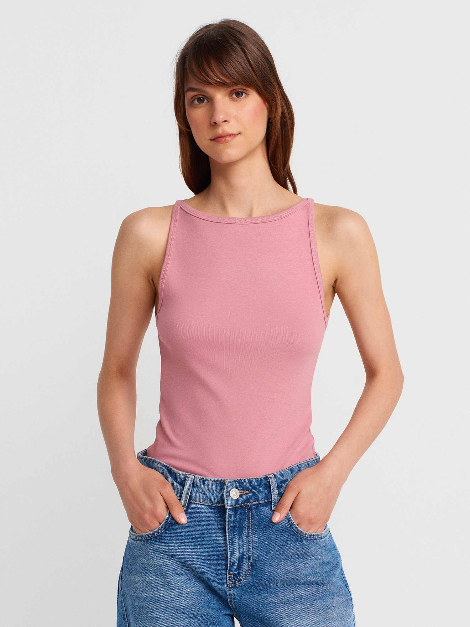 21048 Halter Yaka Top-Gül