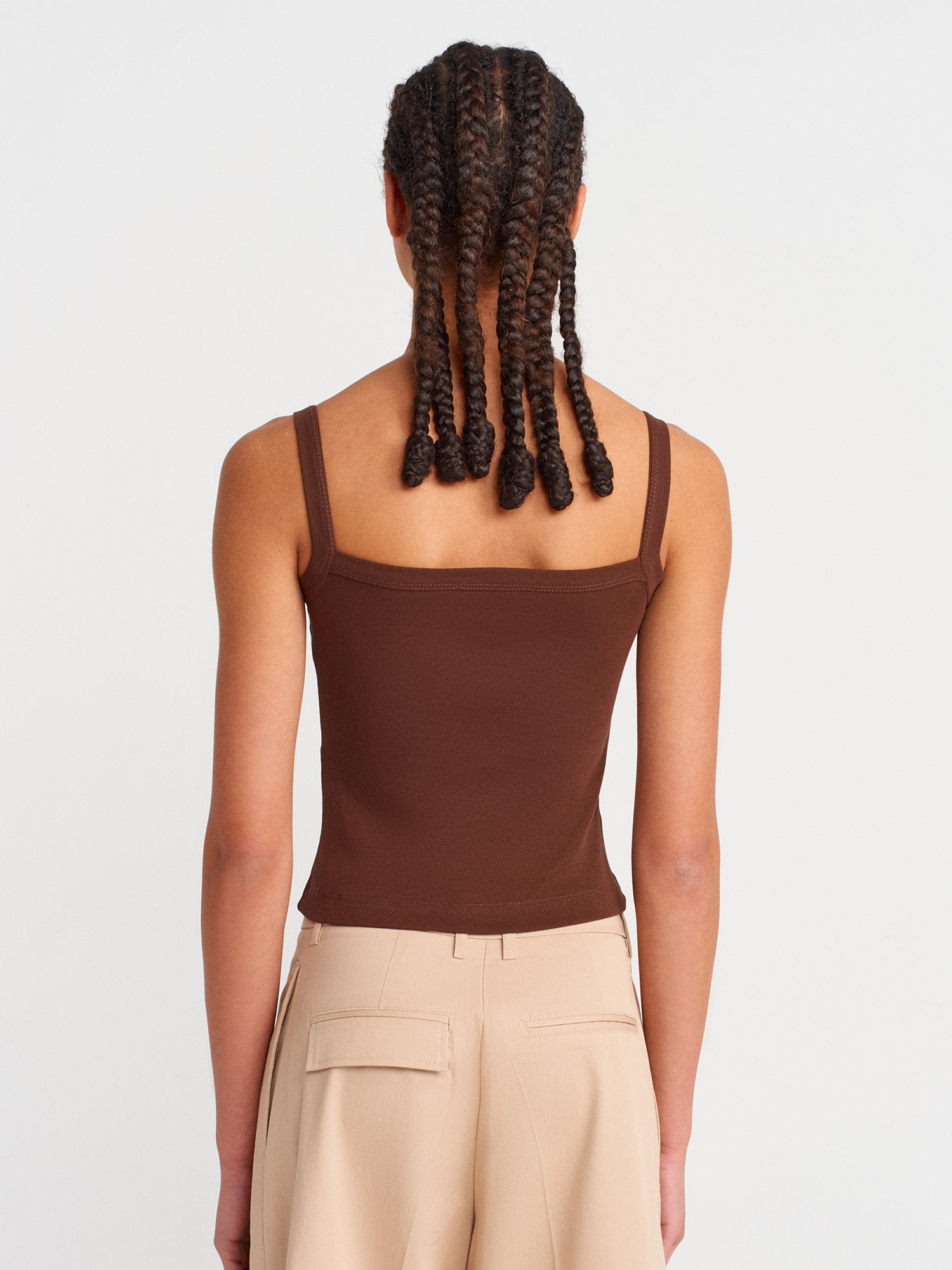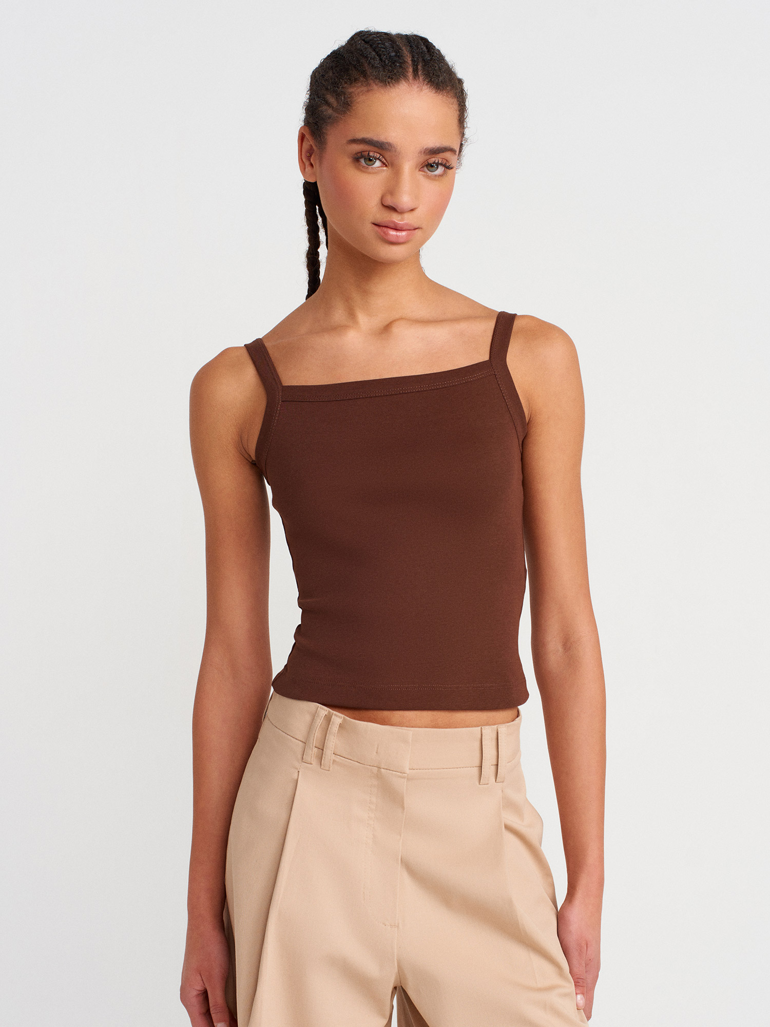 21049 Kare Yaka Askılı Top-Açık Kahve