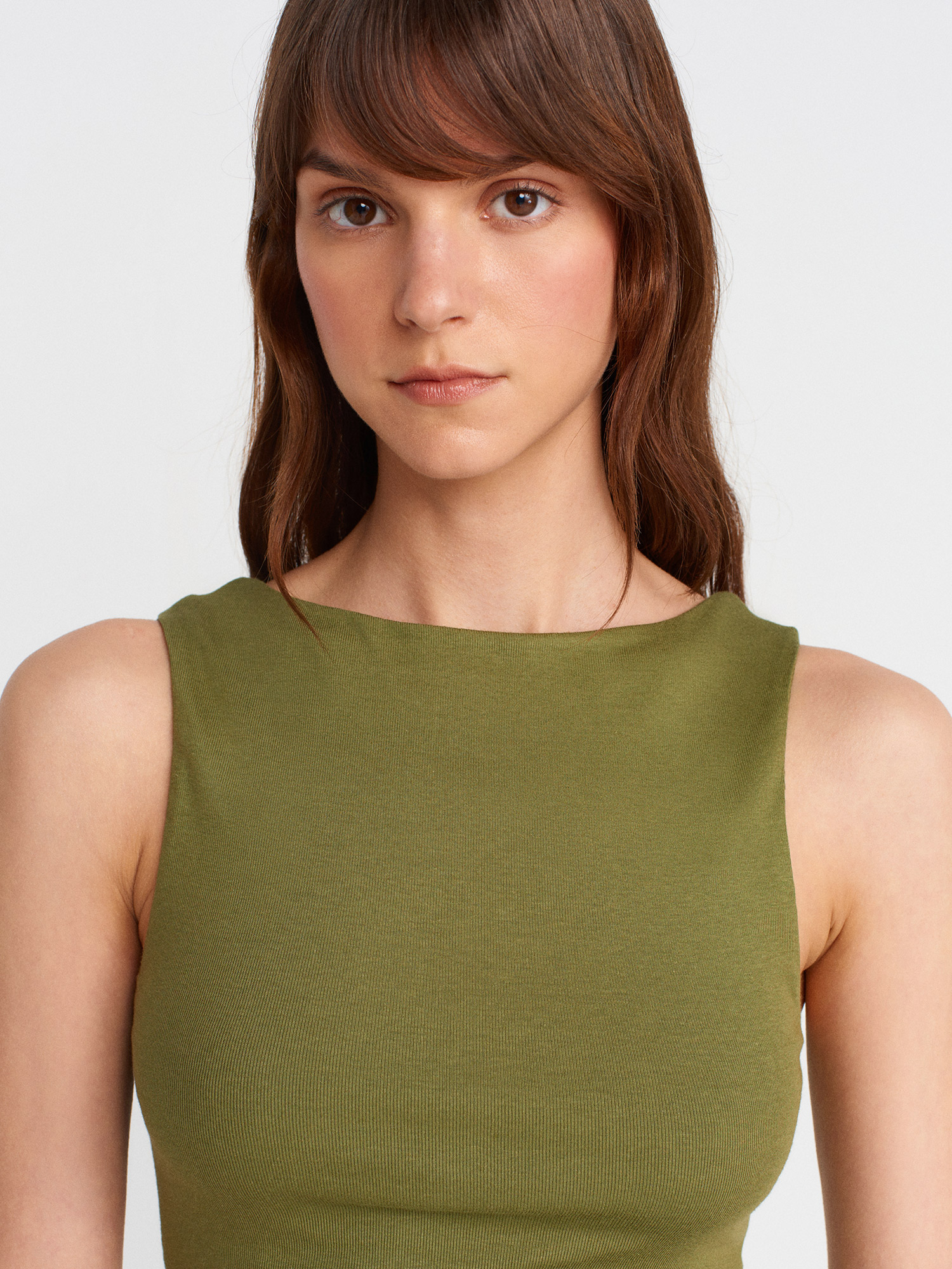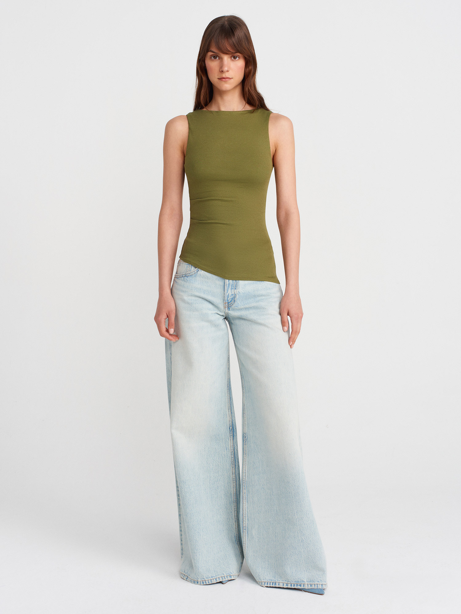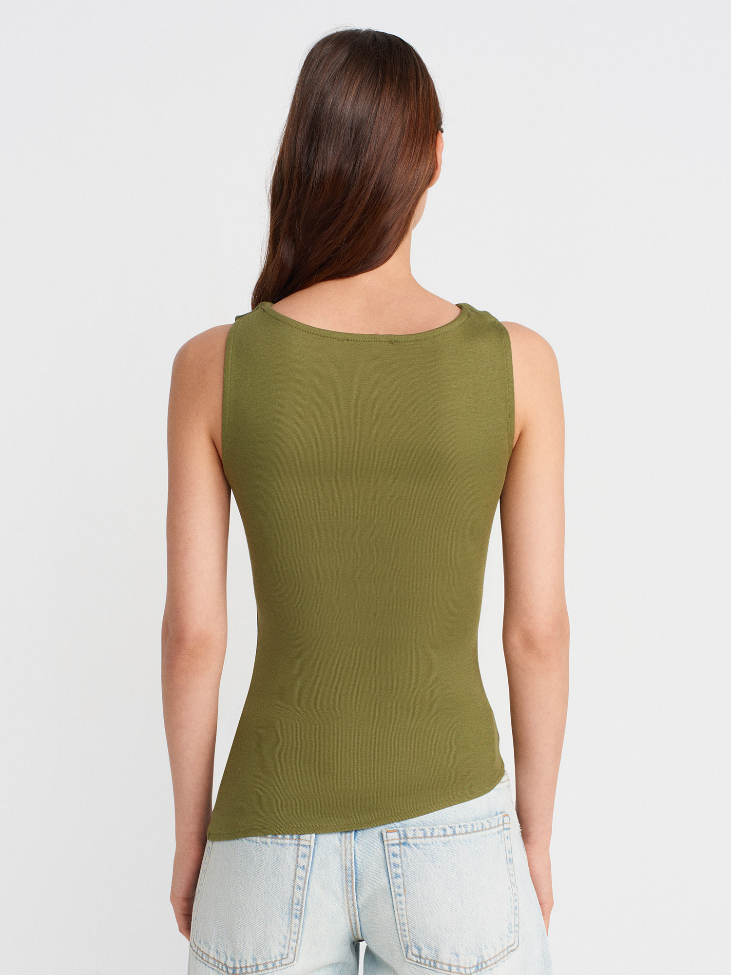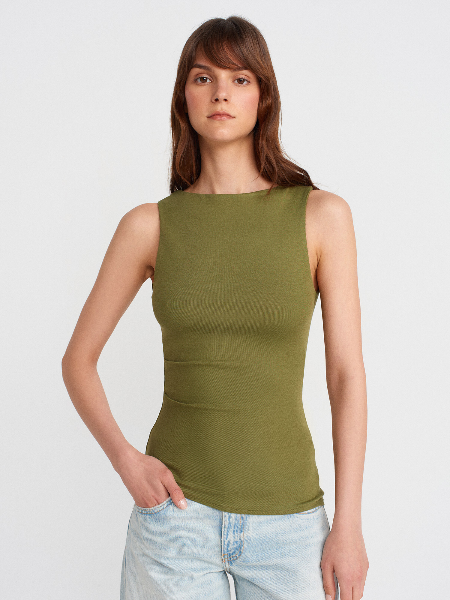 21061 Asimetrik Drapeli Kolsuz Top-Açık Haki