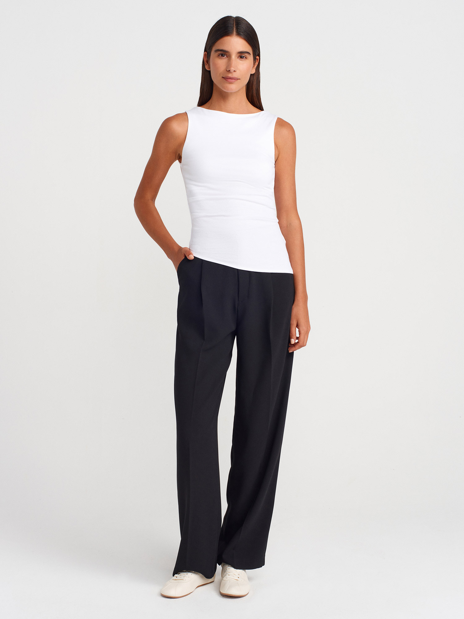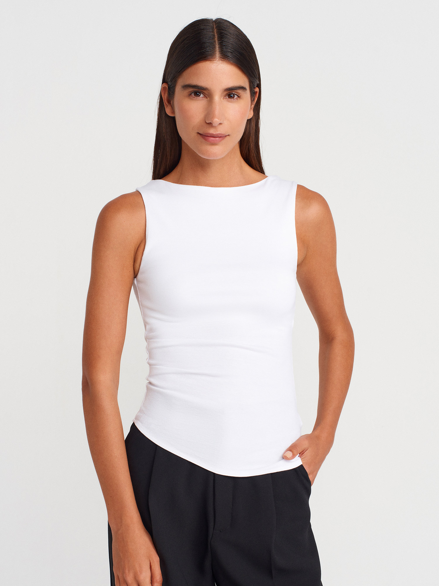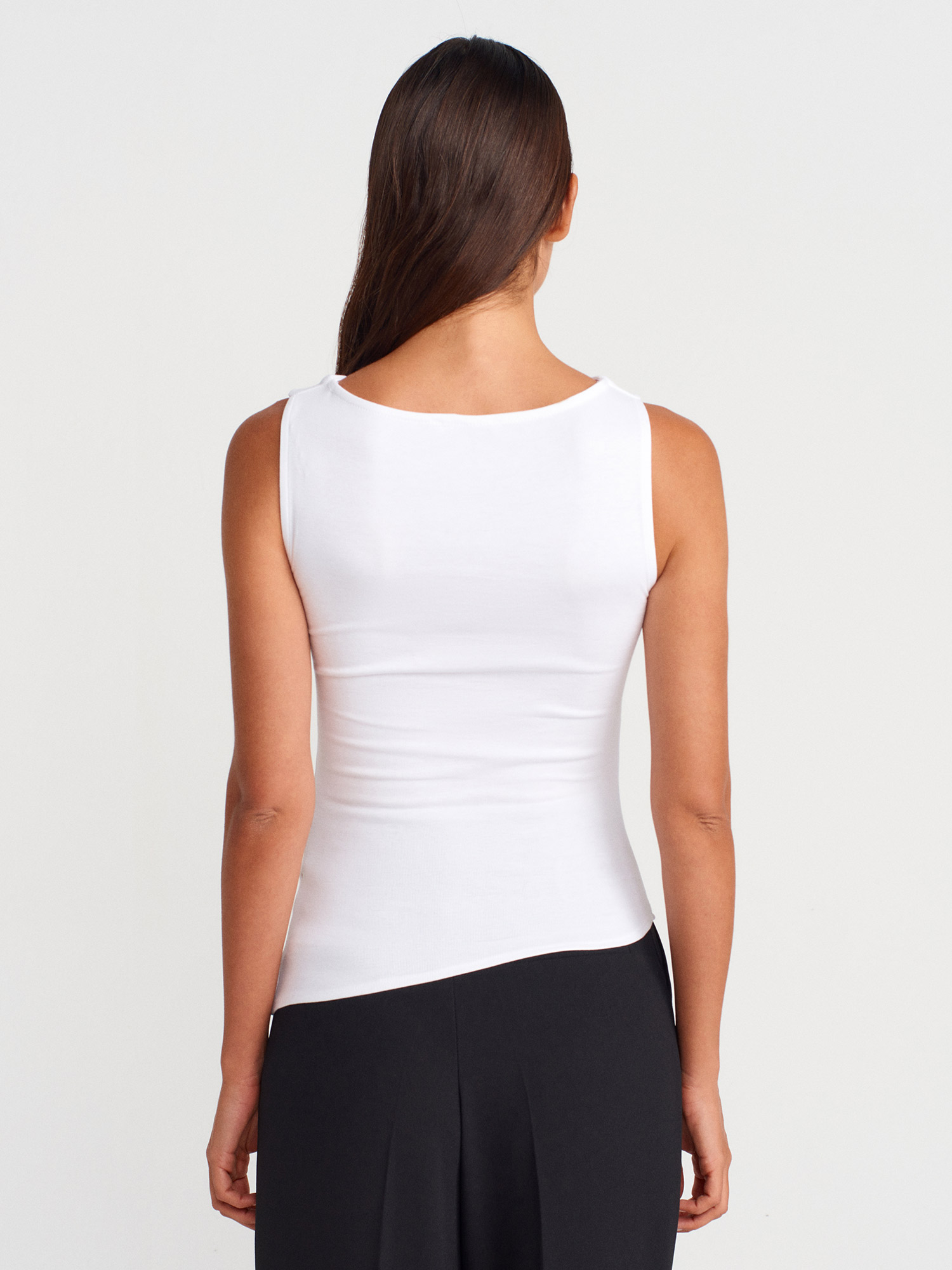 21061 Asimetrik Drapeli Kolsuz Top-Beyaz