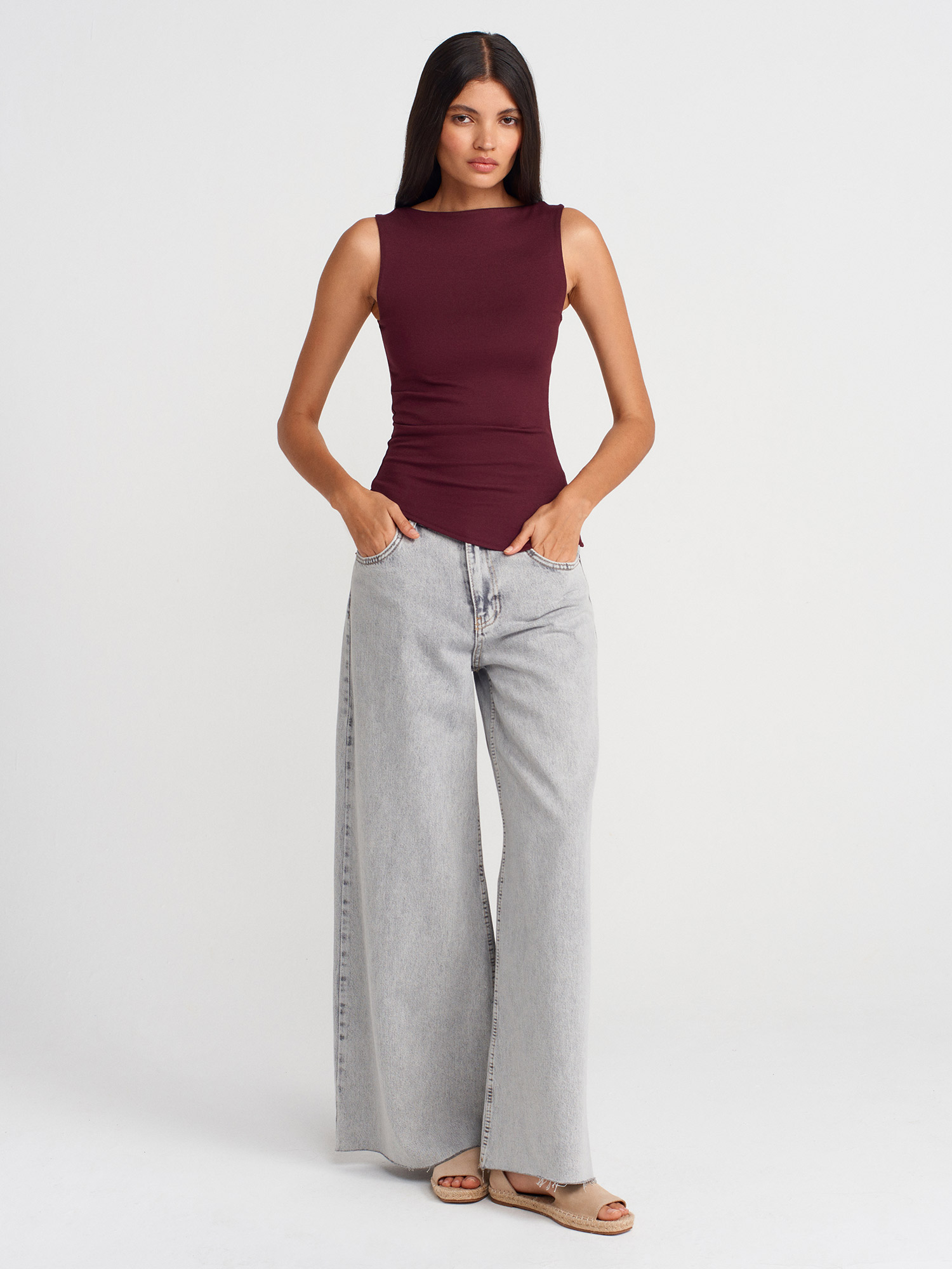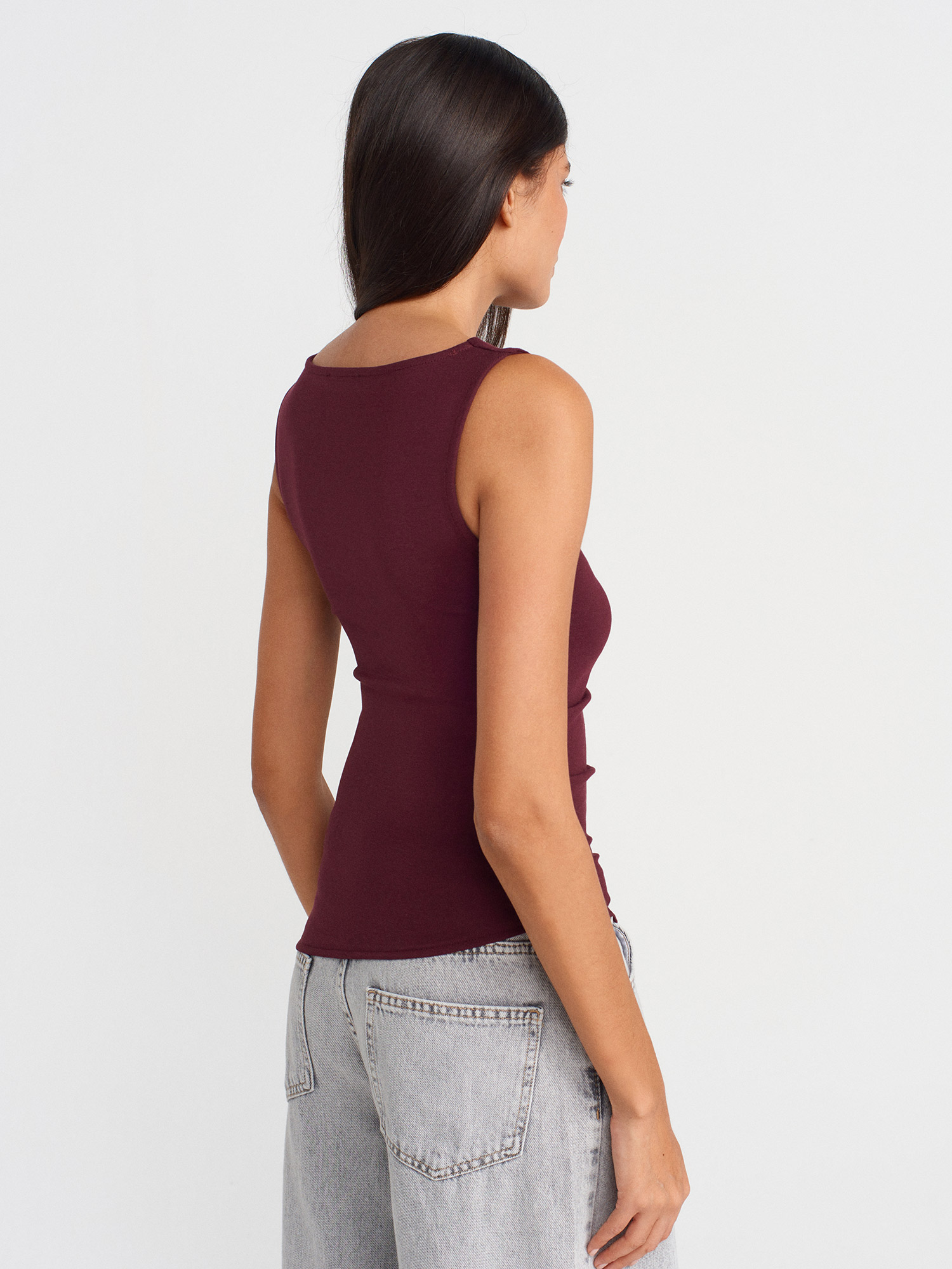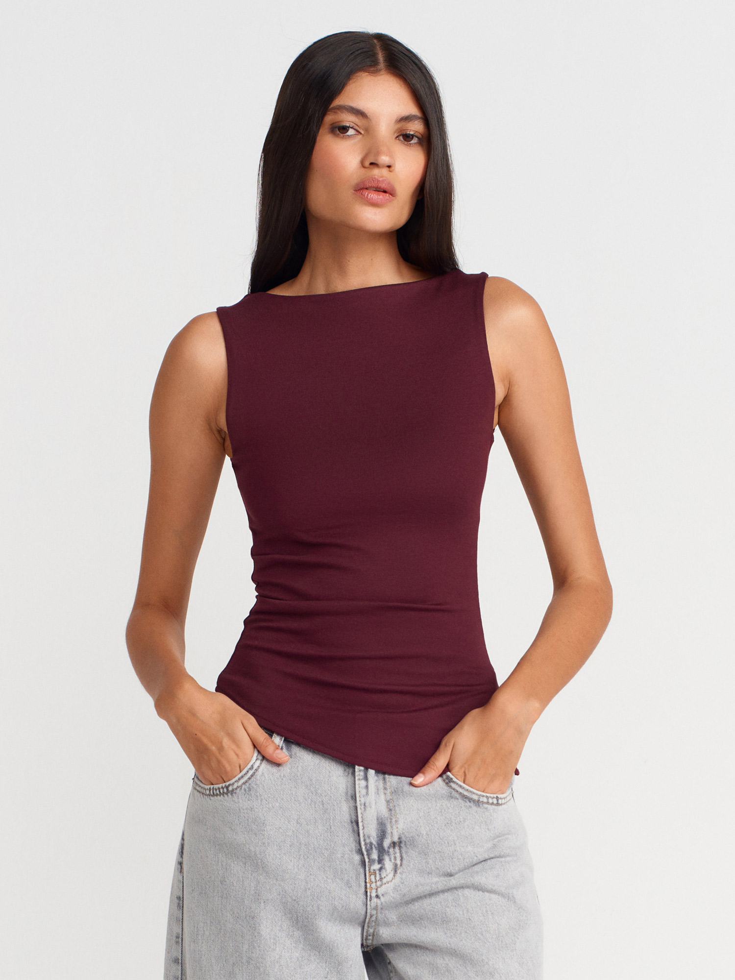 21061 Asimetrik Drapeli Kolsuz Top-Bordo