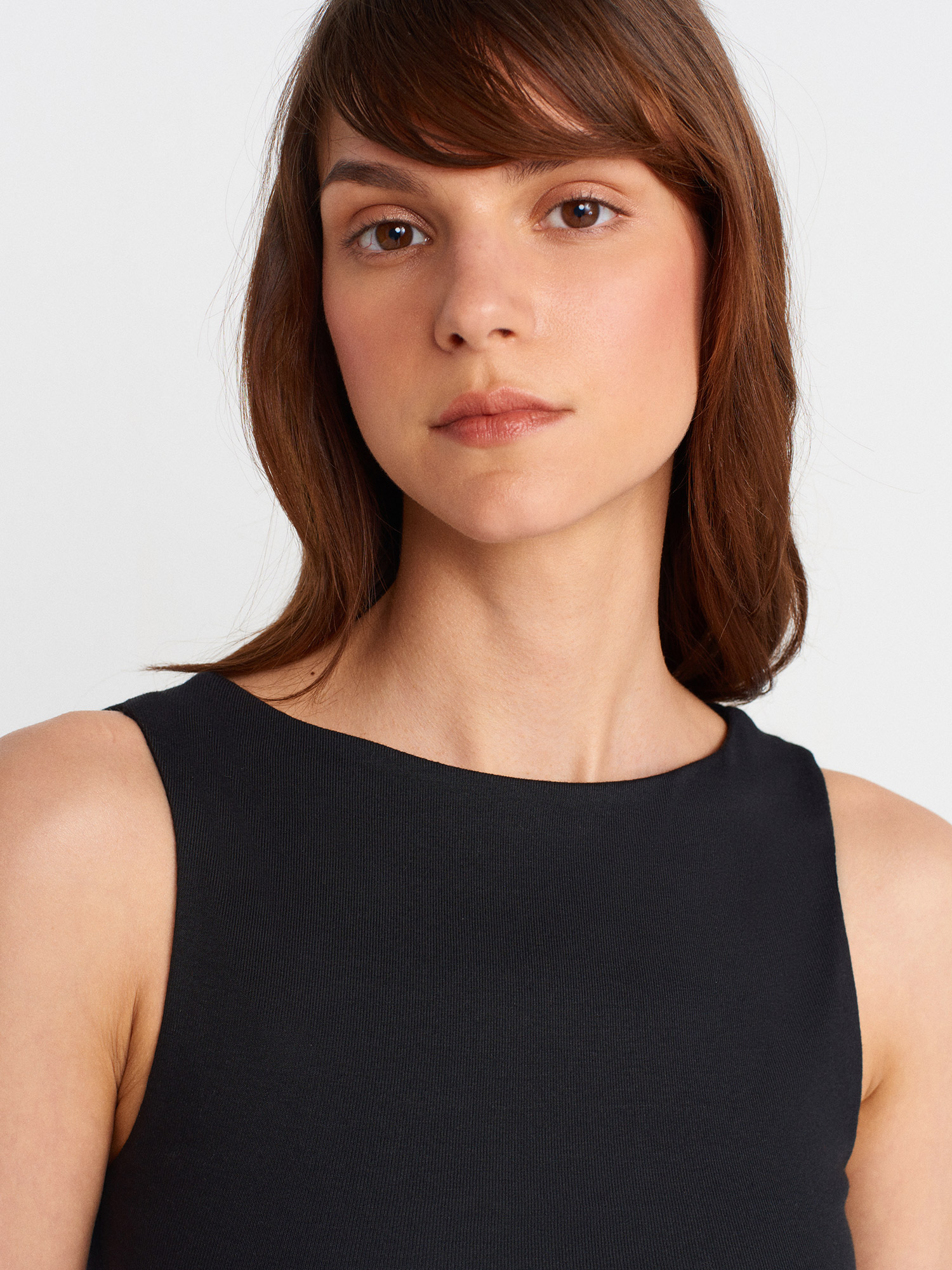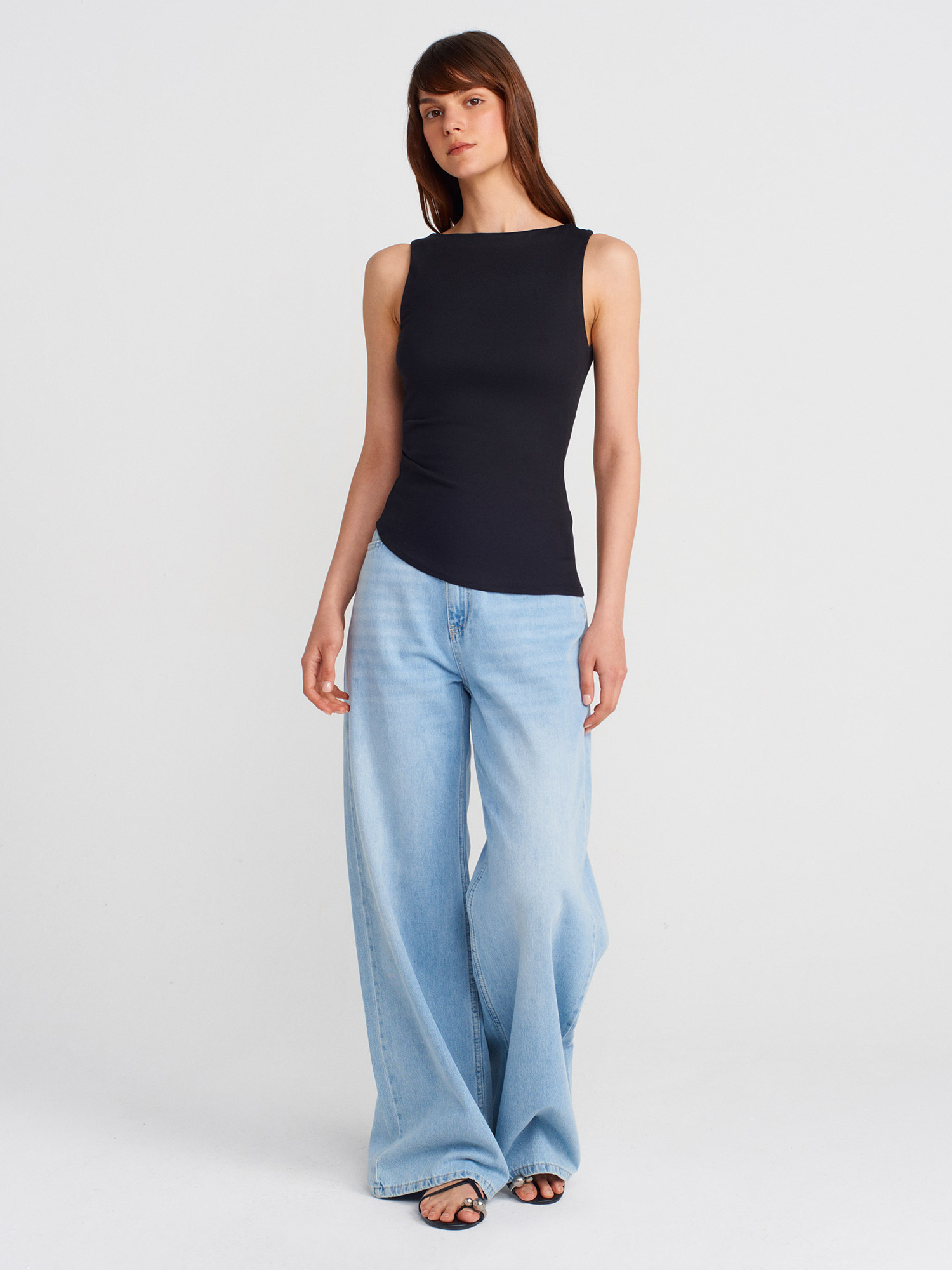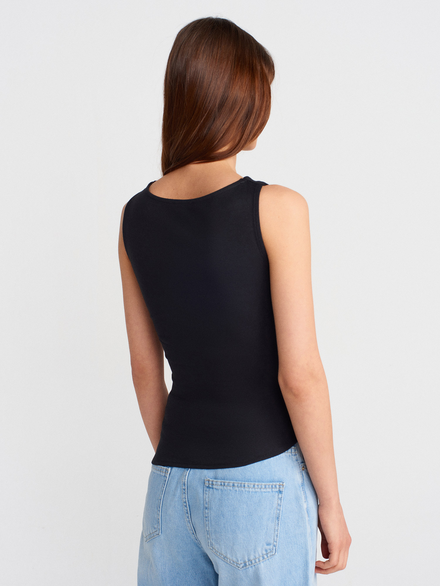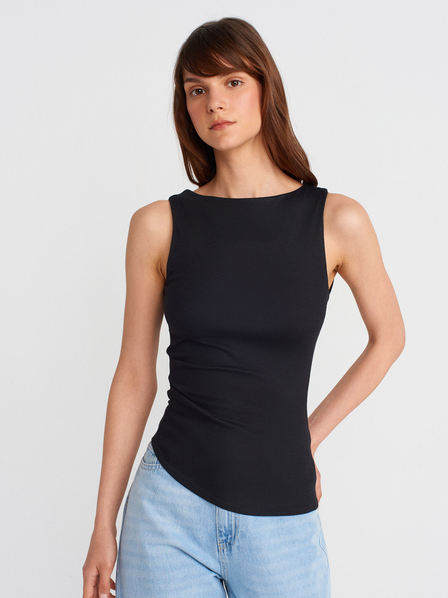 21061 Asimetrik Drapeli Kolsuz Top-Siyah