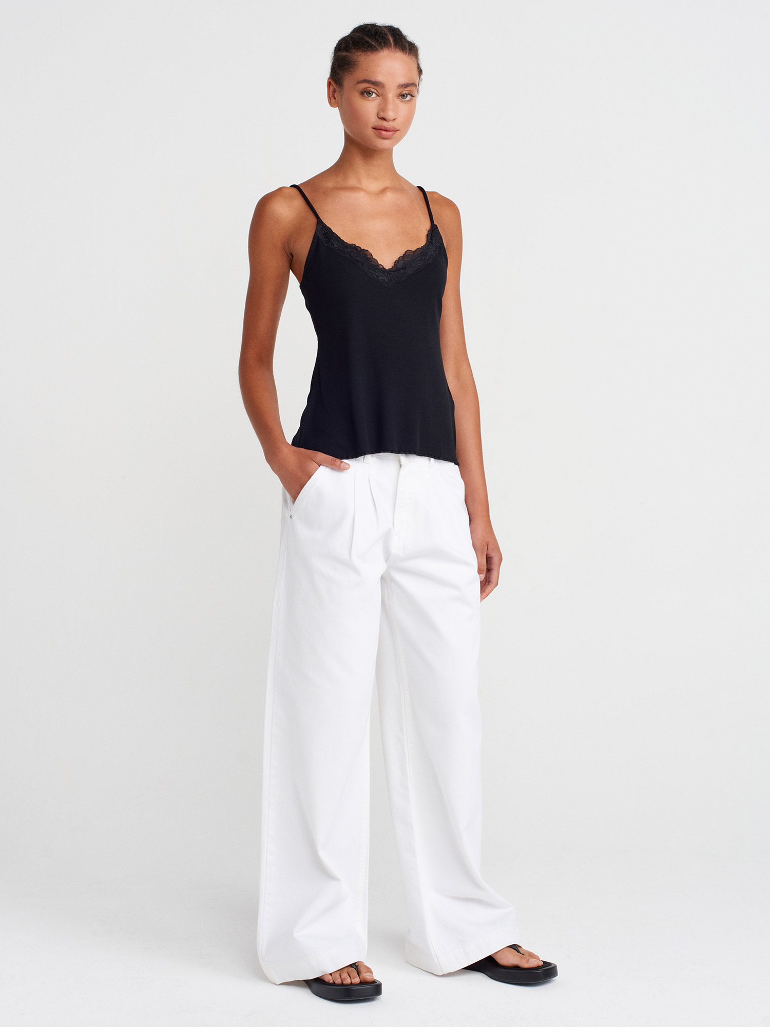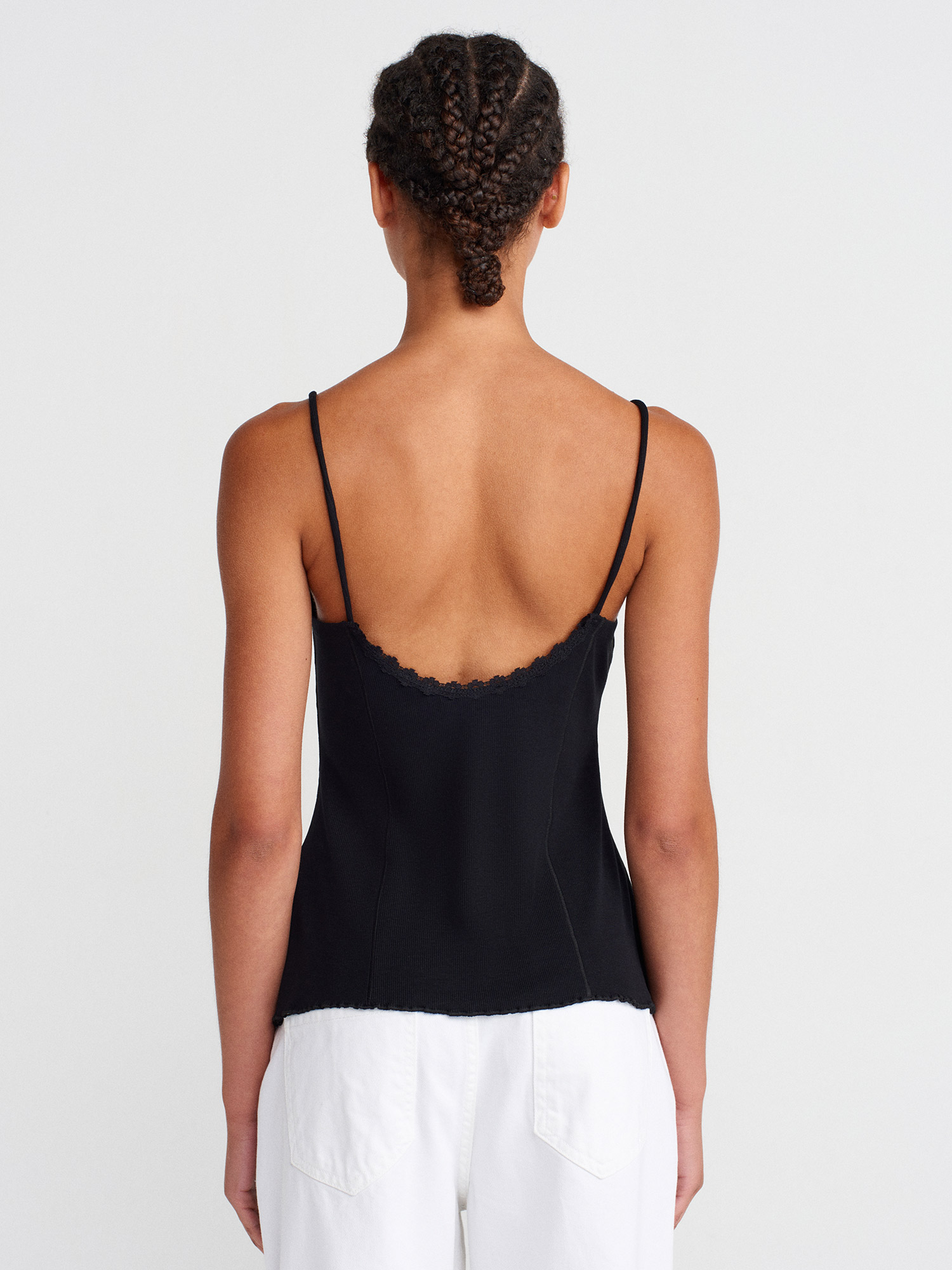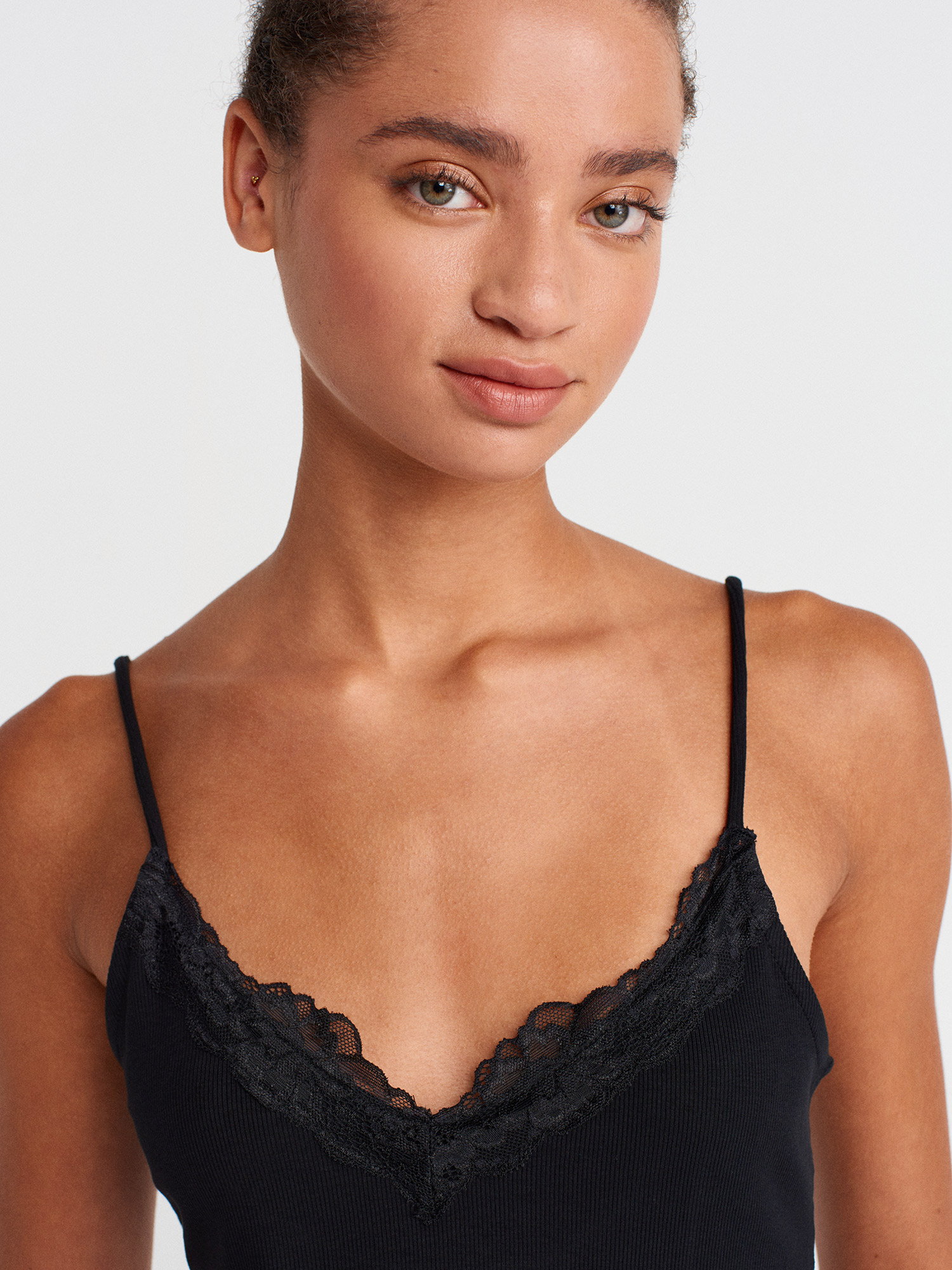 21066 Dantel Şeritli Askılı Top-Siyah