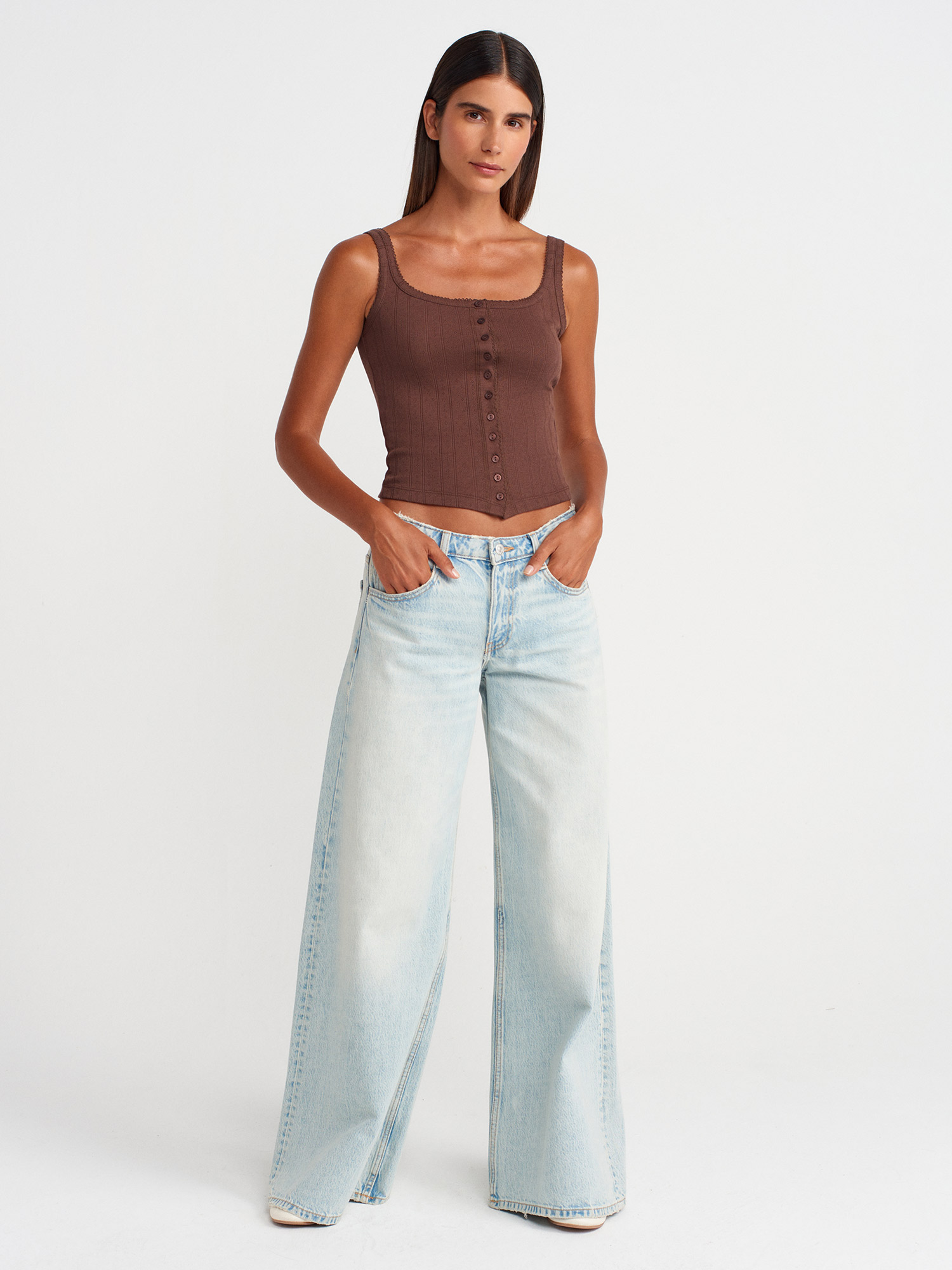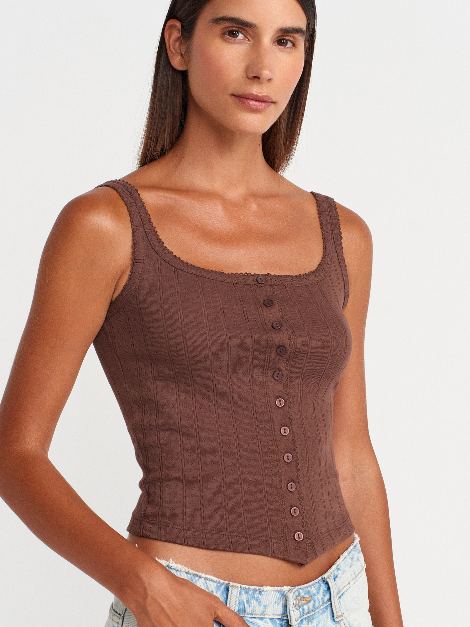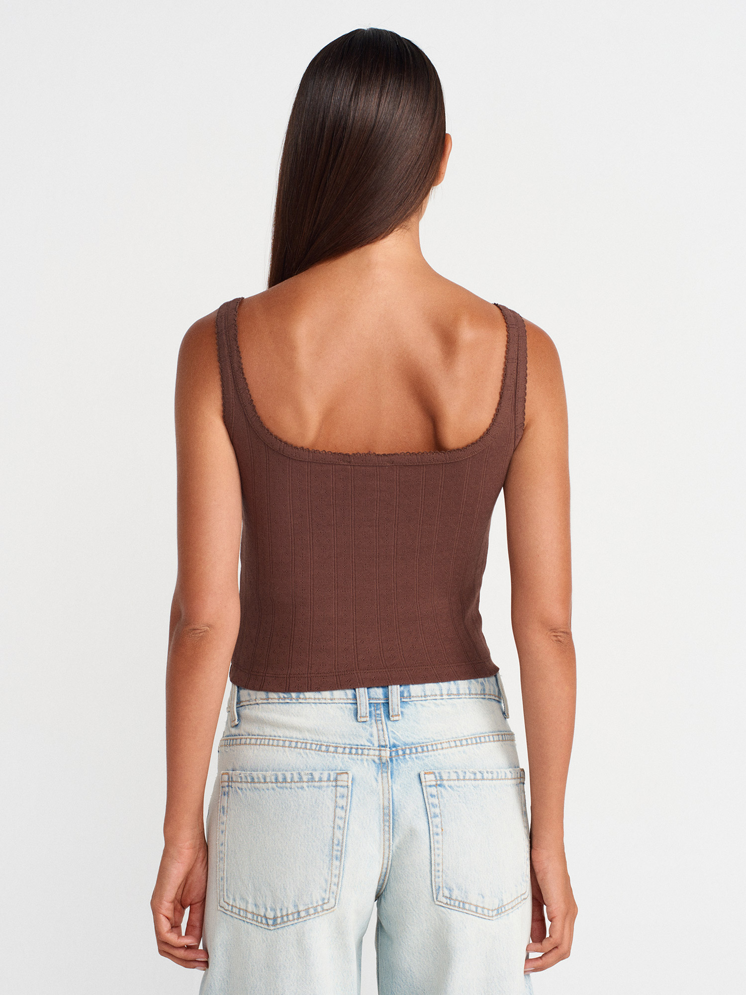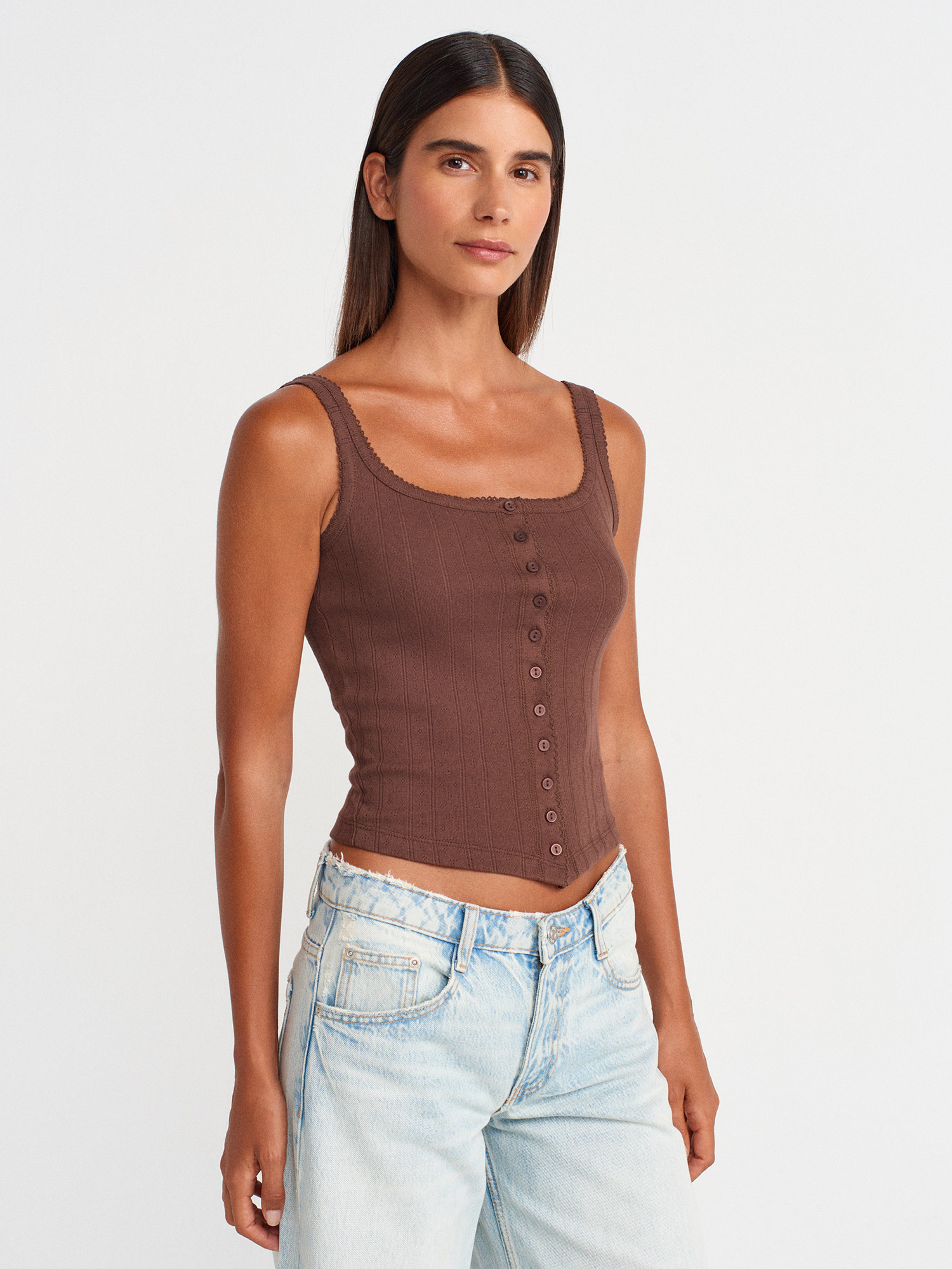 21068 Düğmeli Kare Yaka Top-Açık Kahve