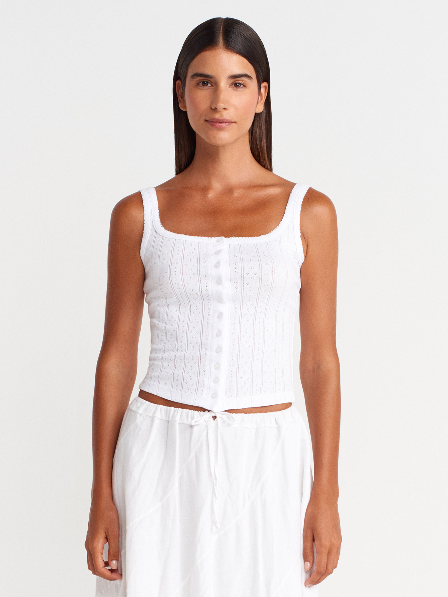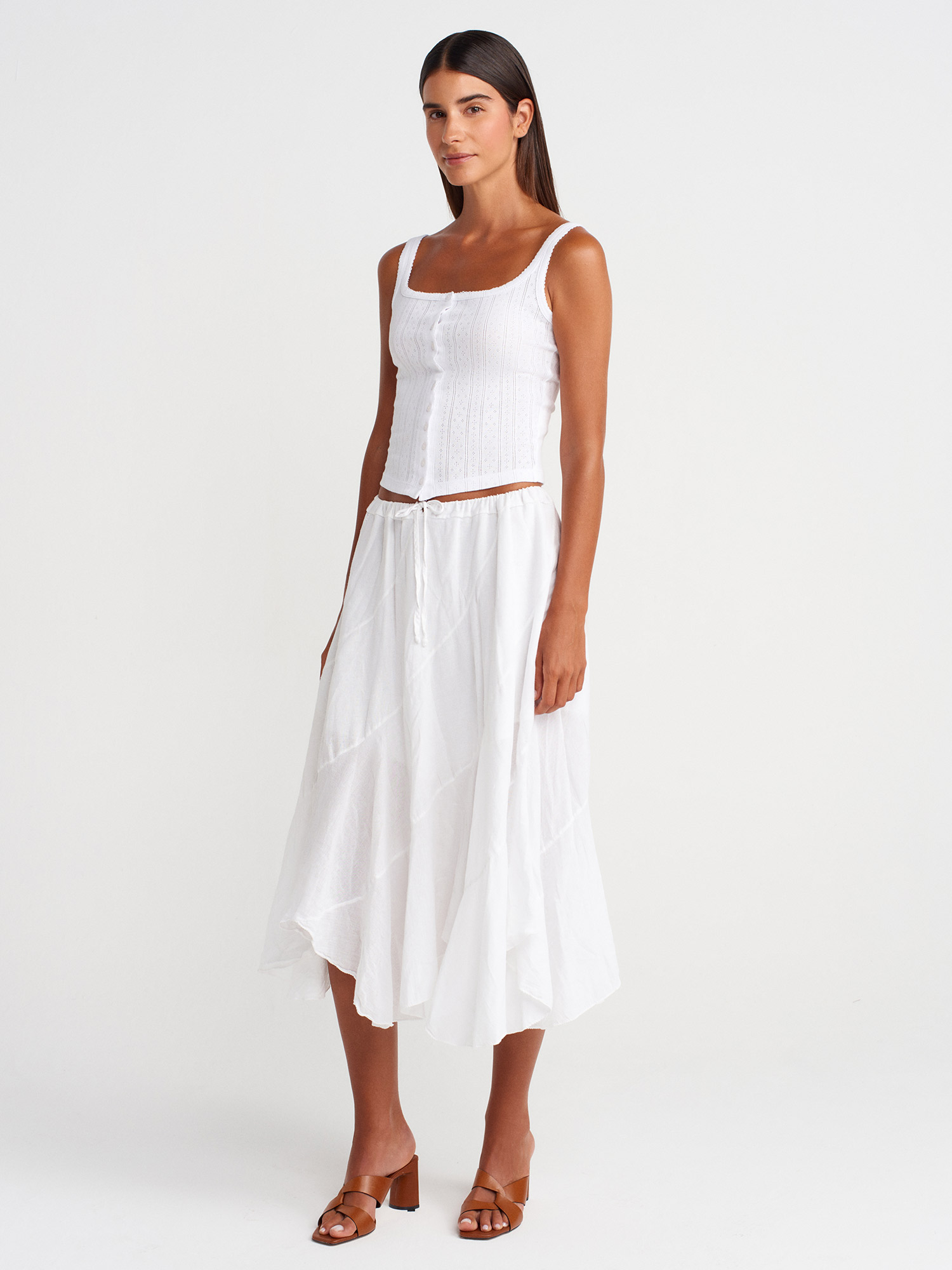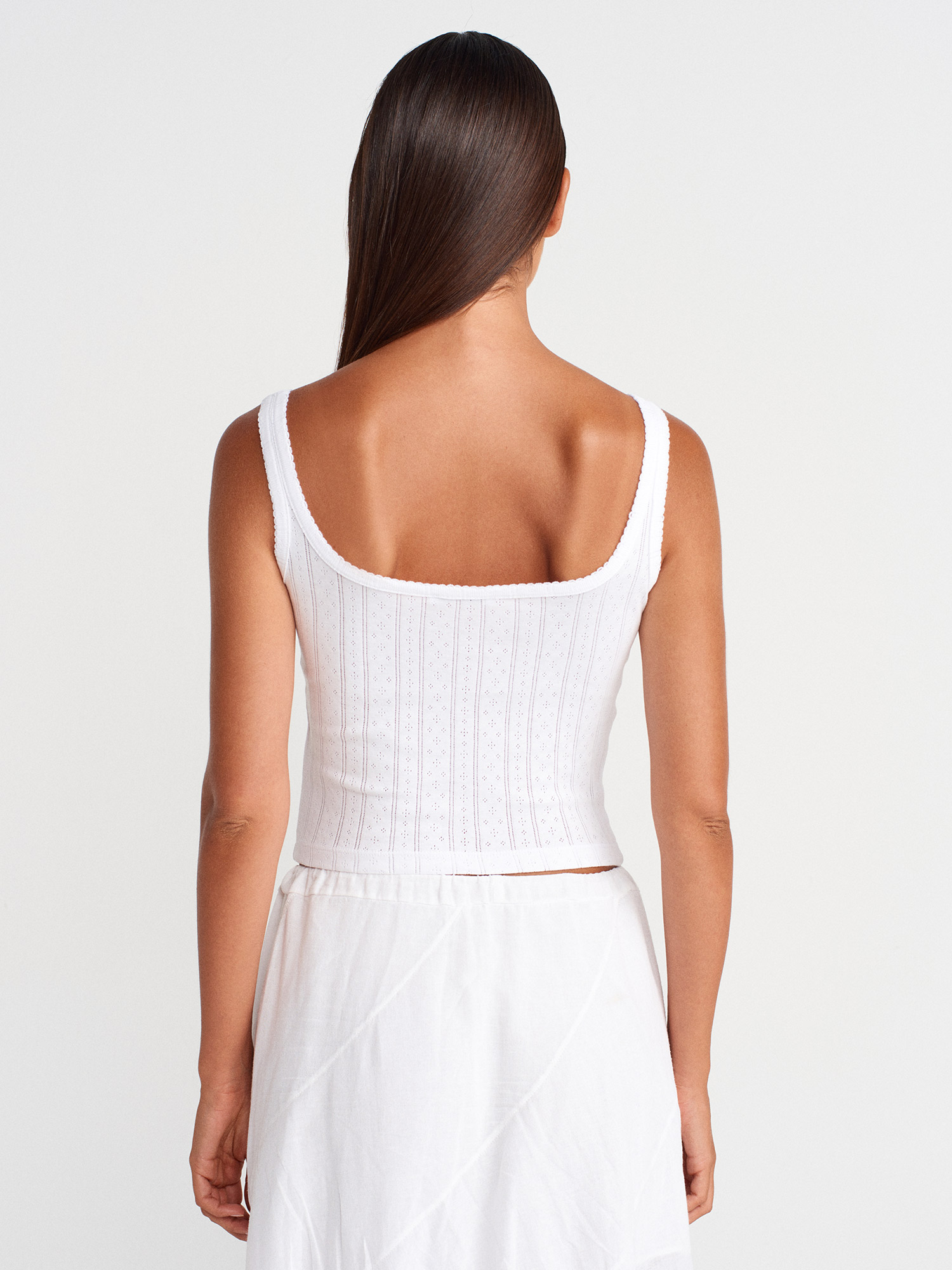 21068 Düğmeli Kare Yaka Top-Beyaz