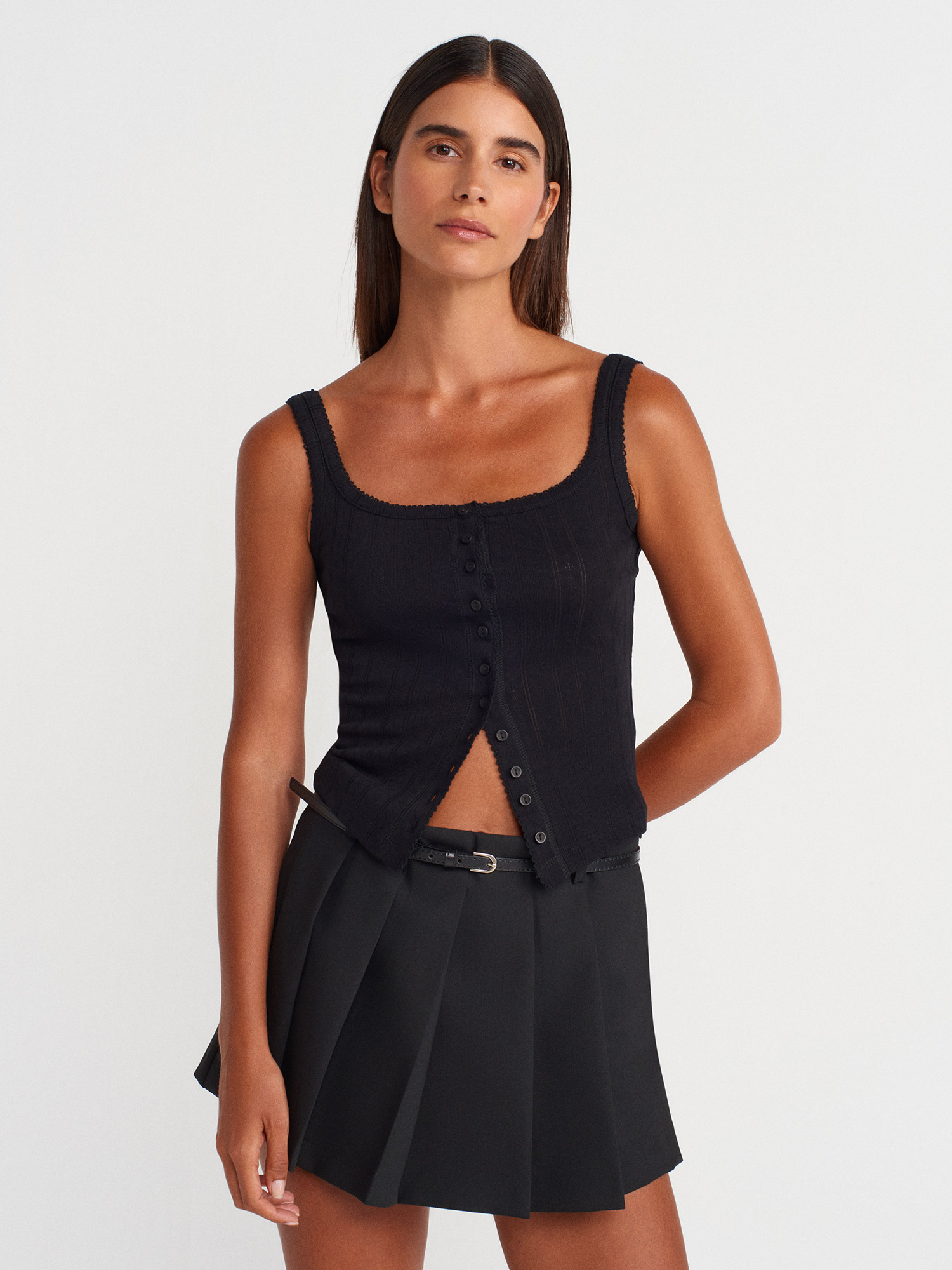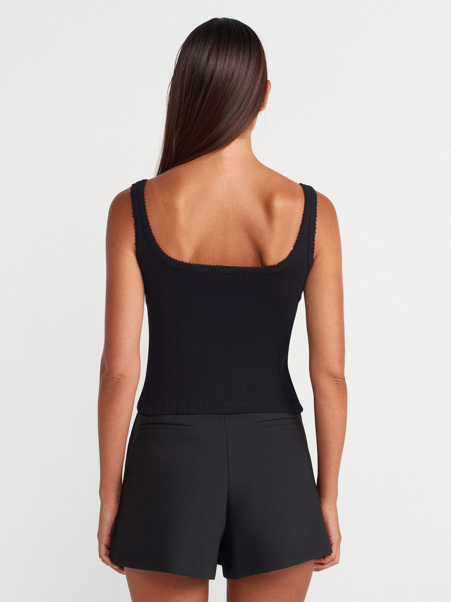 21068 Düğmeli Kare Yaka Top-Siyah