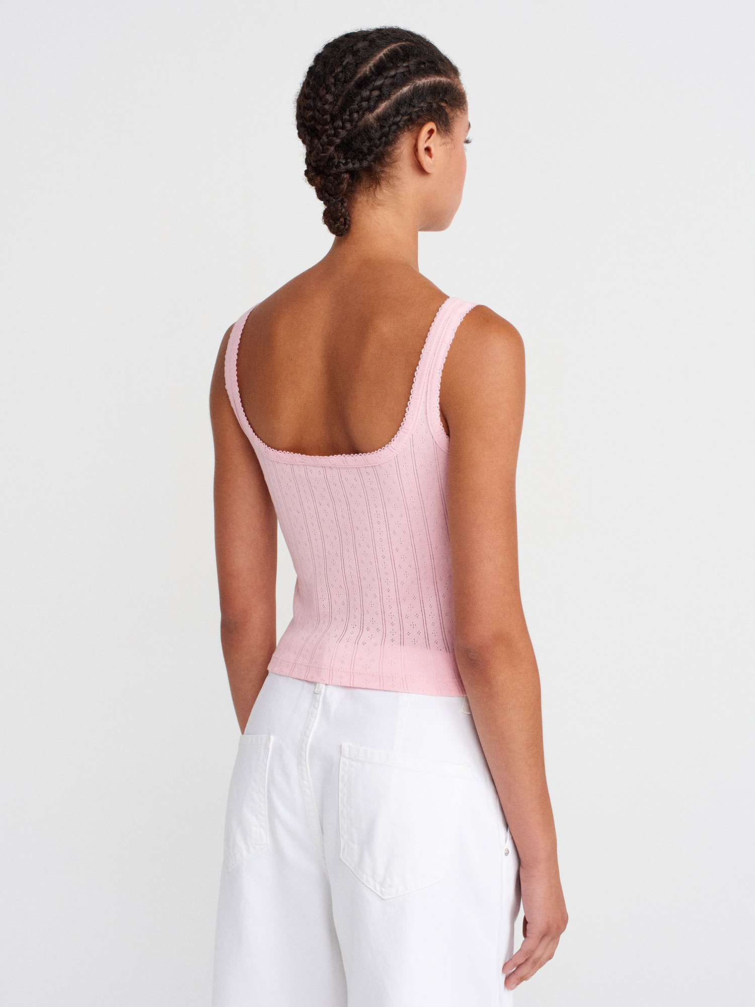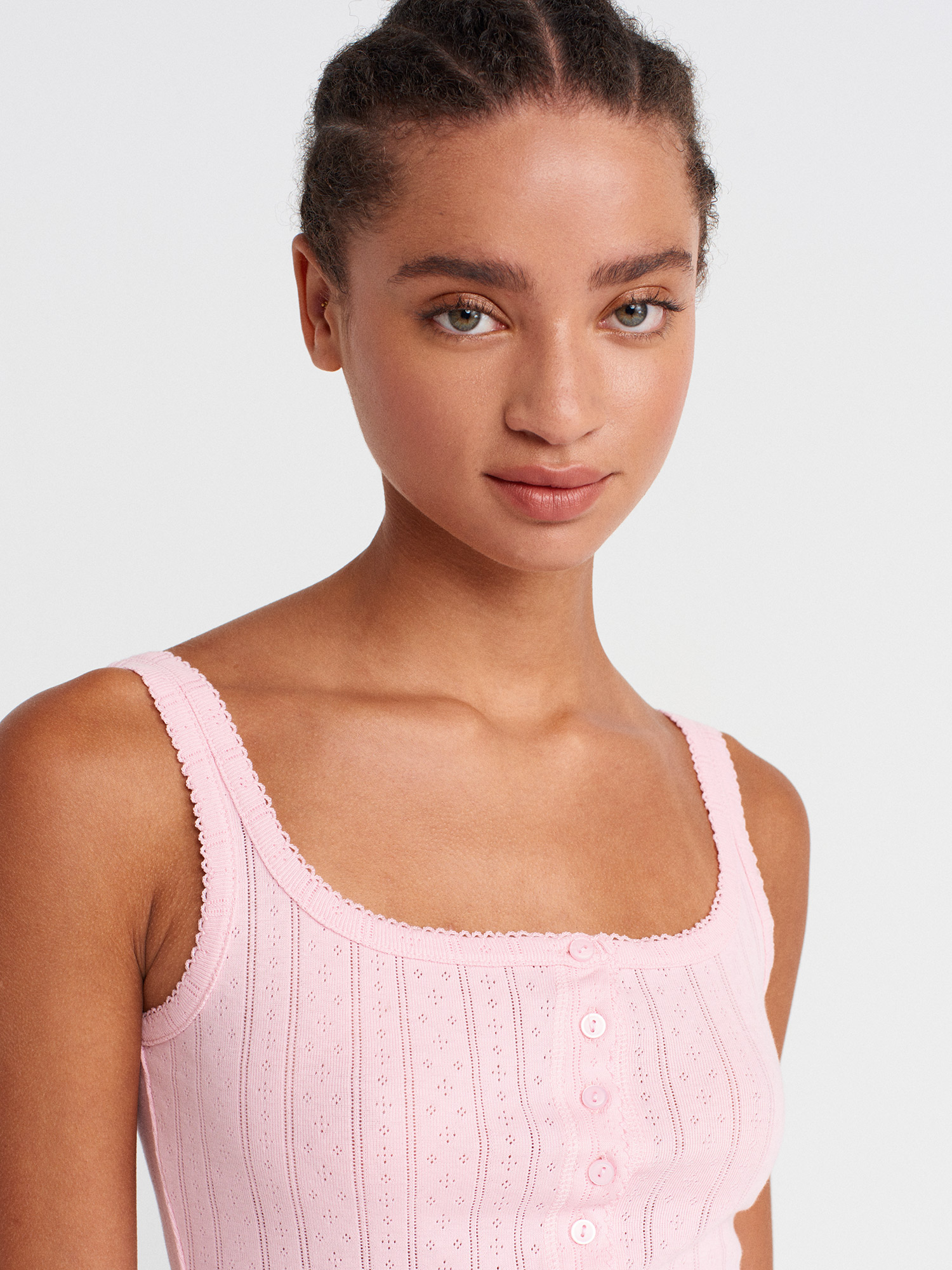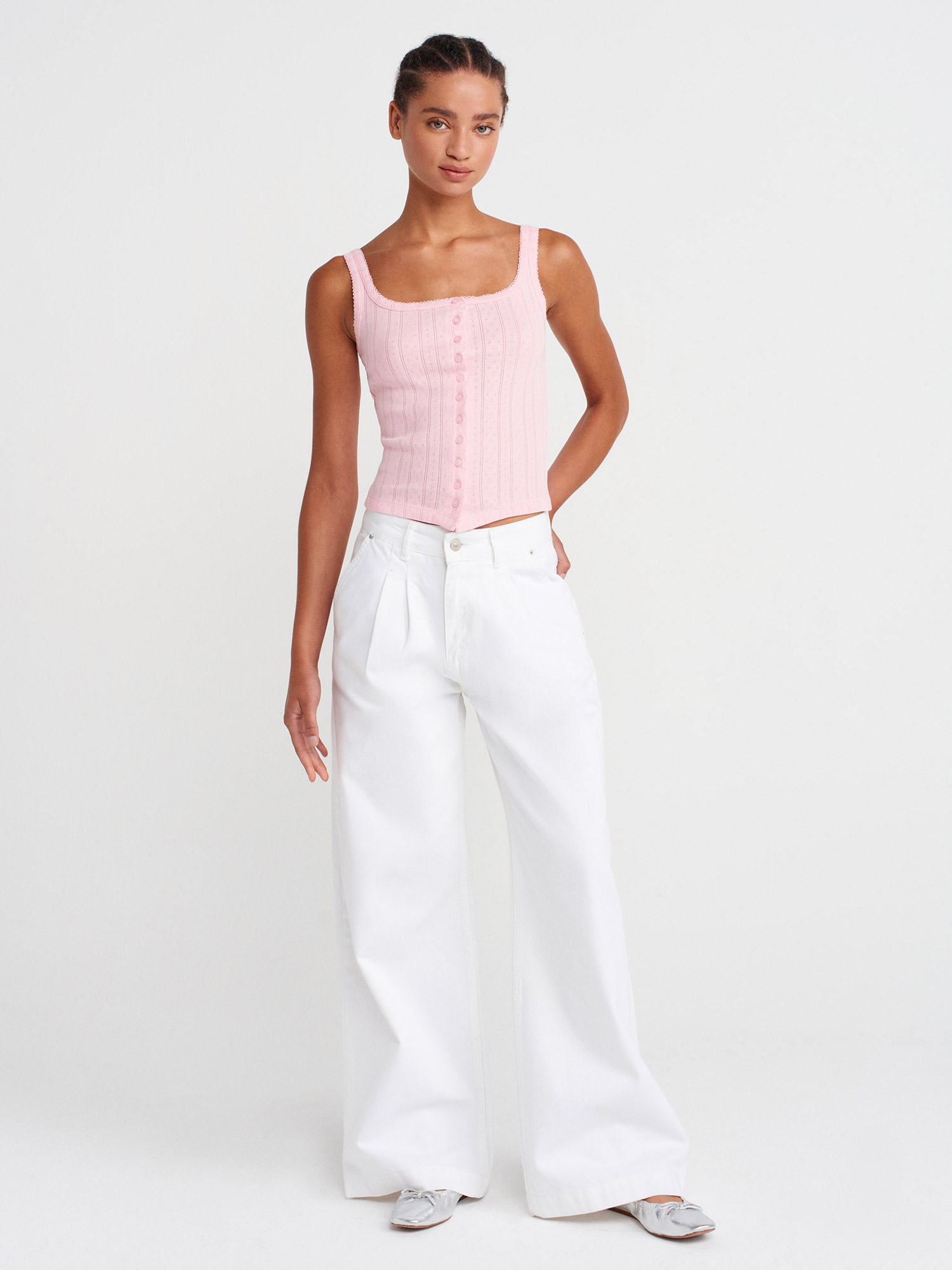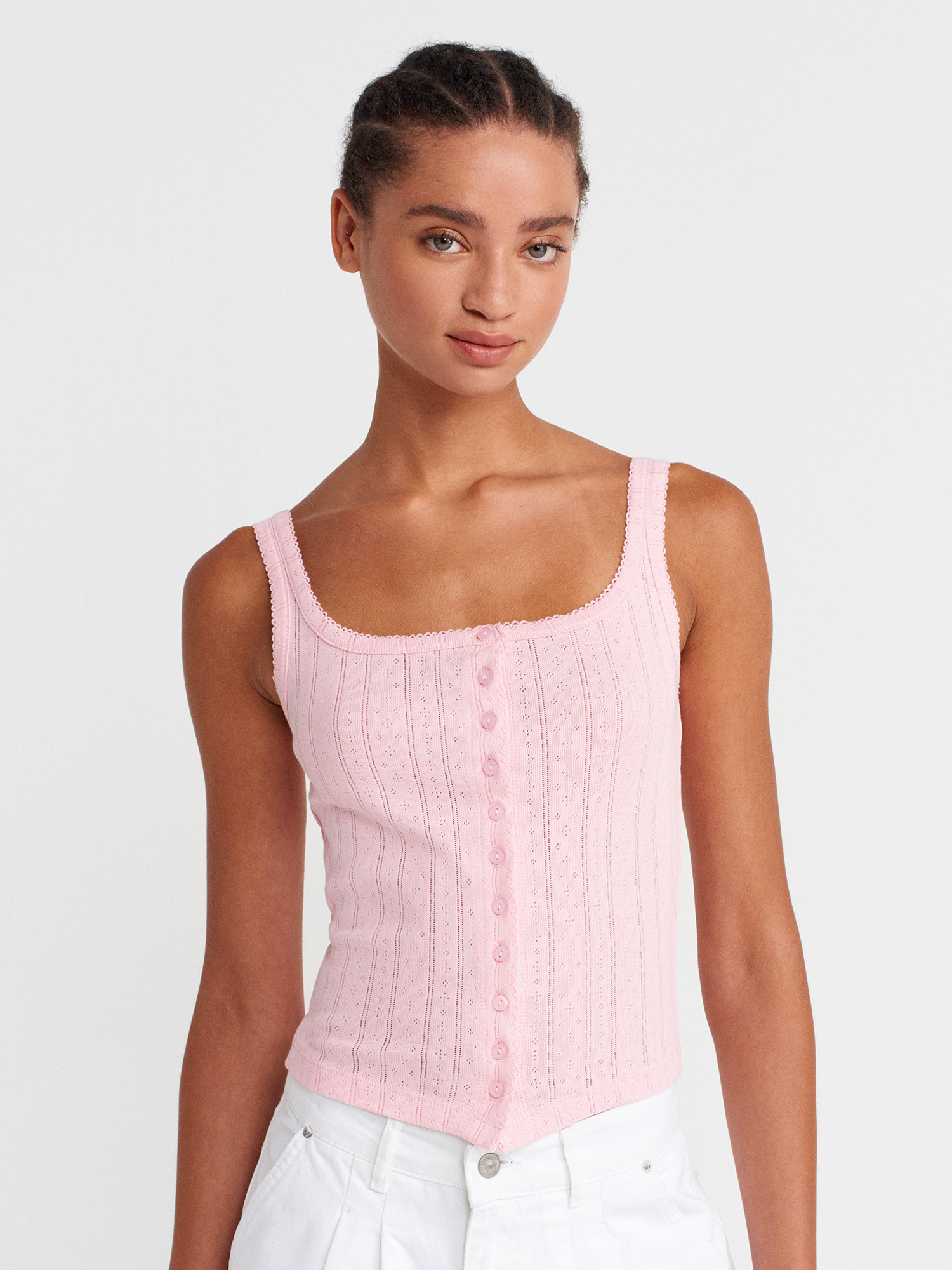 21068 Düğmeli Kare Yaka Top-Toz Pembe