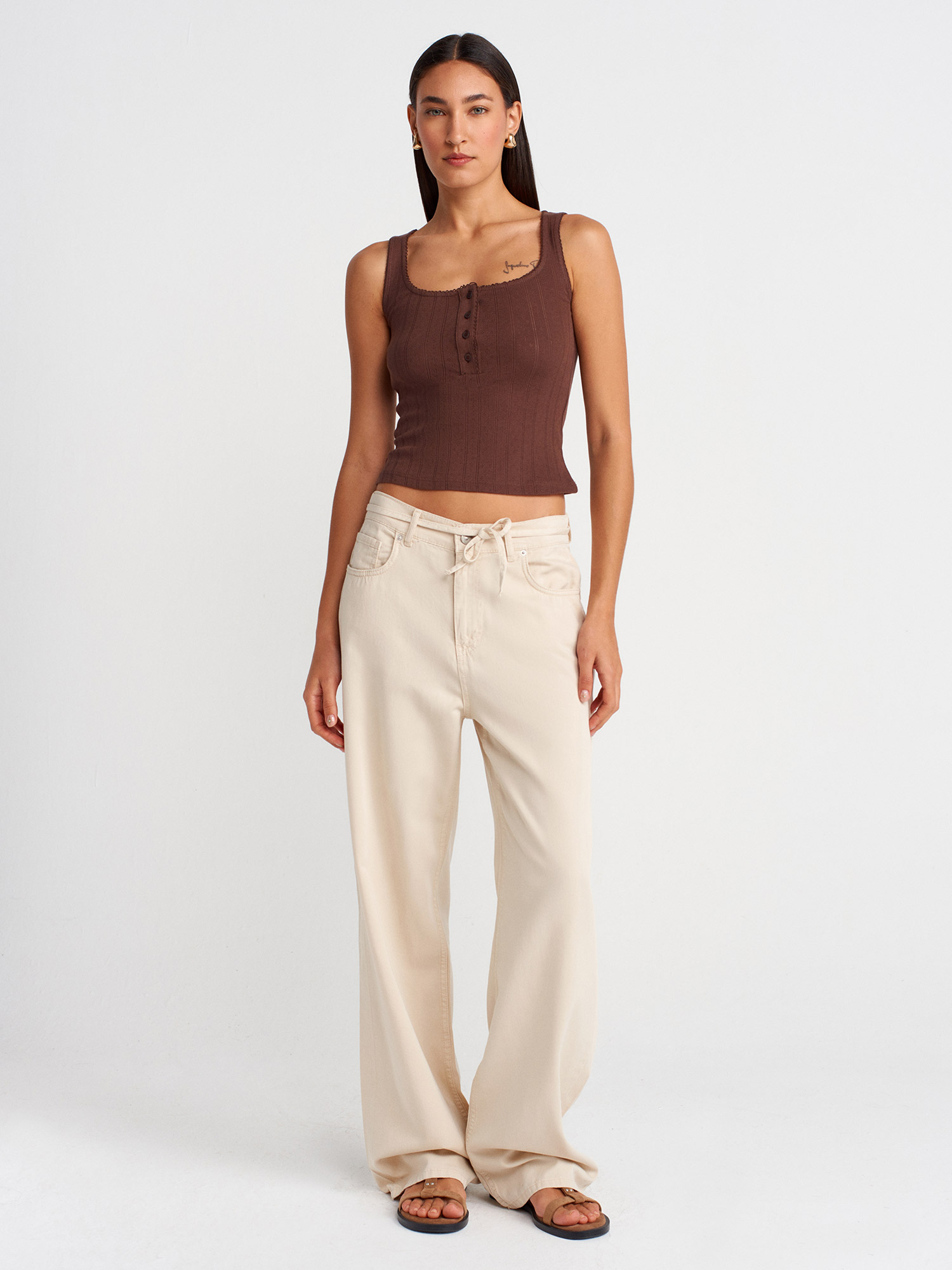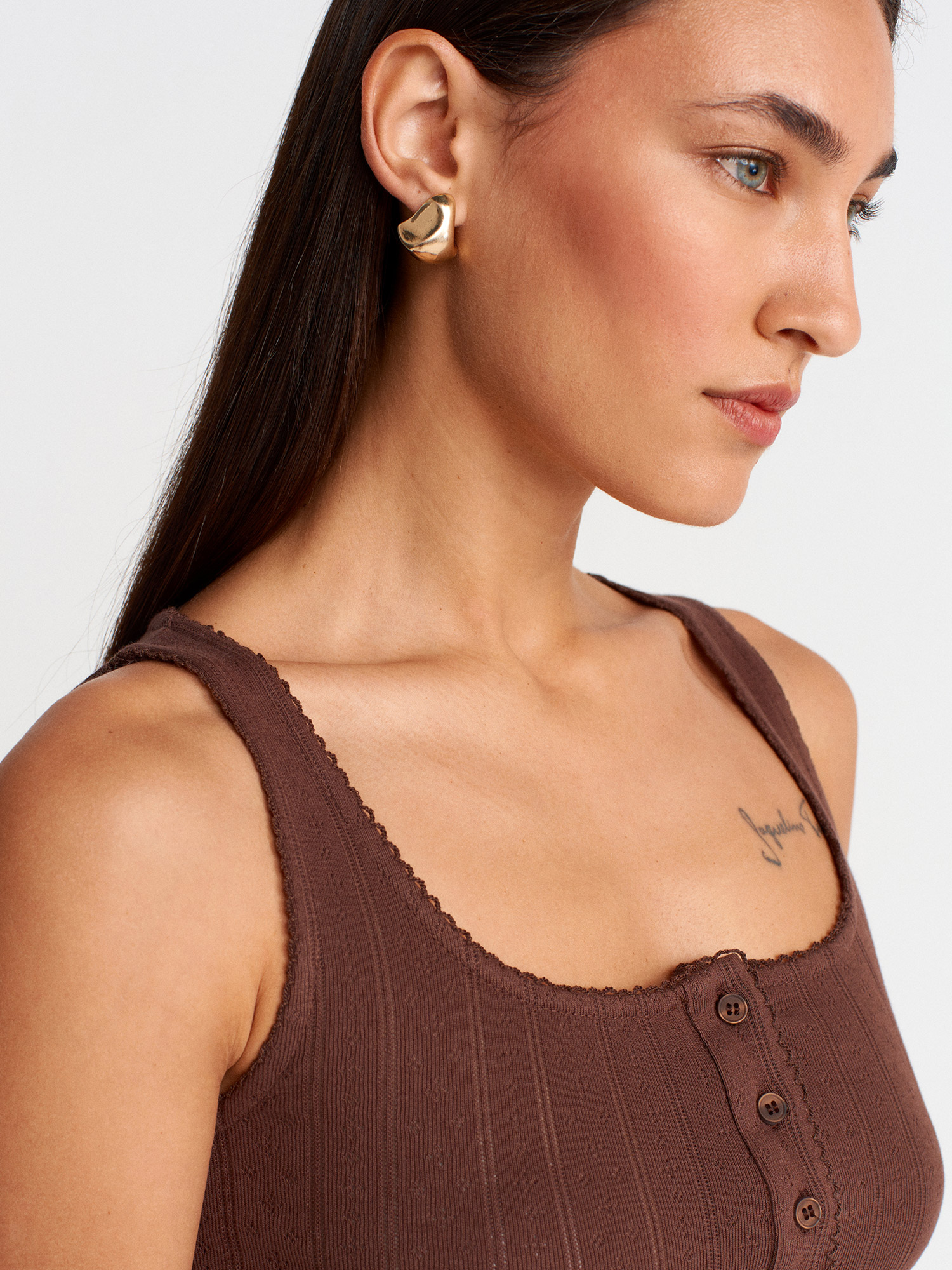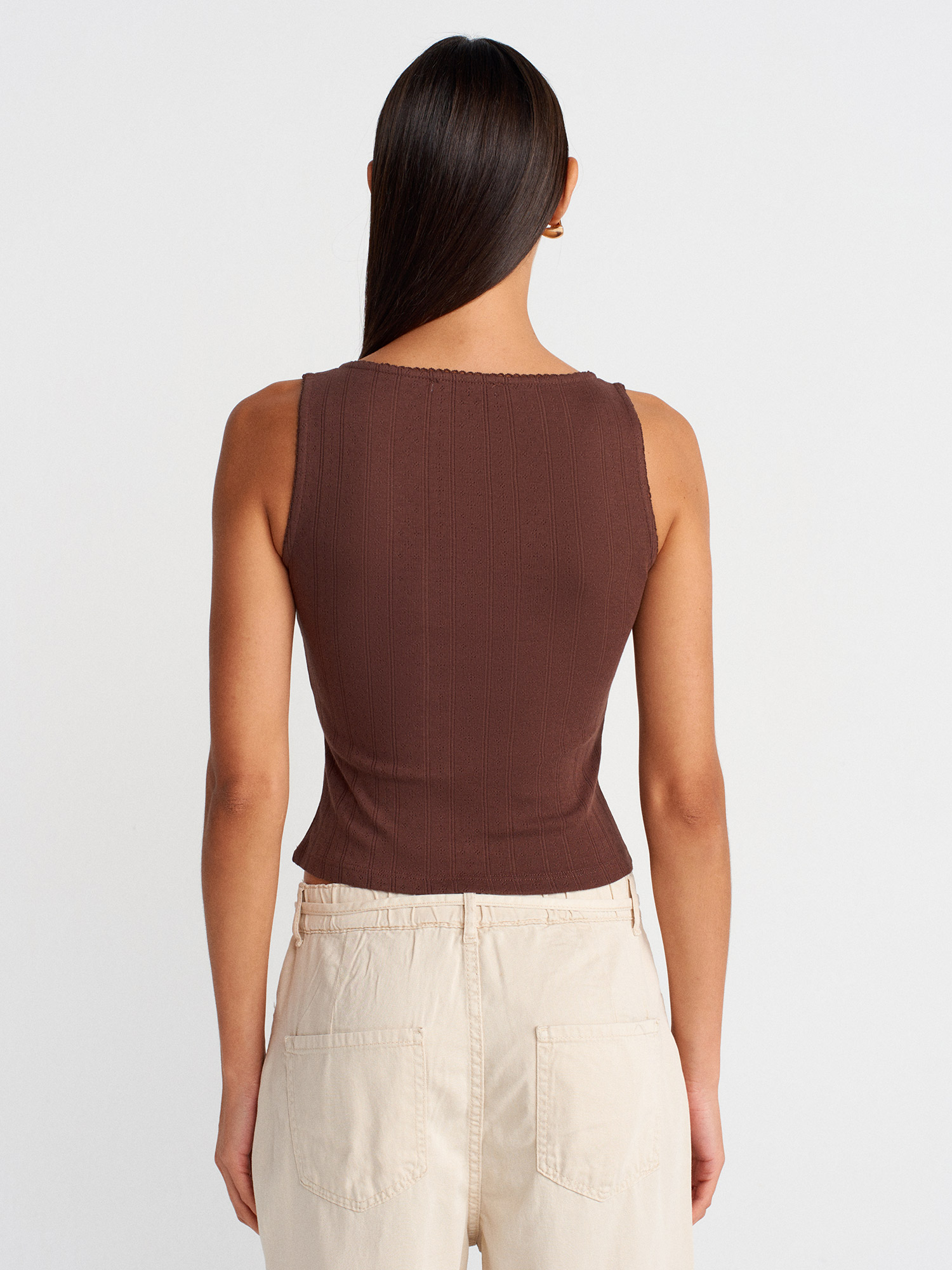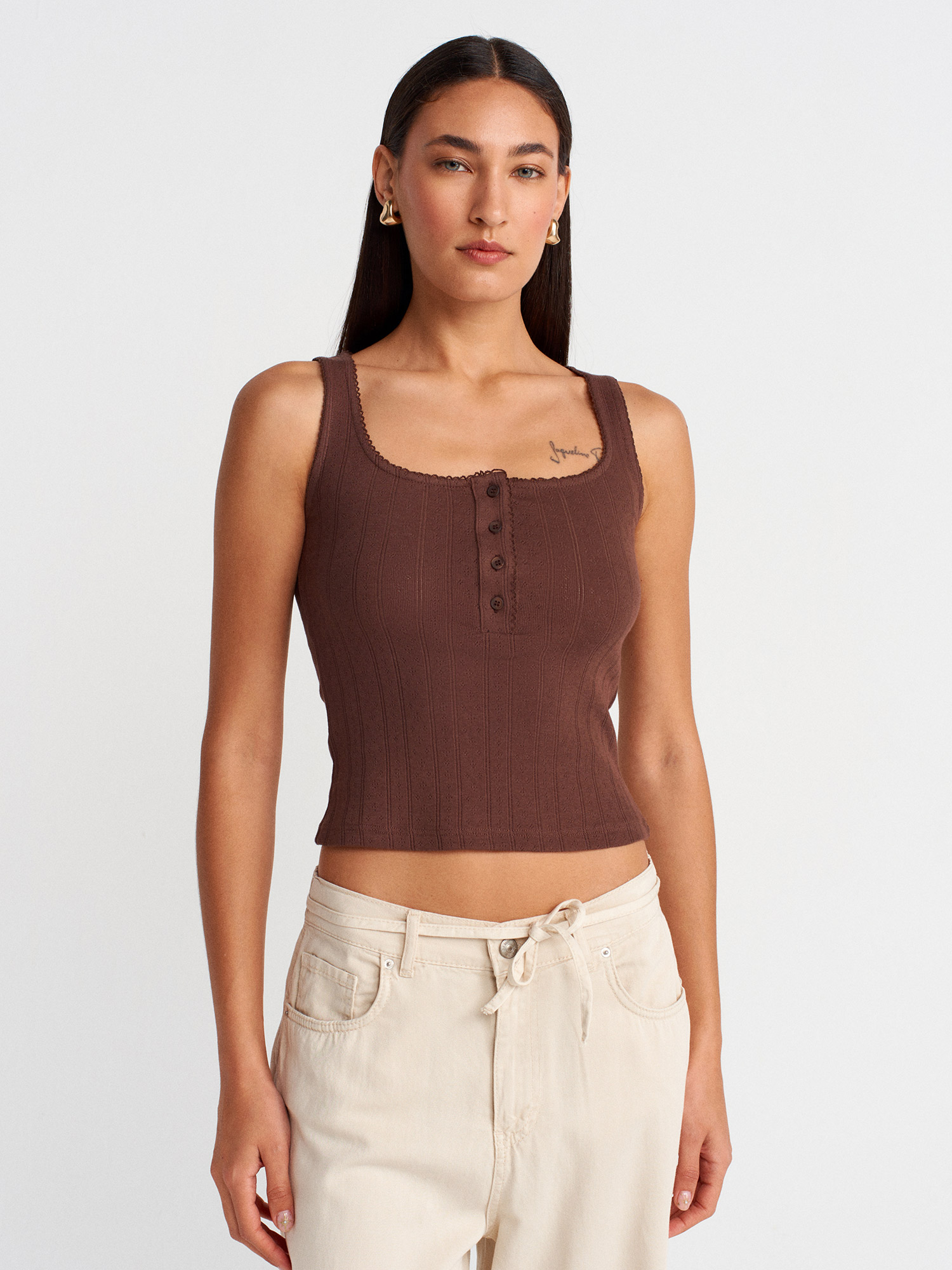 21069 Düğmeli Kare Yaka Top-Açık Kahve
