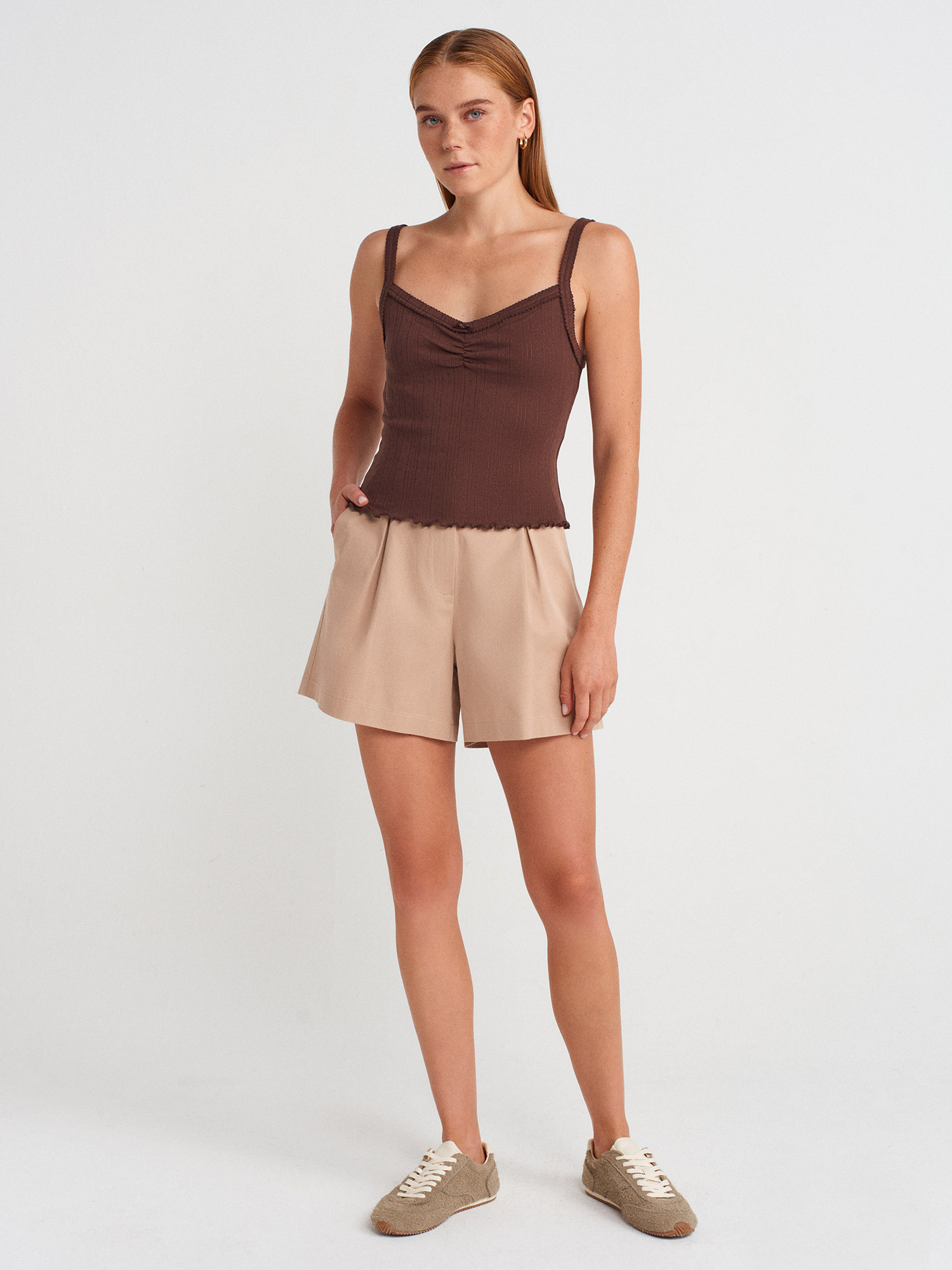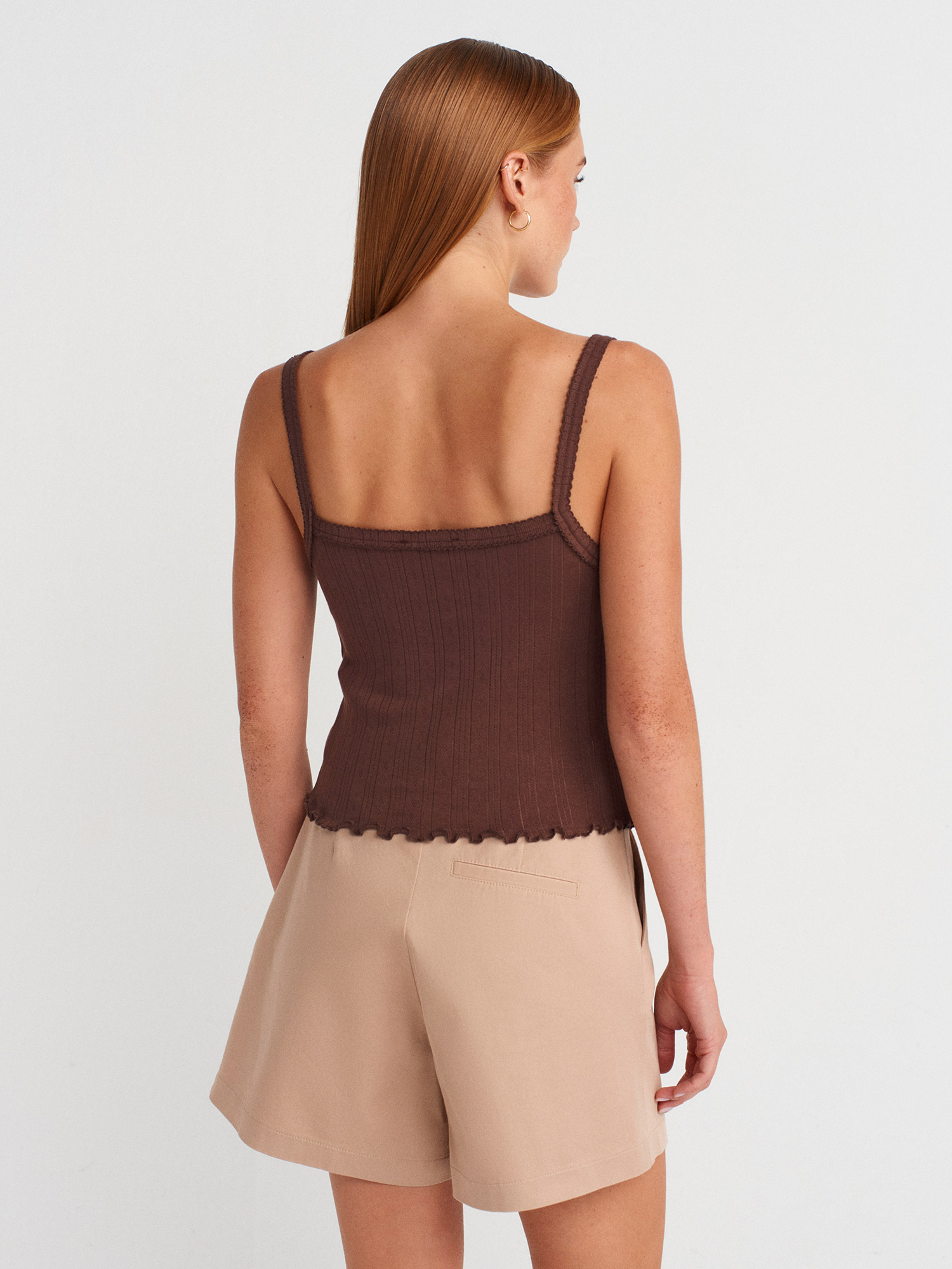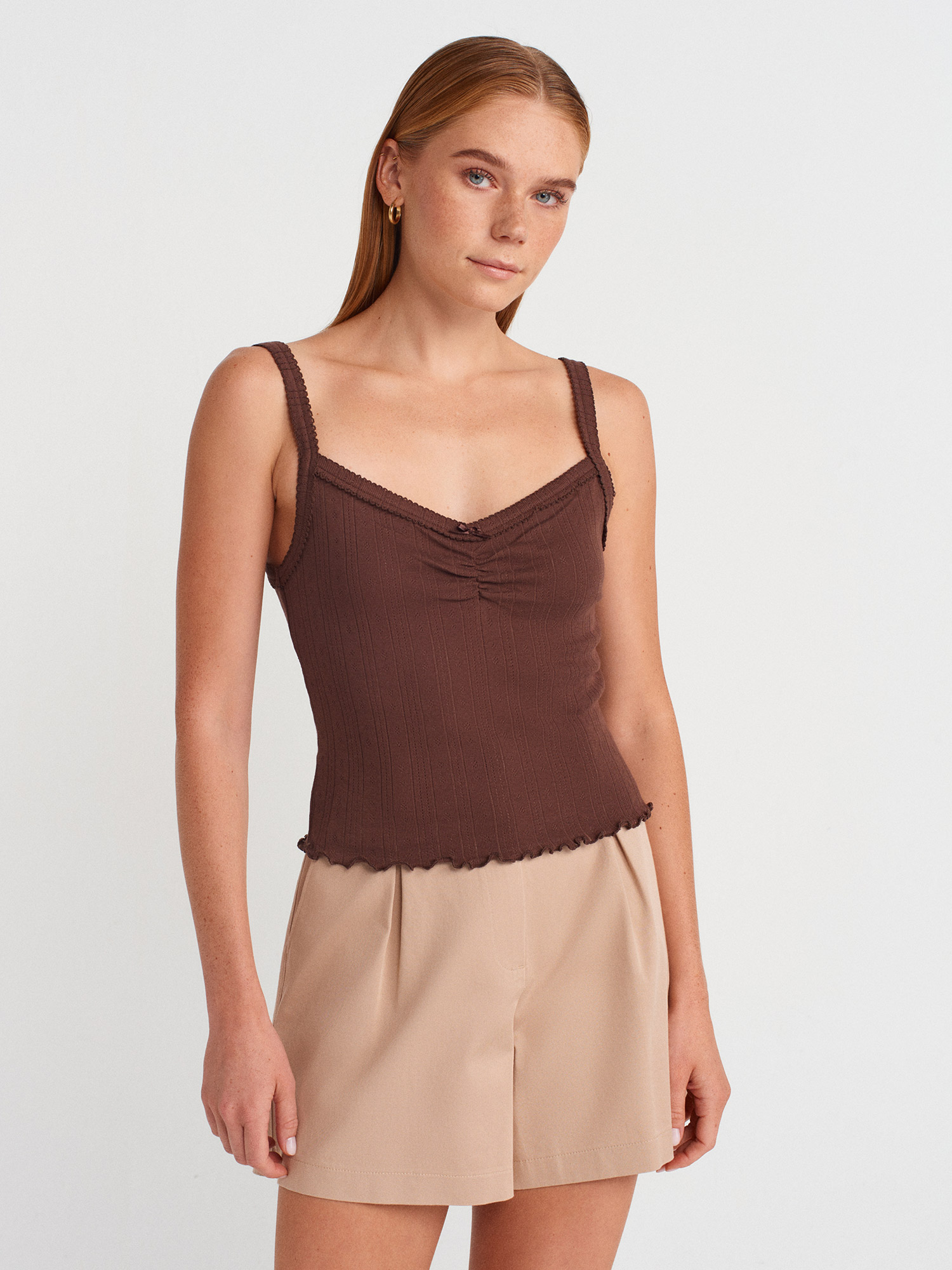 21073 Fiyonk Detaylı Askılı Top-Açık Kahve