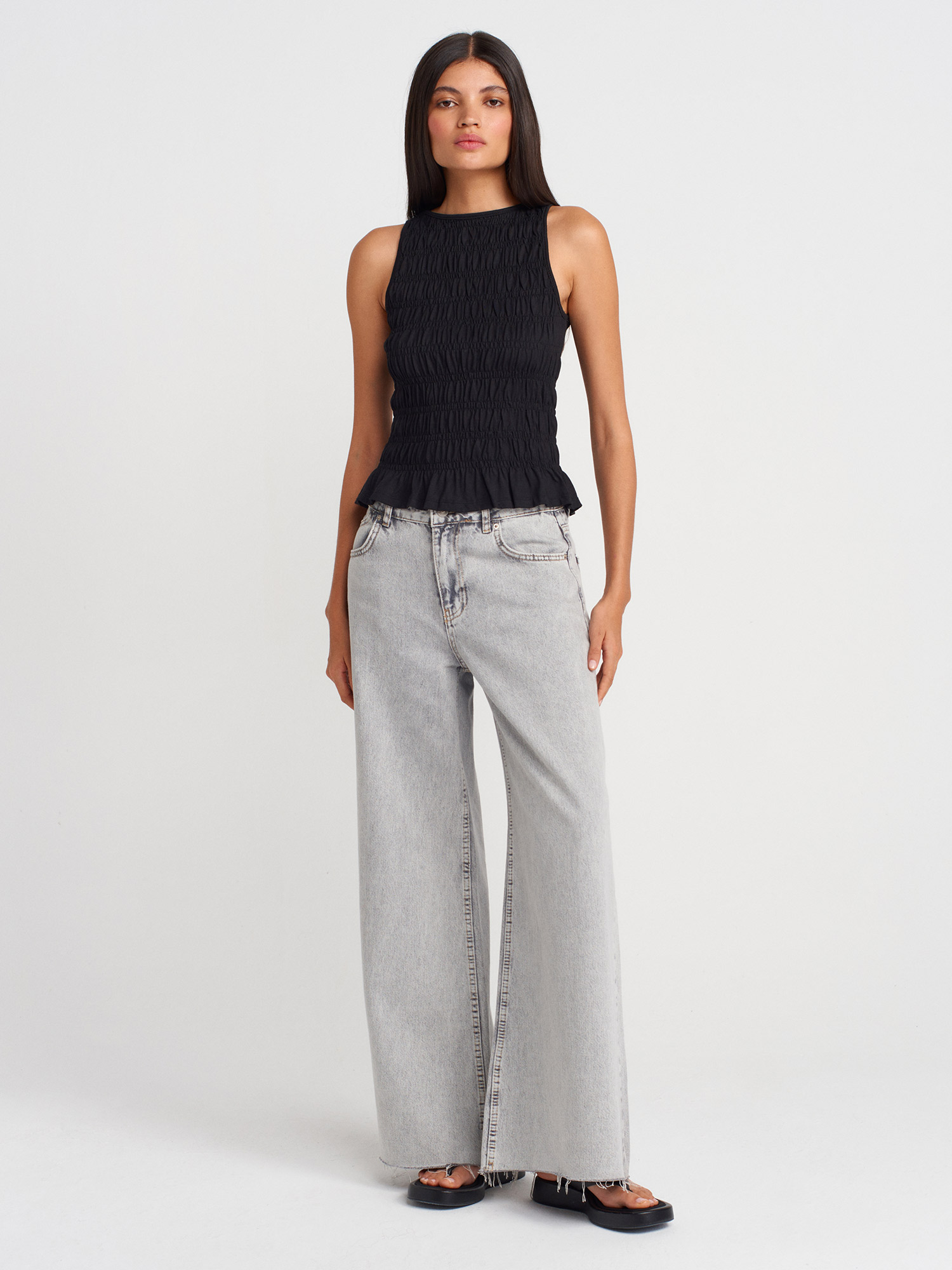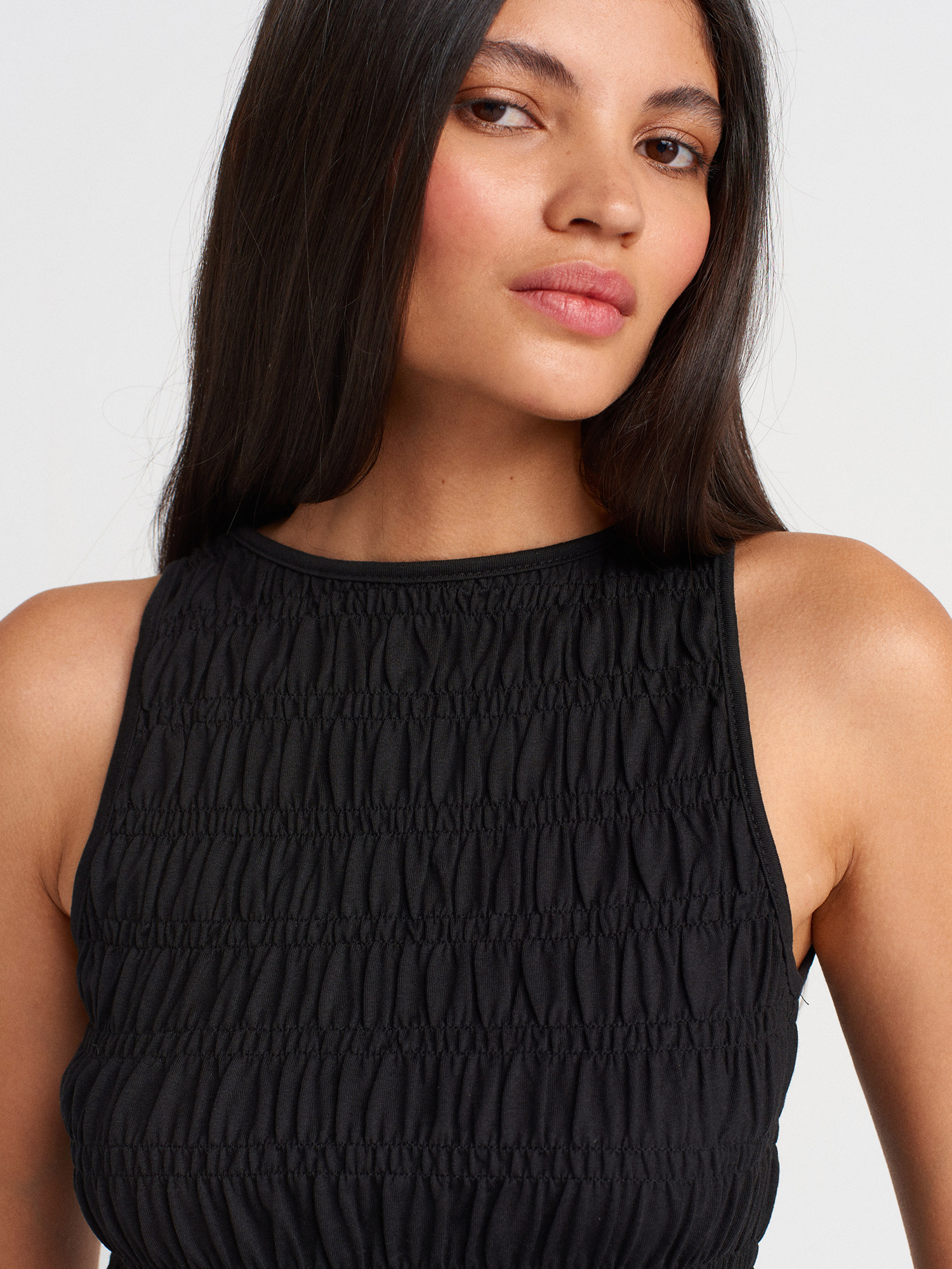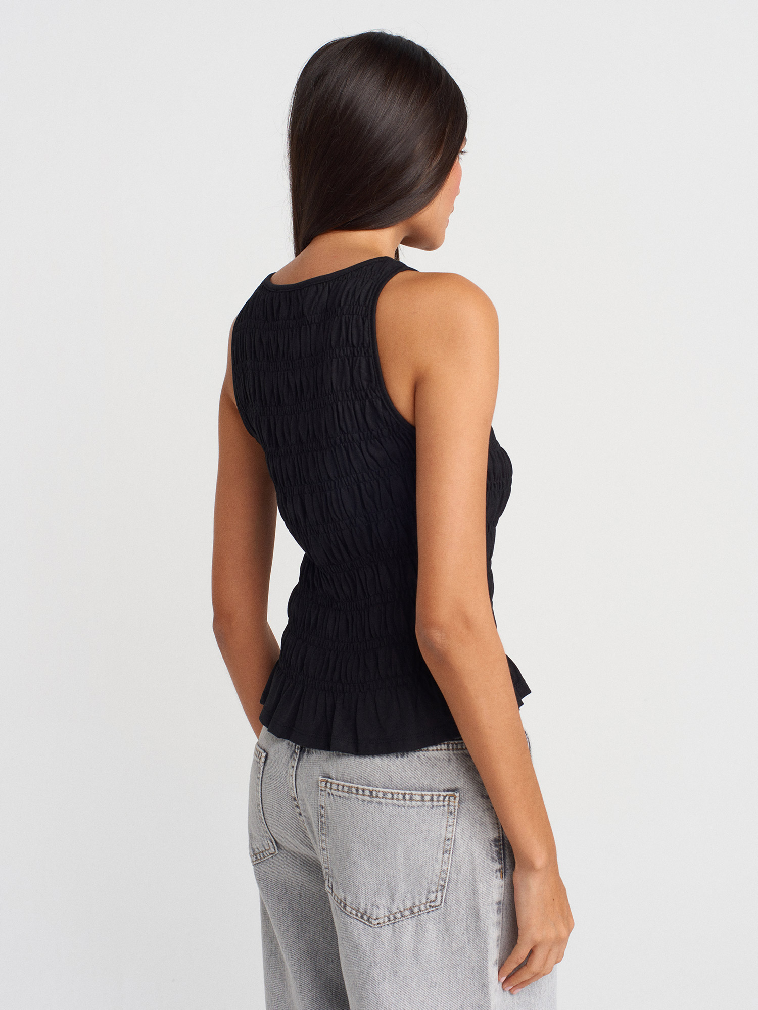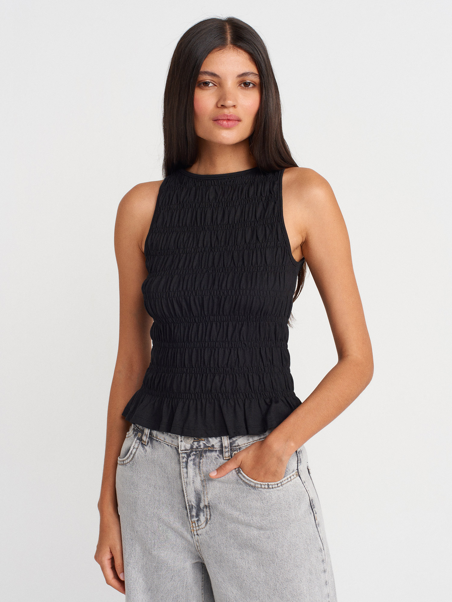 21077 Kayık Yaka Kolsuz Top-Siyah