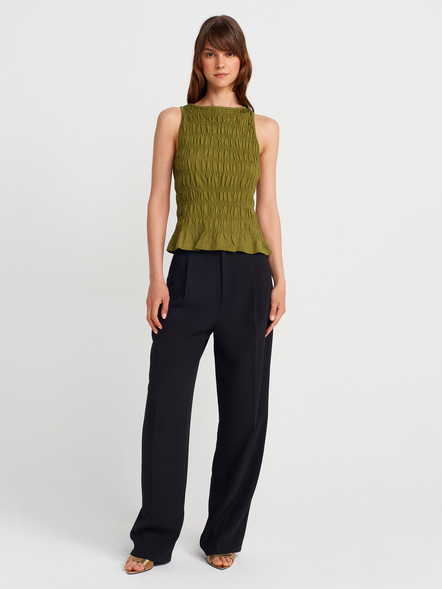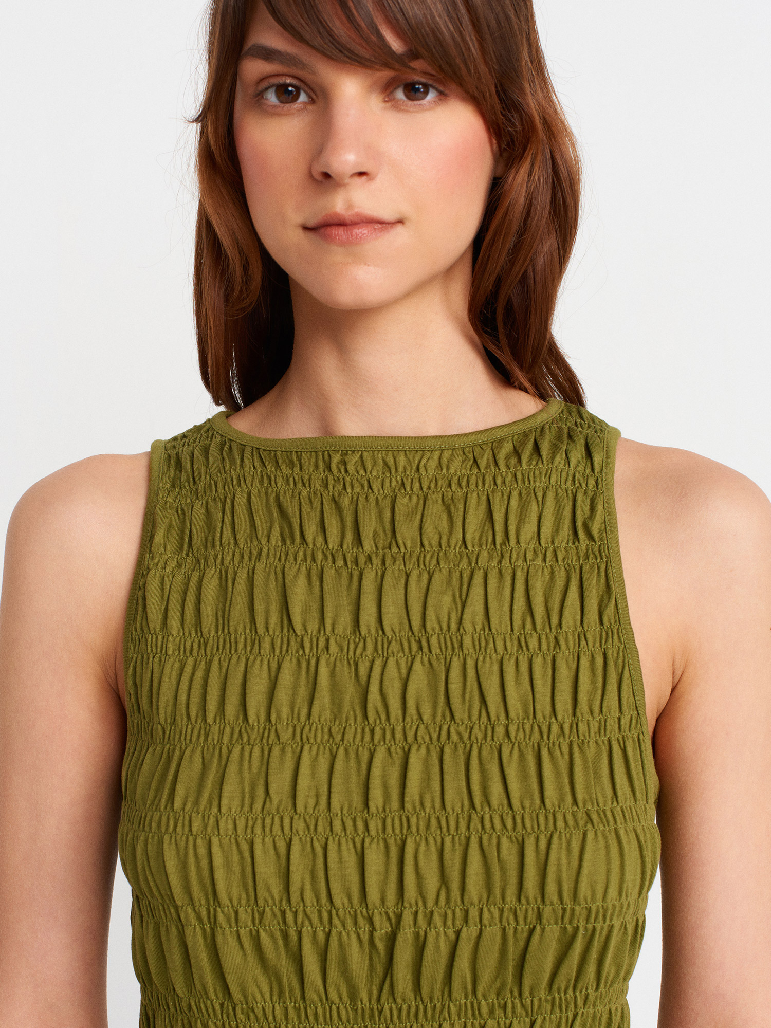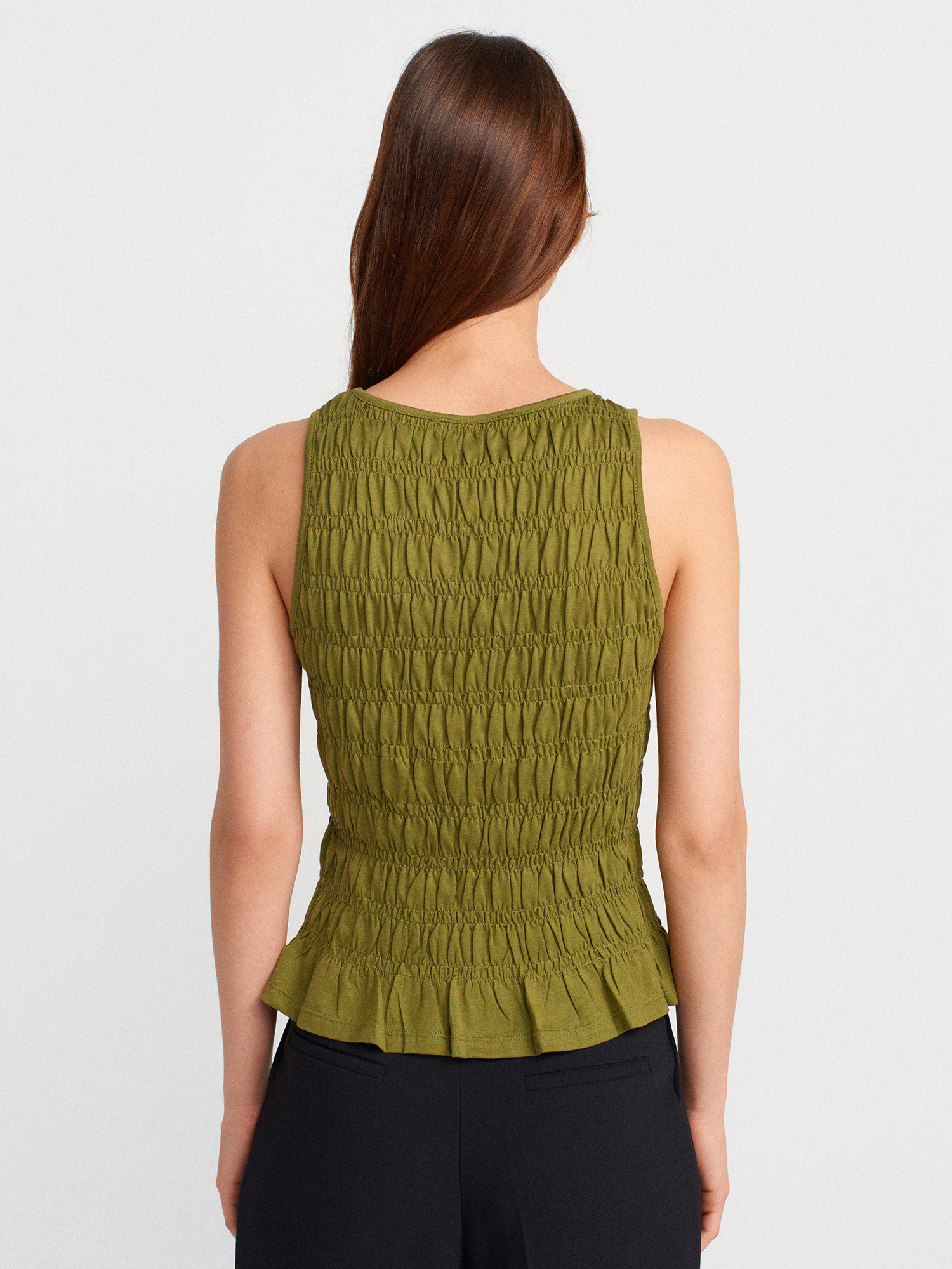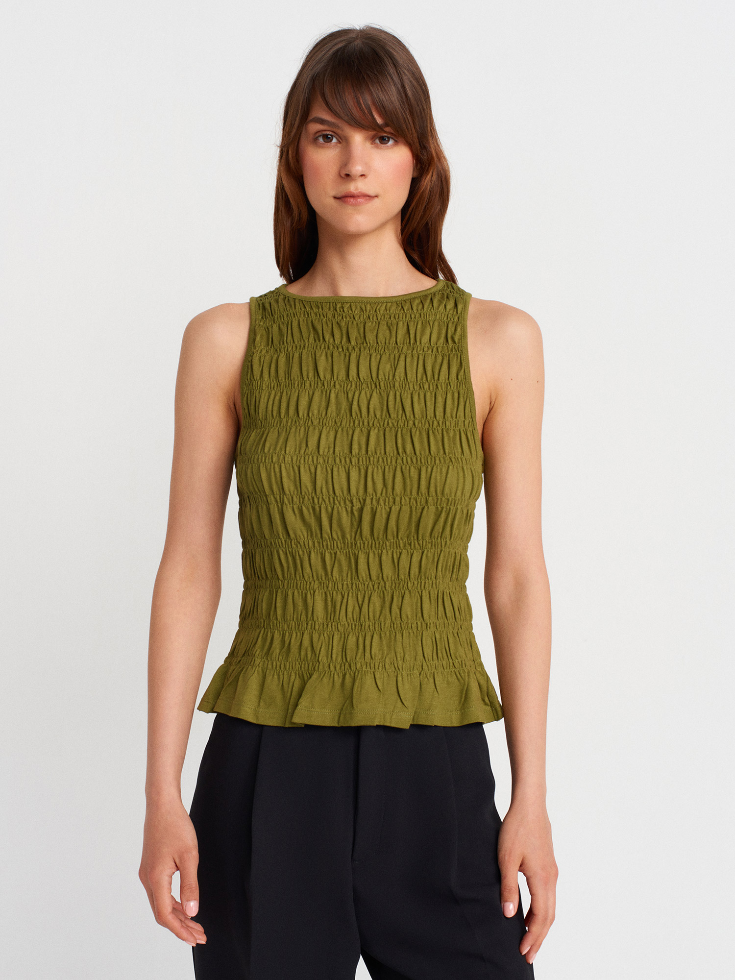 21077 Kayık Yaka Kolsuz Top-Yağ Yeşil