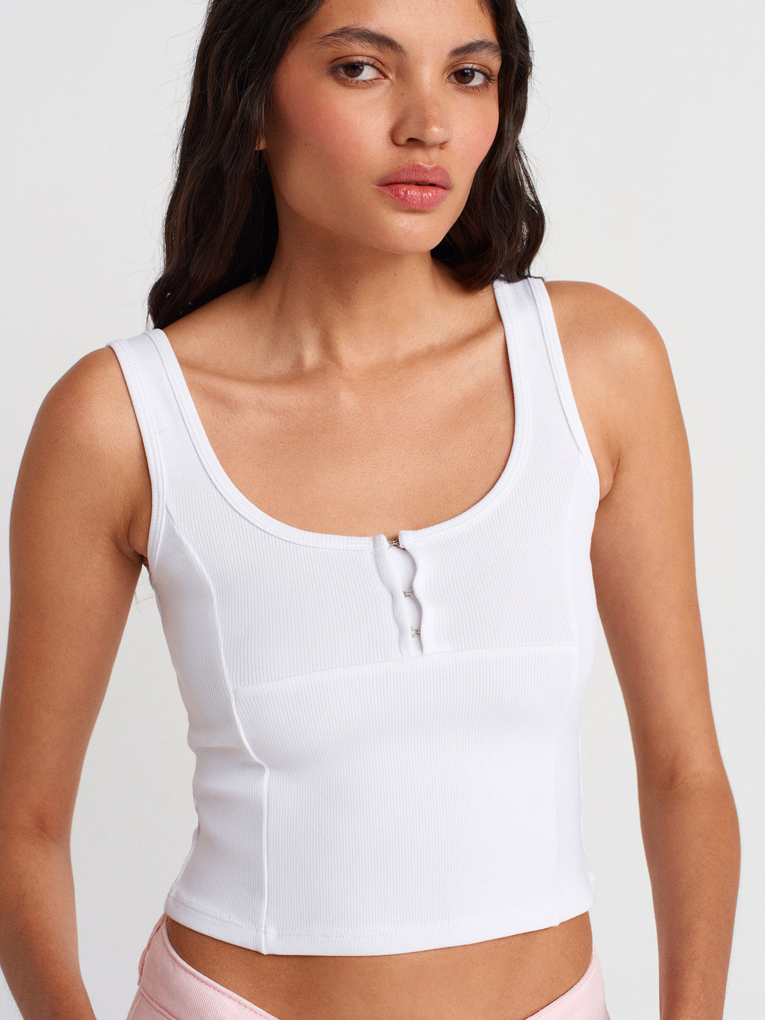 21079 Agraf Detaylı Askılı Top-Beyaz