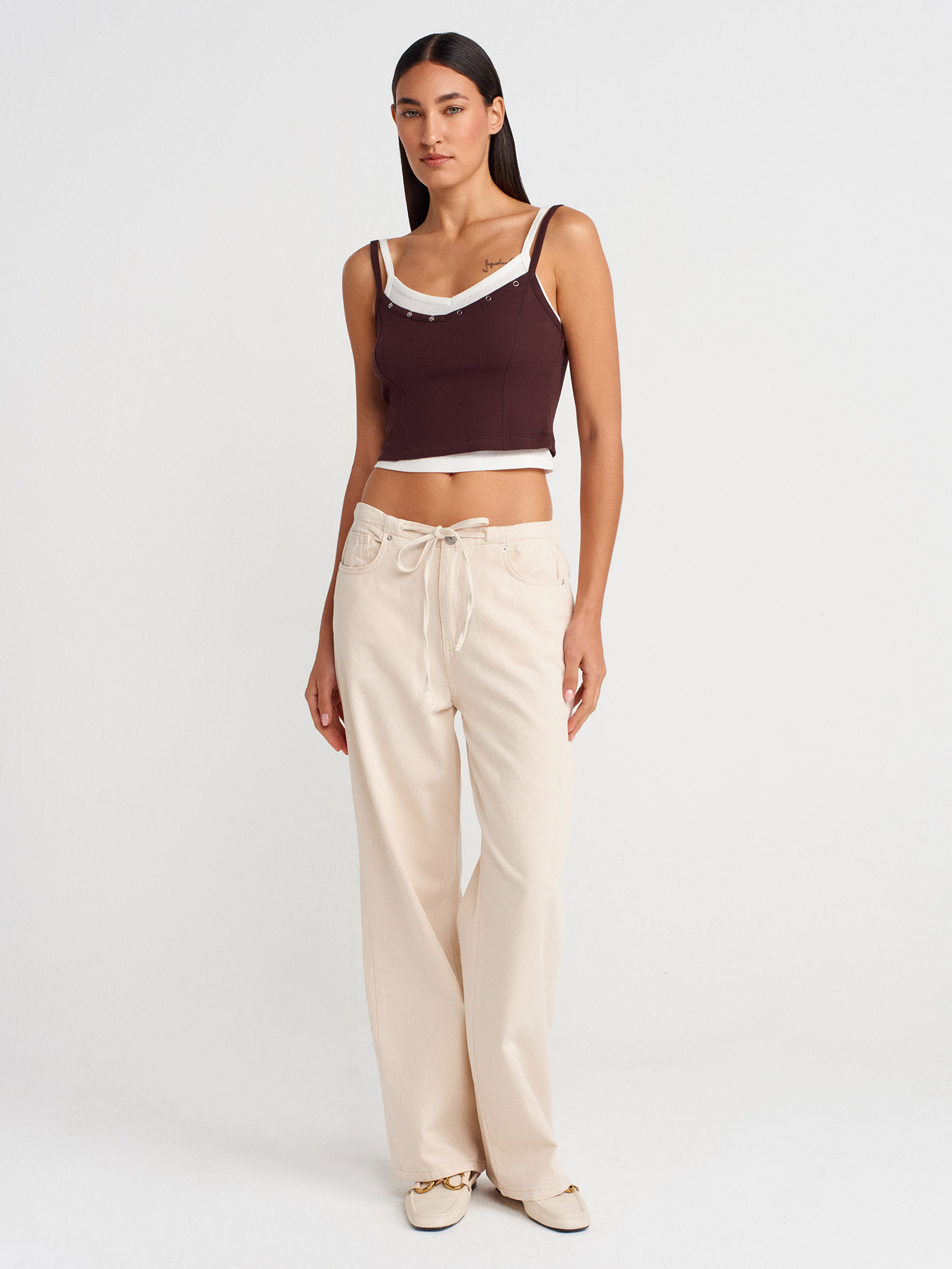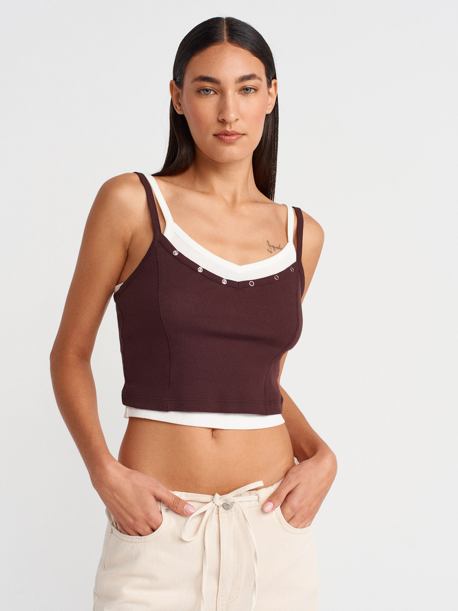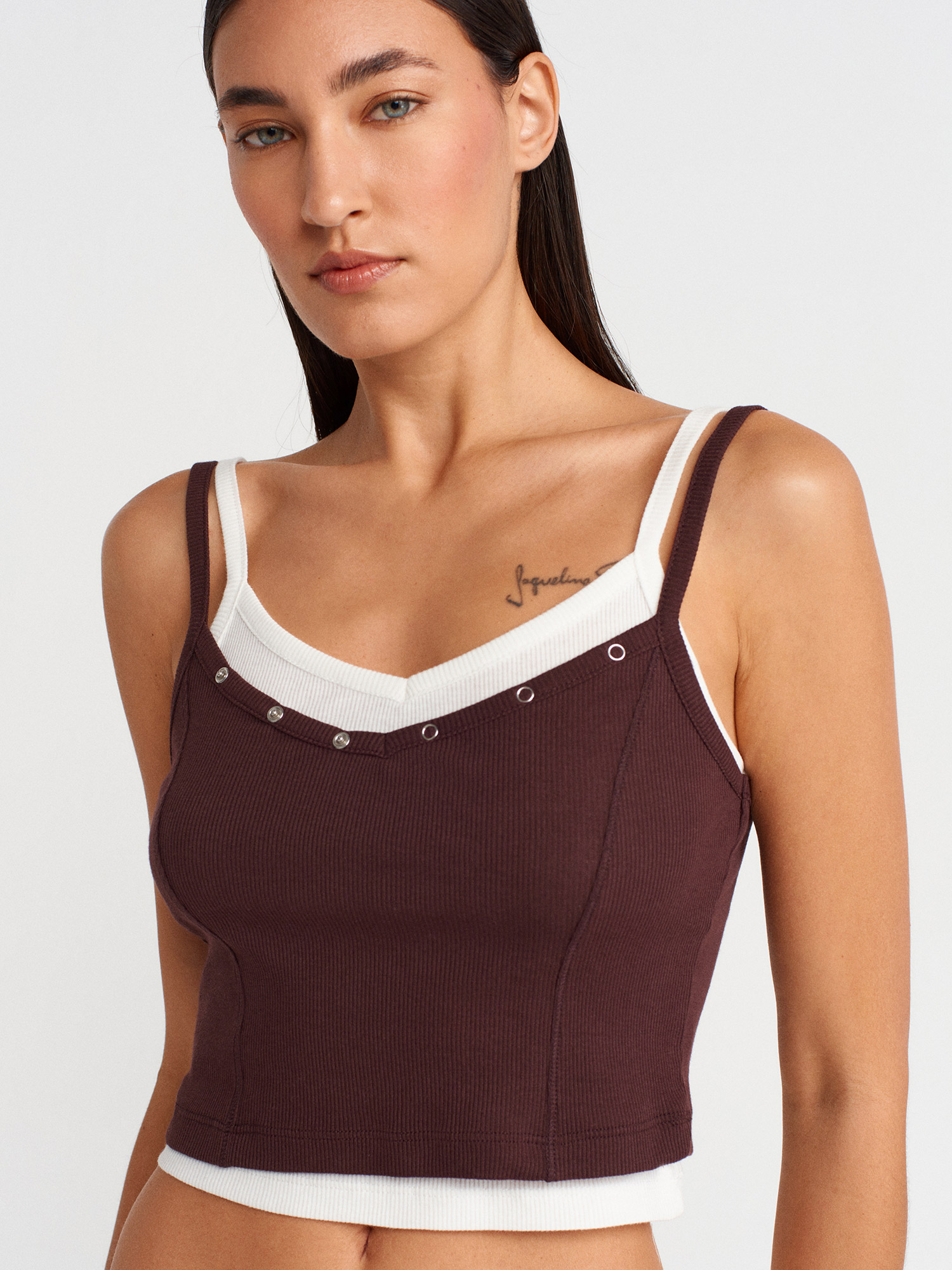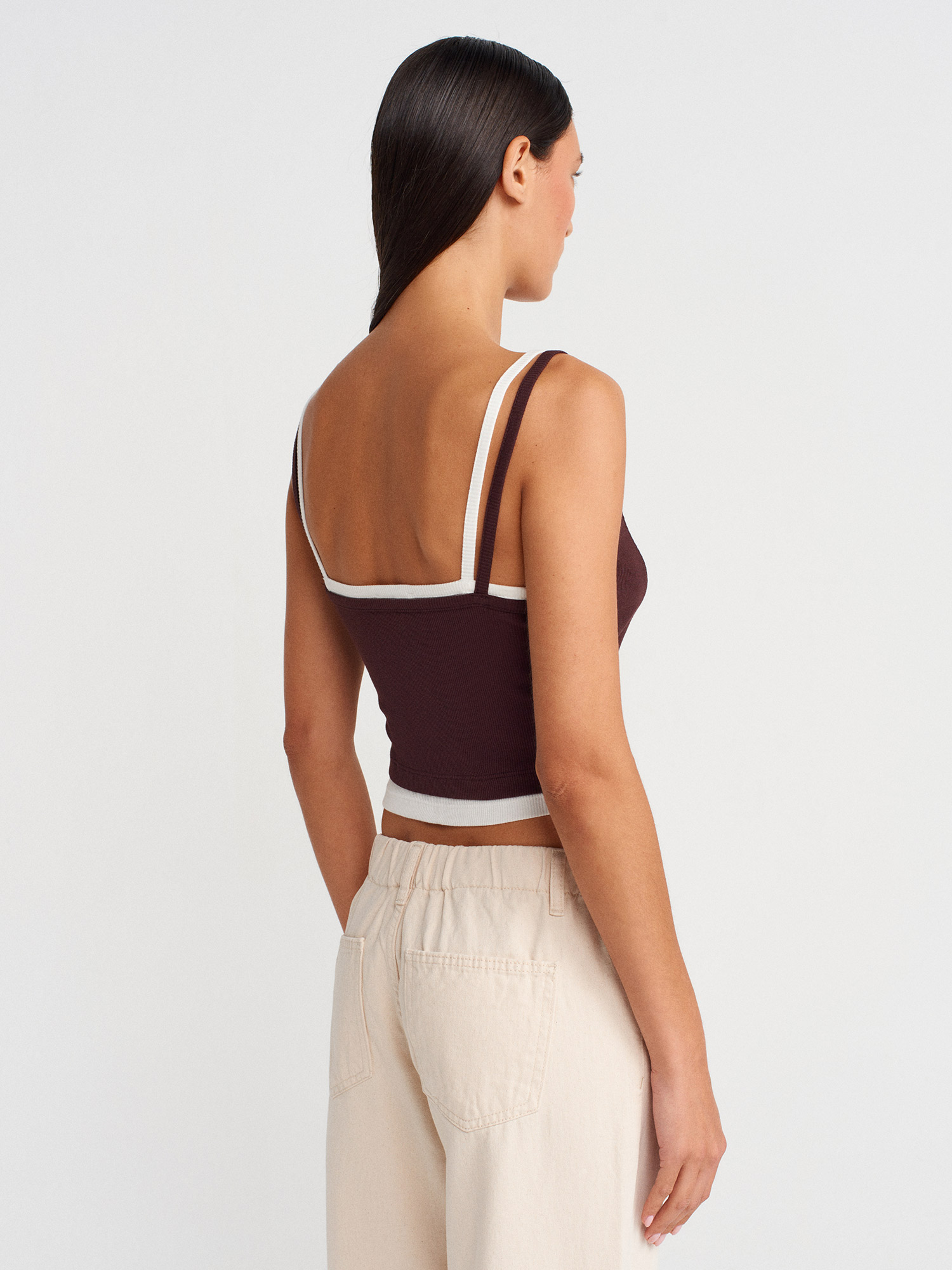 21085 %100 Pamuk Çift Görünümlü Askılı Top-Kahve