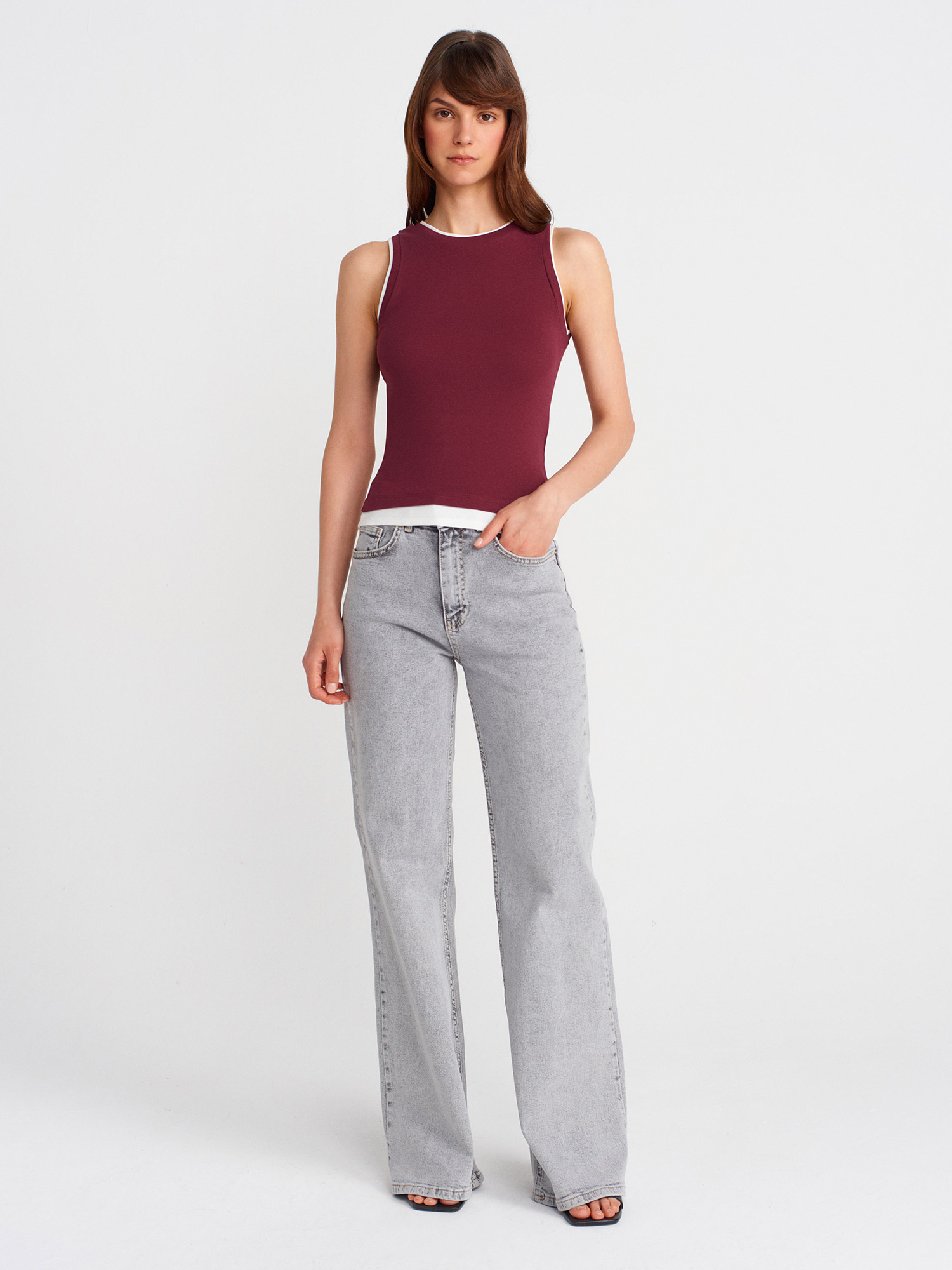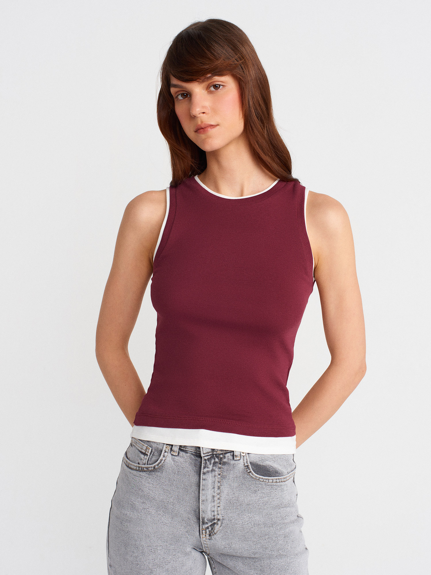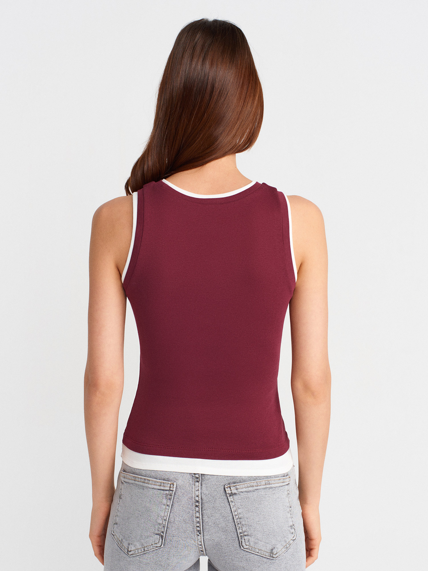21086 Çift Görünümlü Kolsuz Top-Açık Bordo