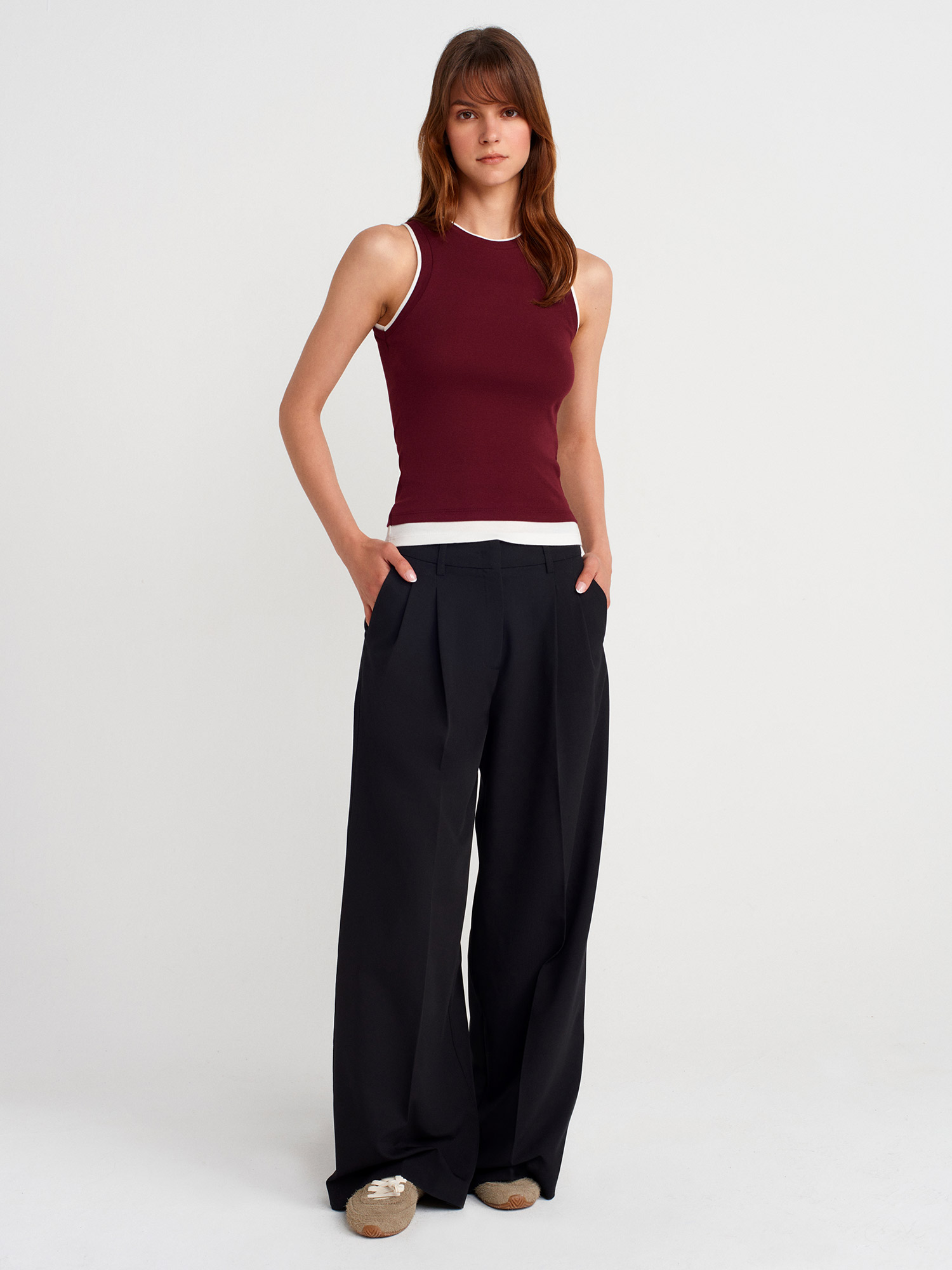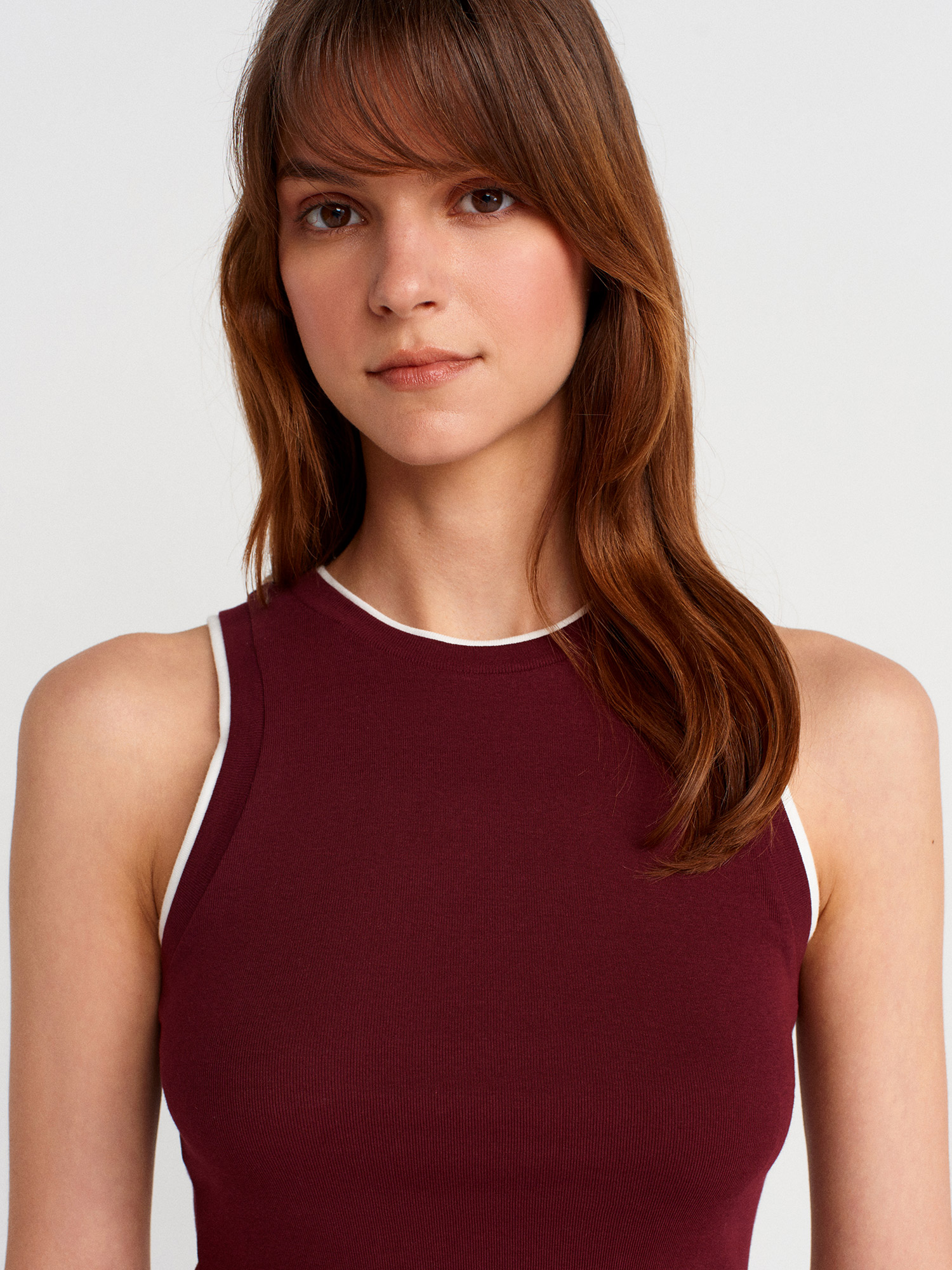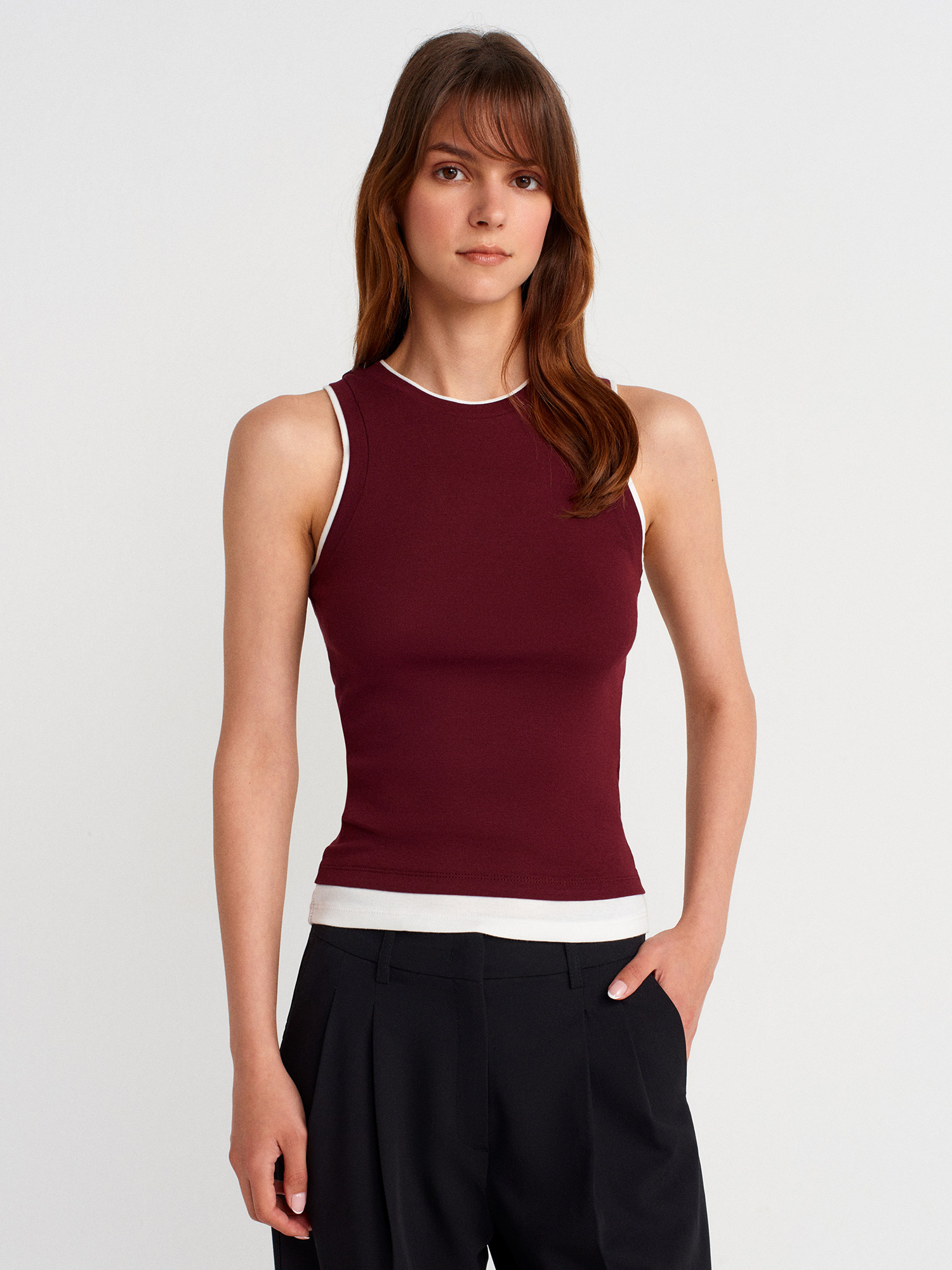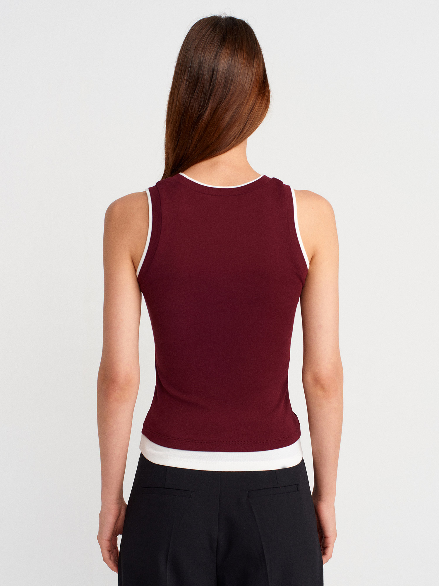 21086 Çift Görünümlü Kolsuz Top-Bordo