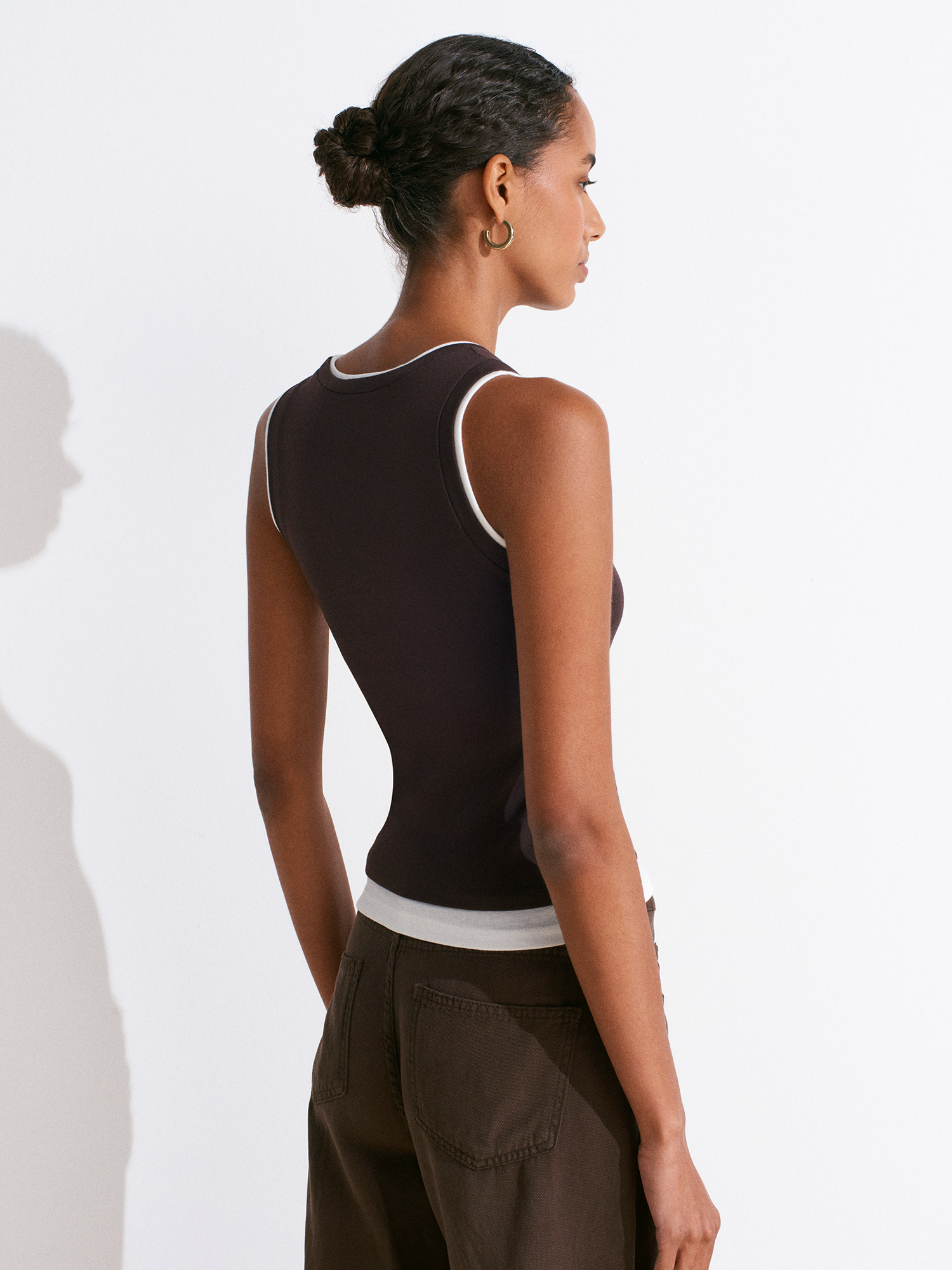 21086 Çift Görünümlü Kolsuz Top-Koyu Kahve