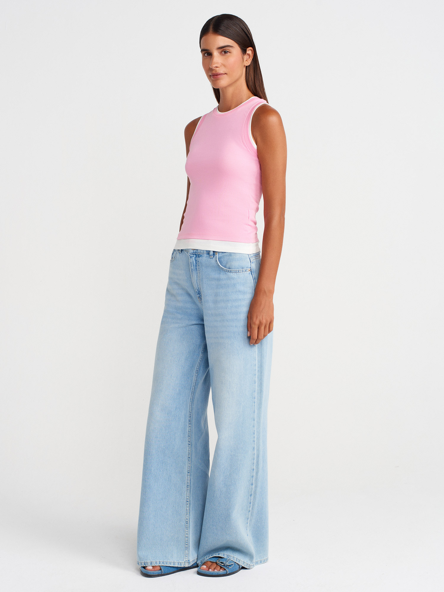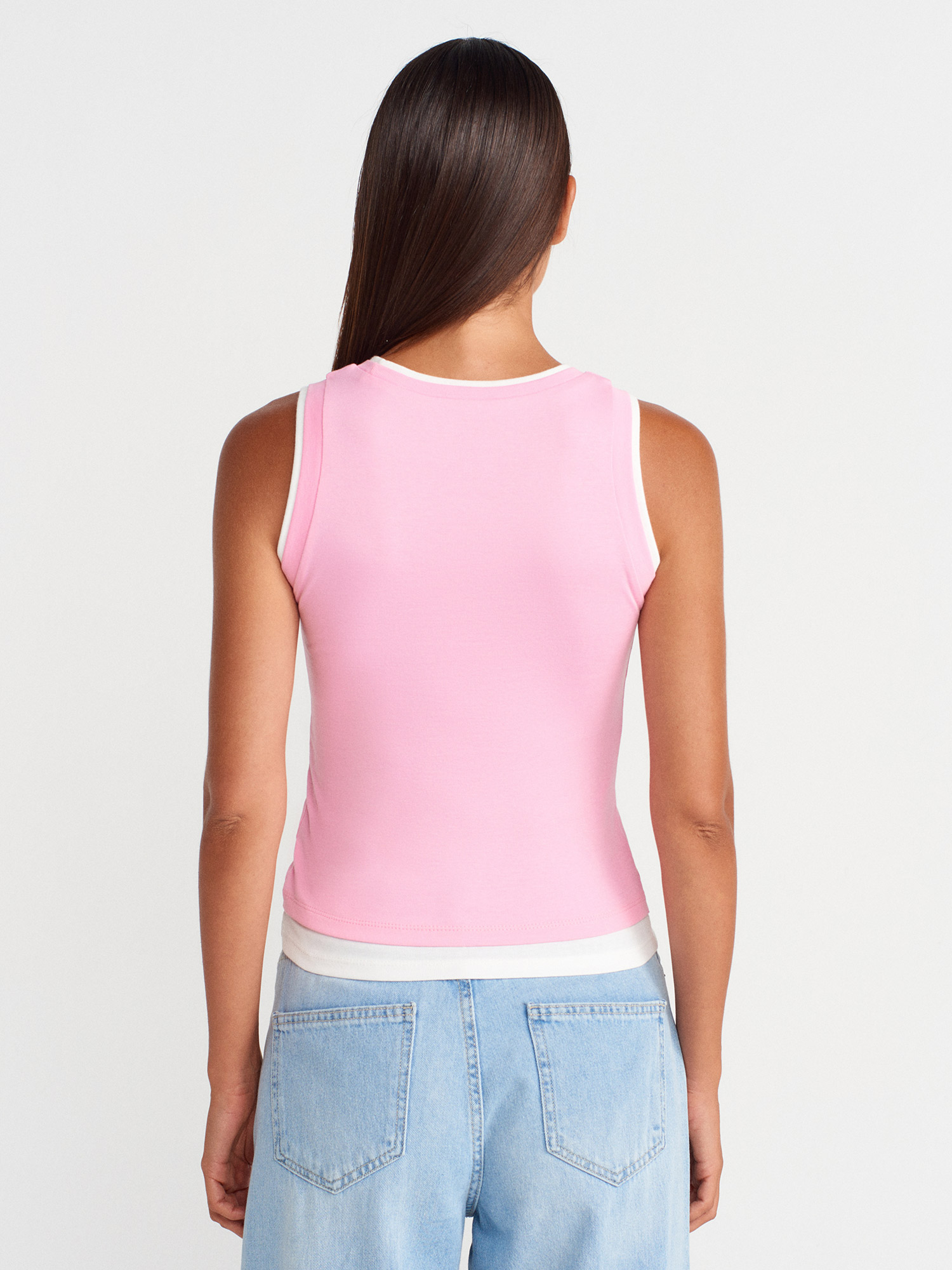 21086 Çift Görünümlü Kolsuz Top-Pembe