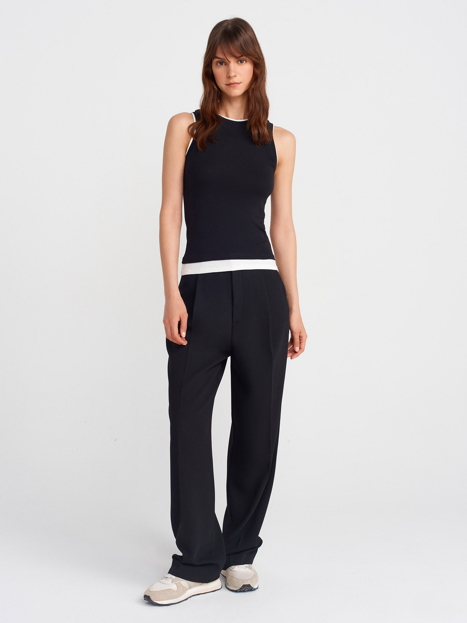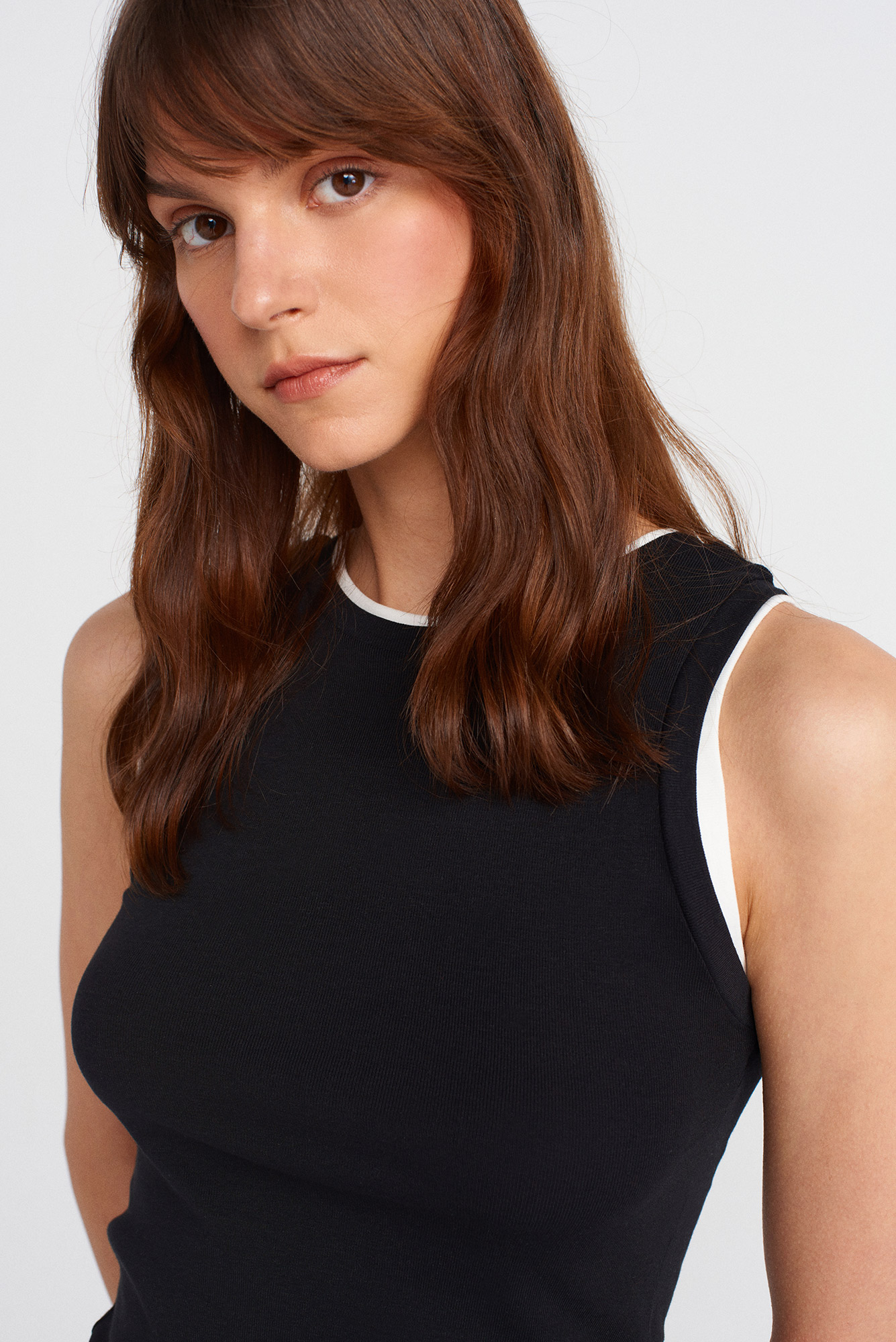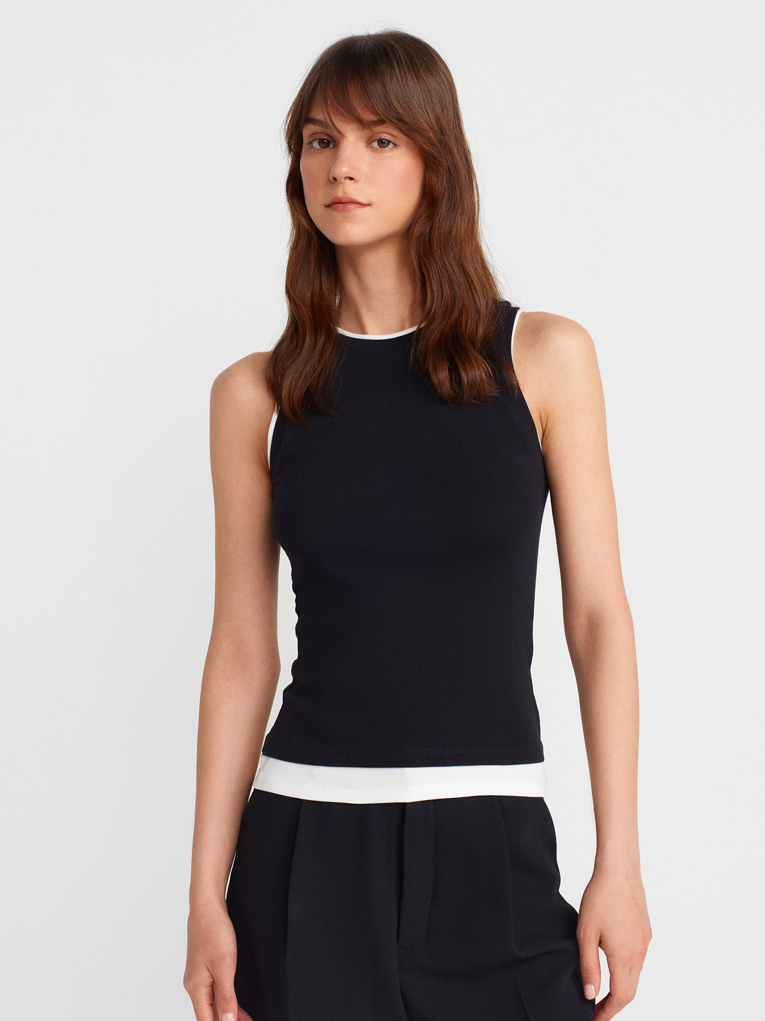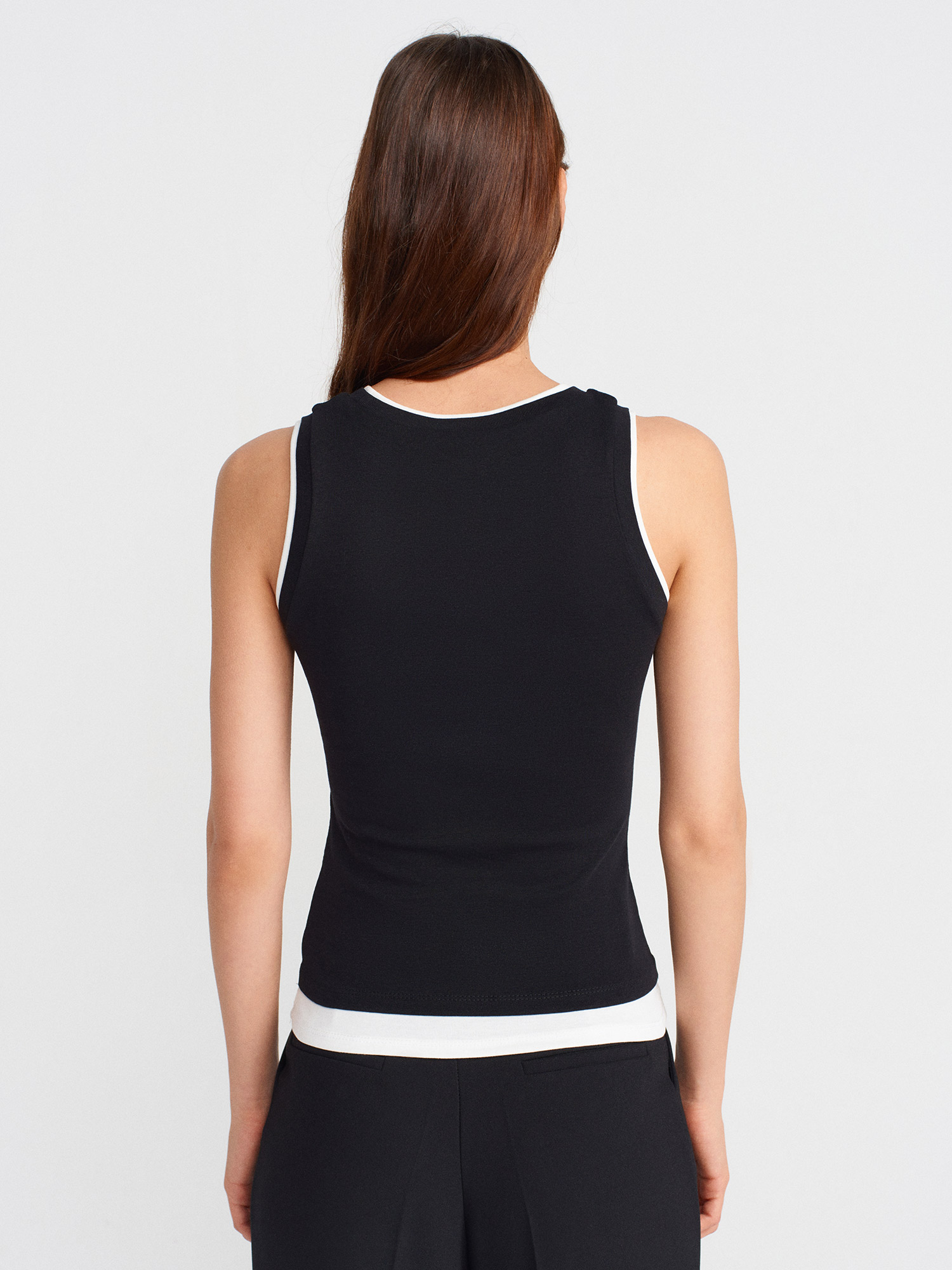 21086 %100 Pamuk Çift Görünümlü Kolsuz Top-Siyah