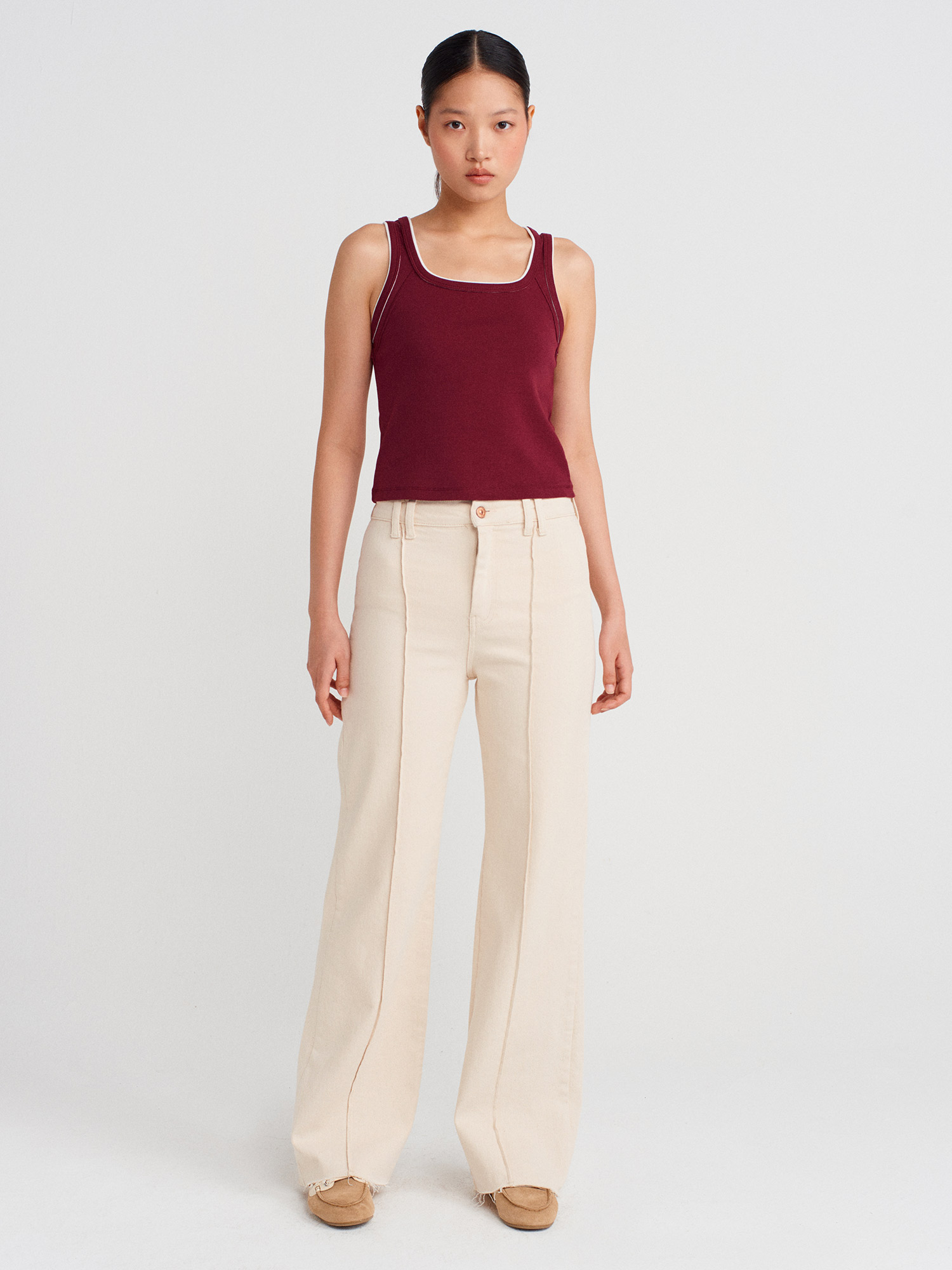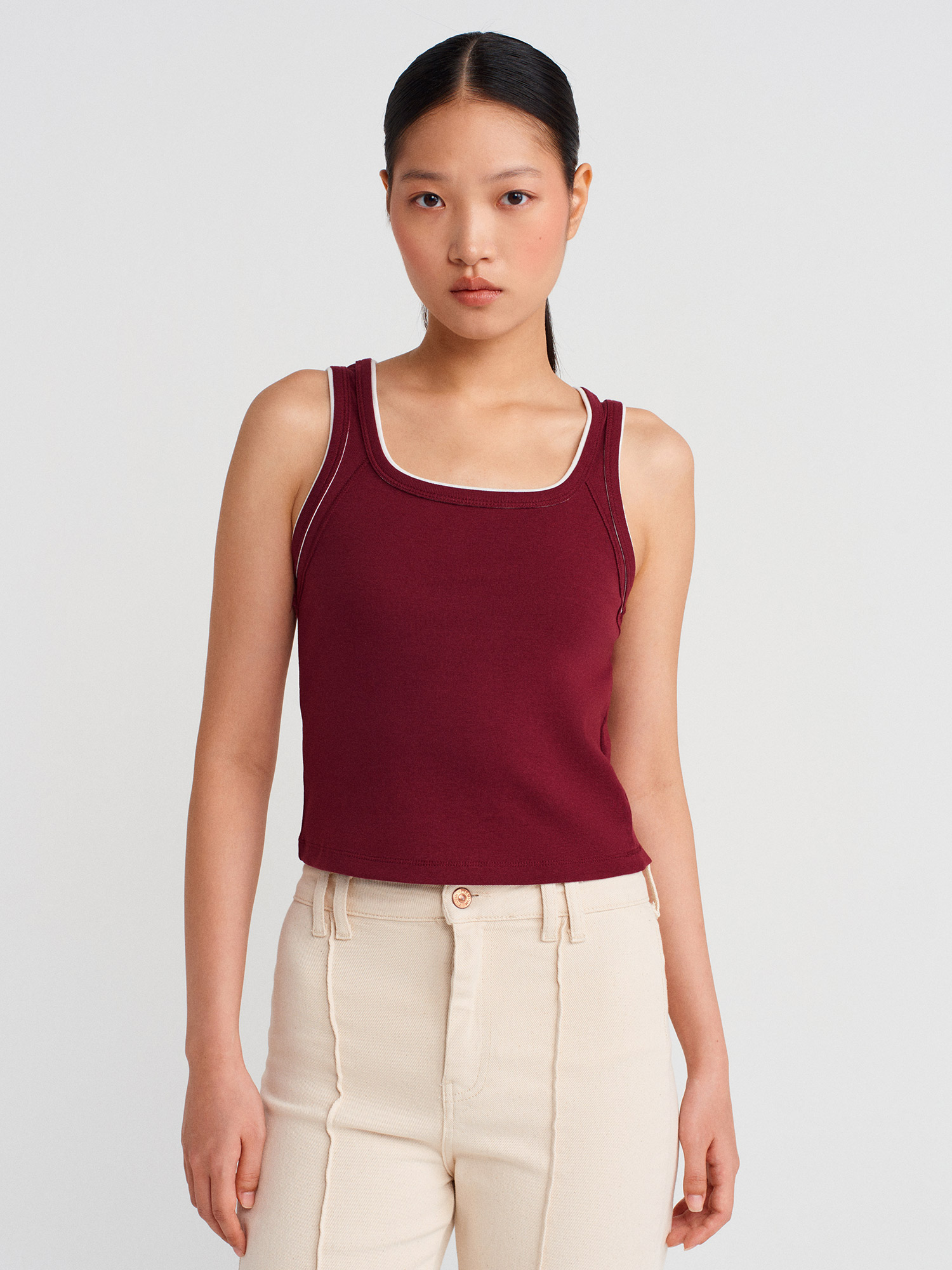 21087 Kontrast Fitilli Atlet-Açık Bordo